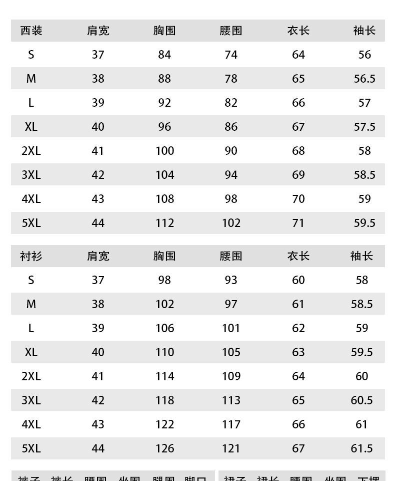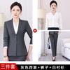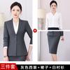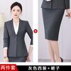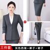 Gray suit + shirt + long skirt + trousers
