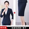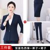 Navy blue suit + shirt + long skirt + trousers