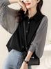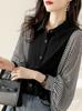 Camisa de estilo coreano con costuras a rayas elegantes, estilo informal, holgado, adelgazante, combinable, primavera y otoño 2025
