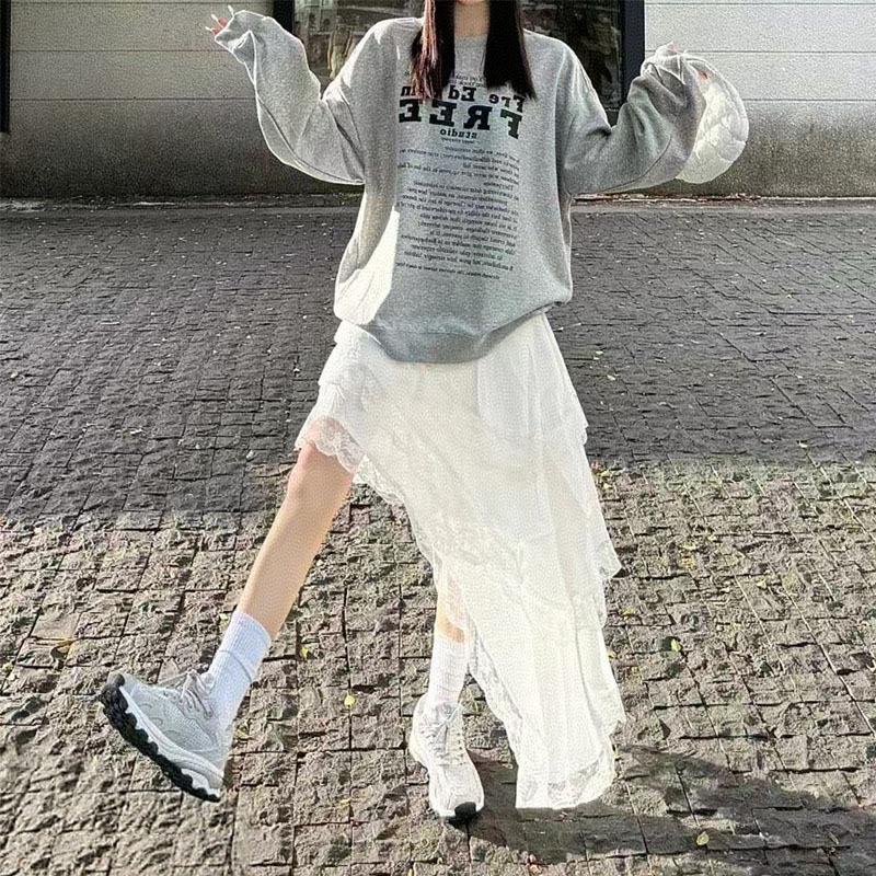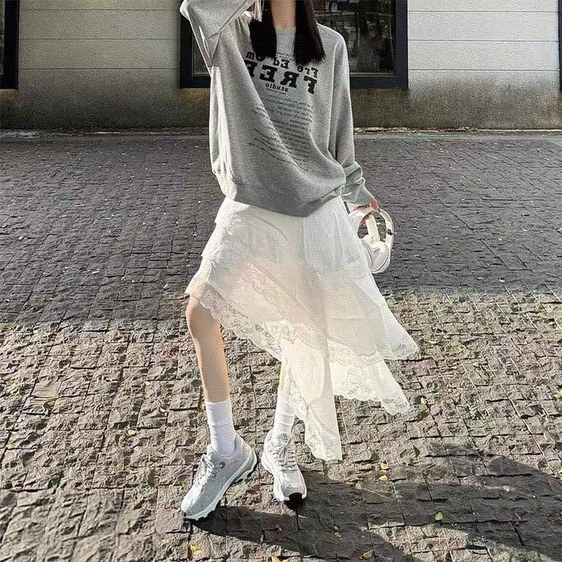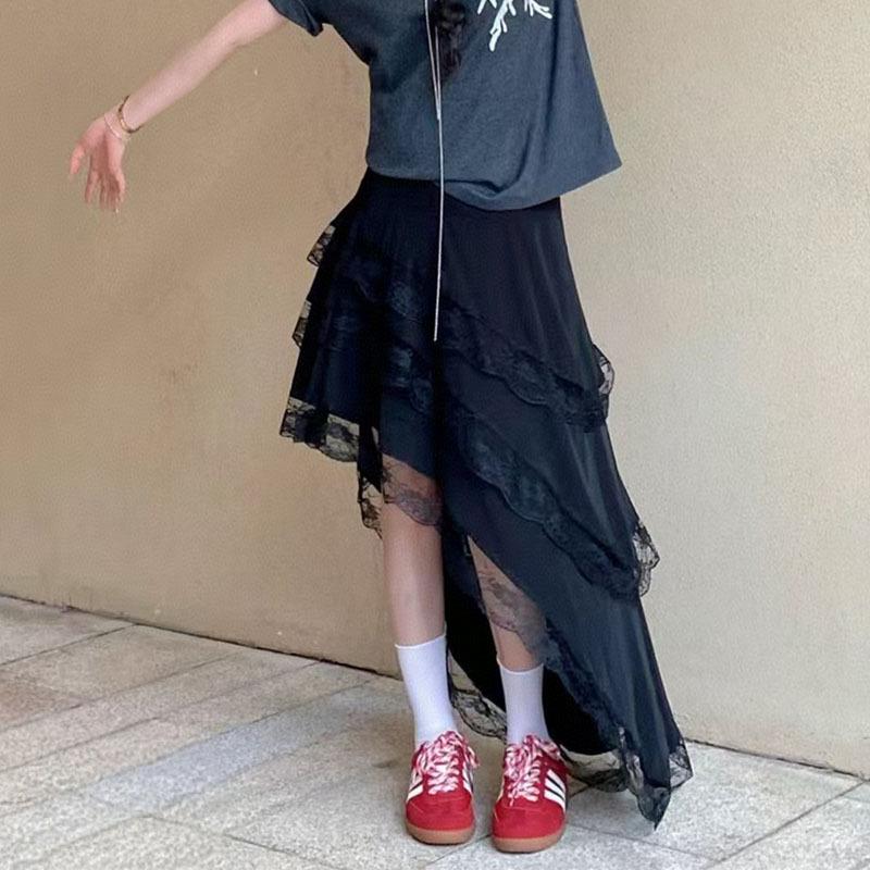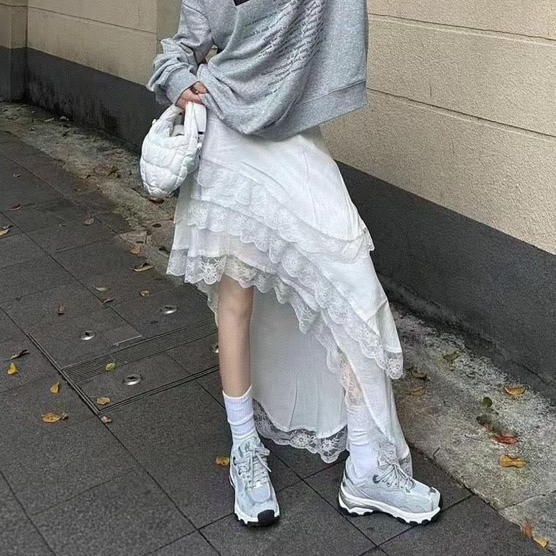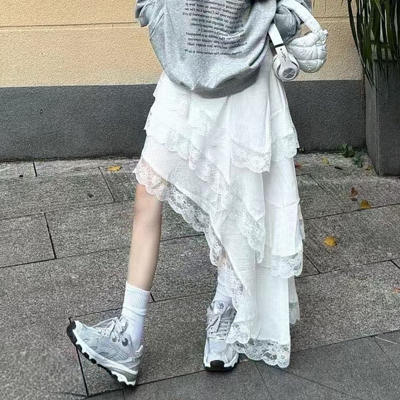 Falda blanca versátil de diseño nicho de cintura elástica irregular retro multicapa de encaje de temperamento estilo coreano para mujer