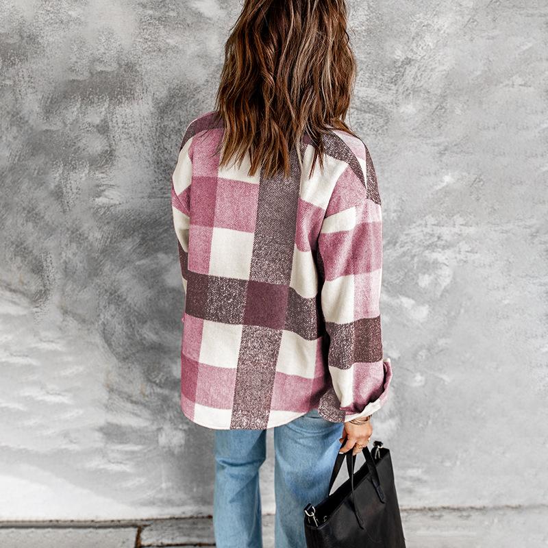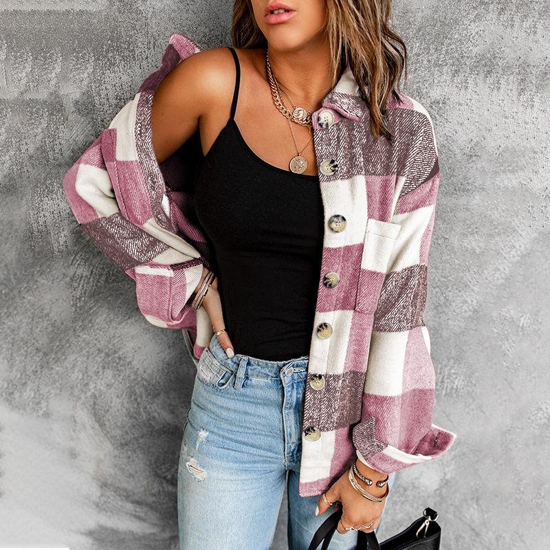 Chaqueta informal de lana a cuadros para mujer, talla grande, otoño e invierno, exportación europea y americana, de Amazon Aliexpress