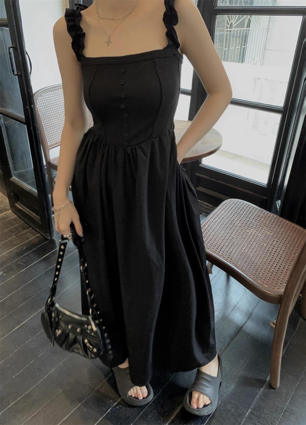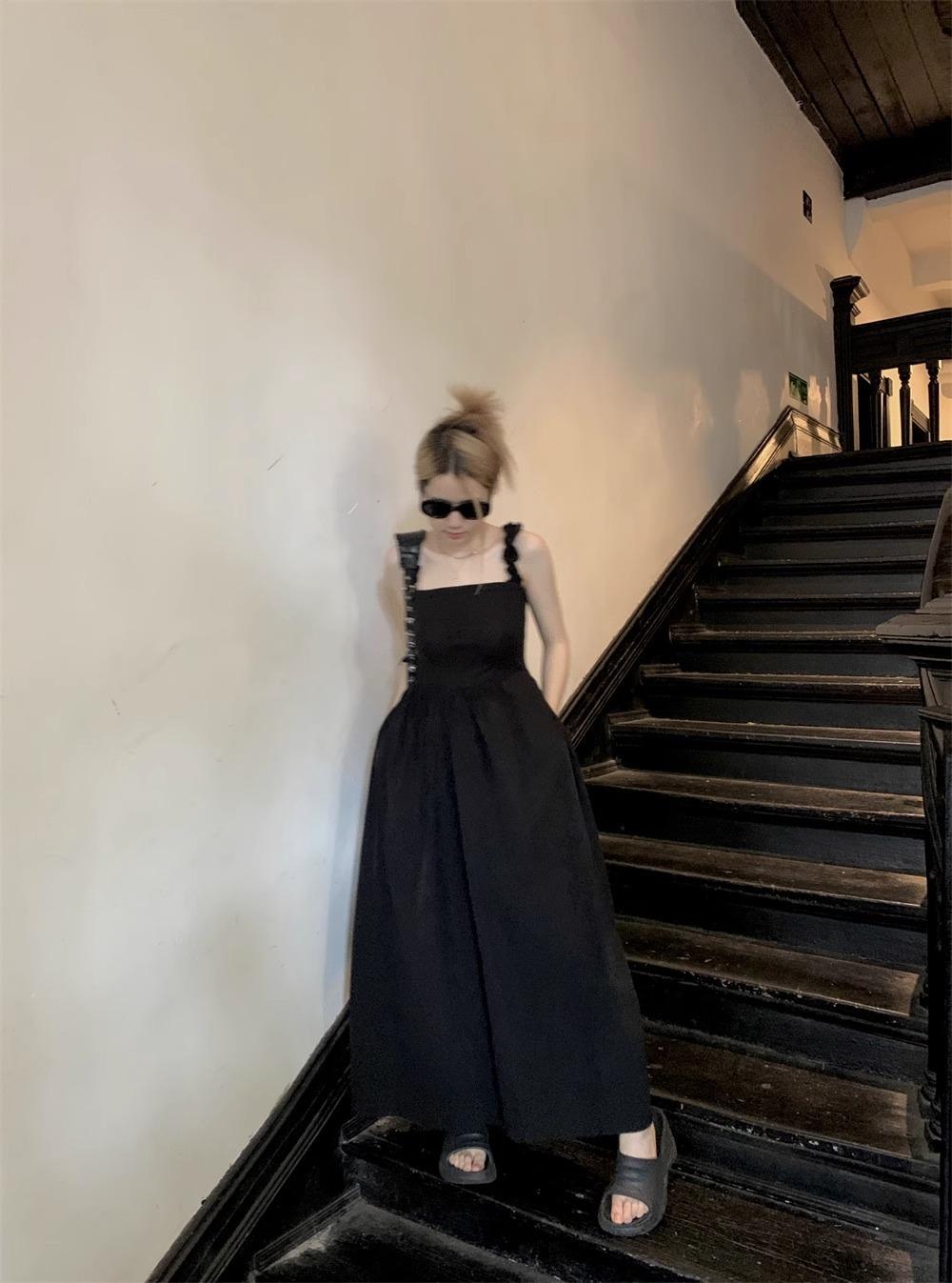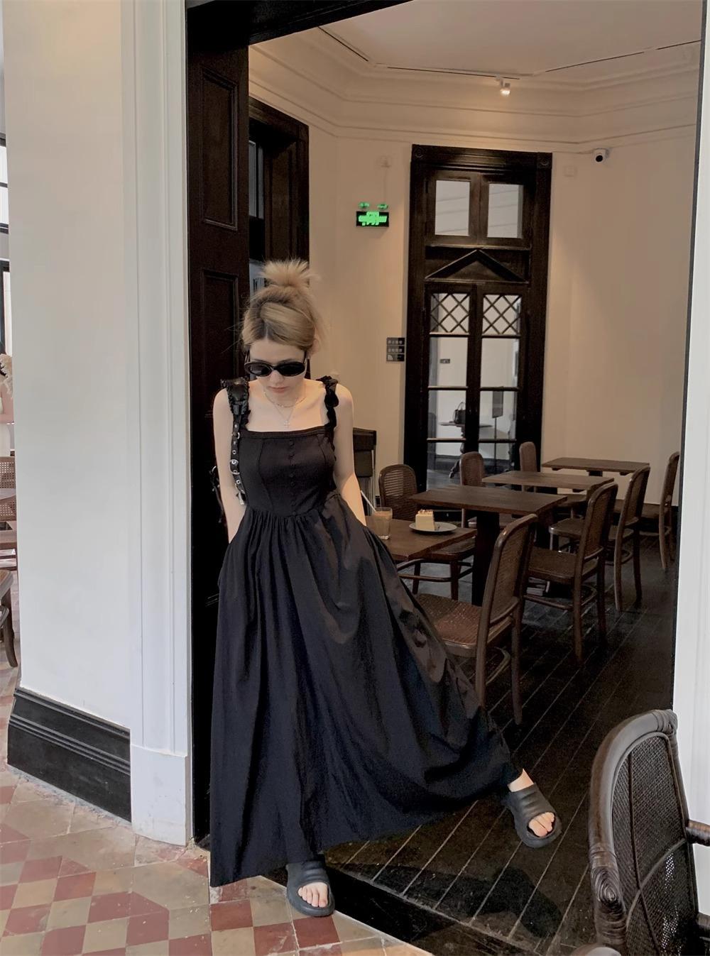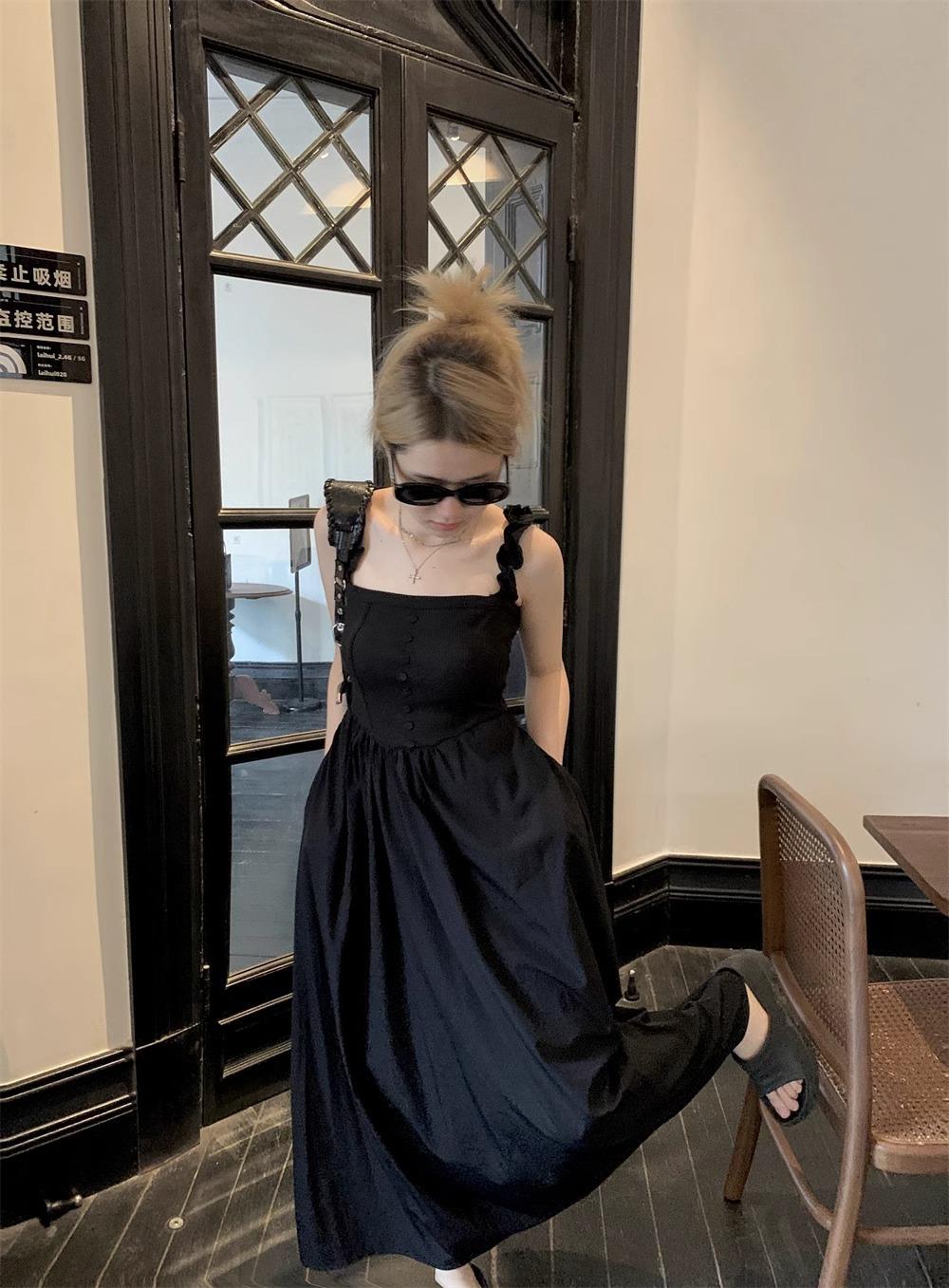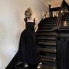 Vestido Negro de Alta Gama con Volantes Estilo Hepburn Francés de Talla Grande, Vestido Largo Elegante de Verano para Afinar la Cintura