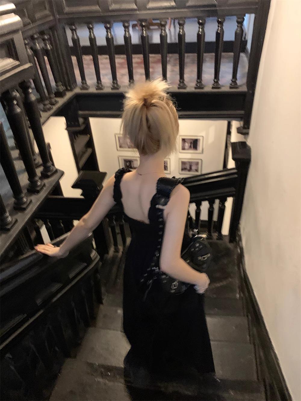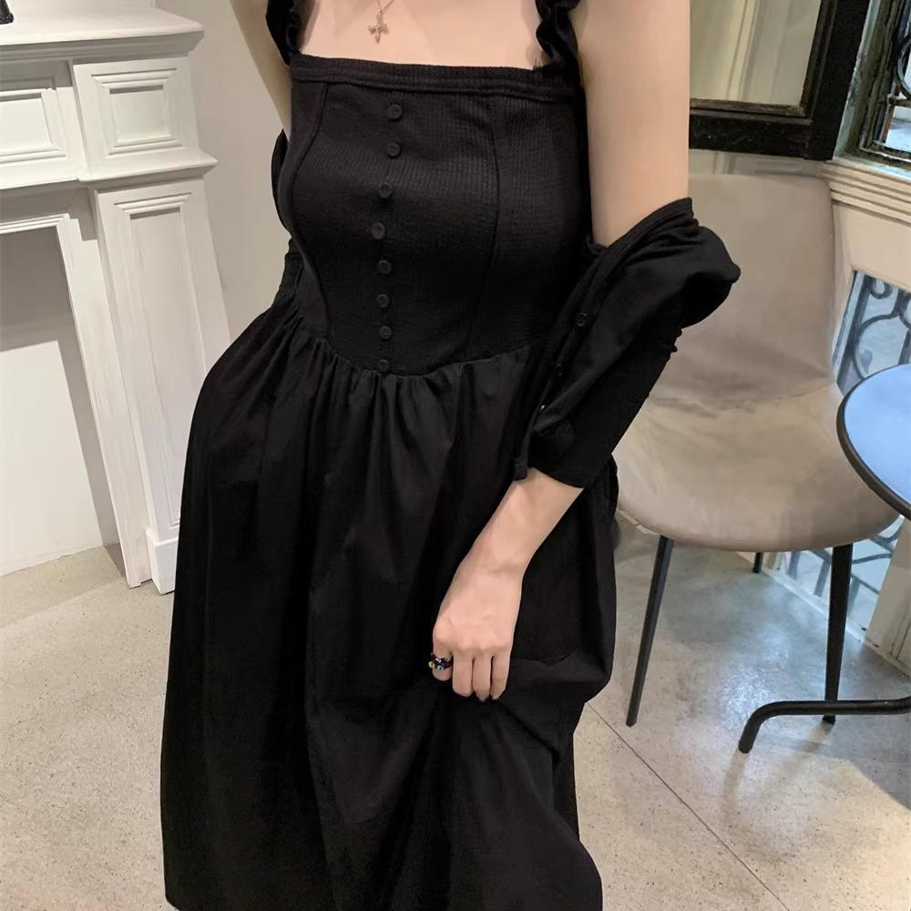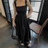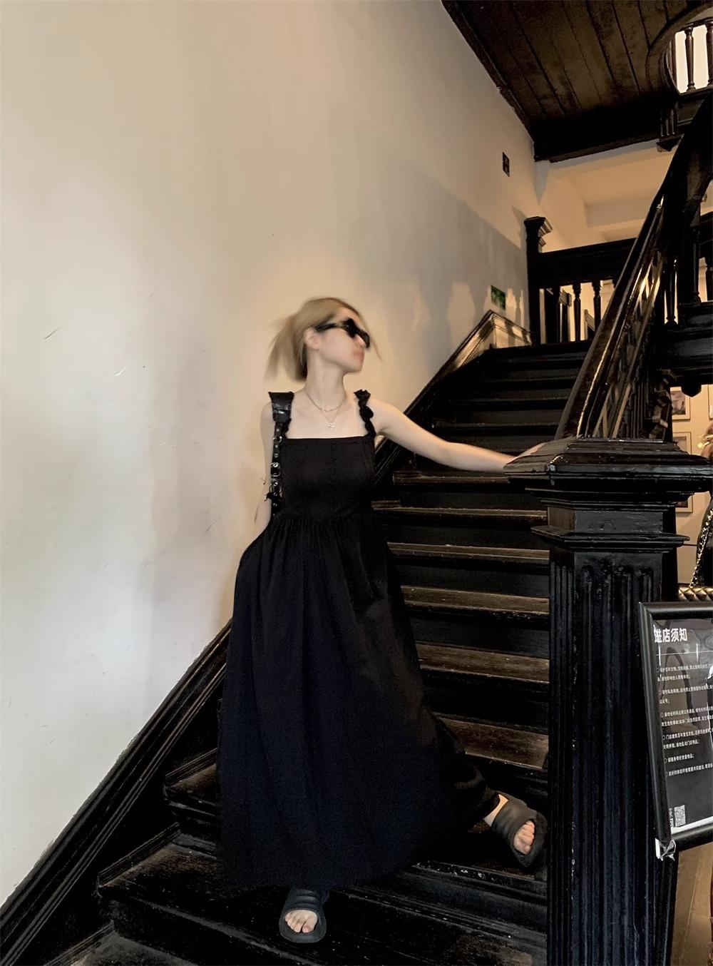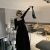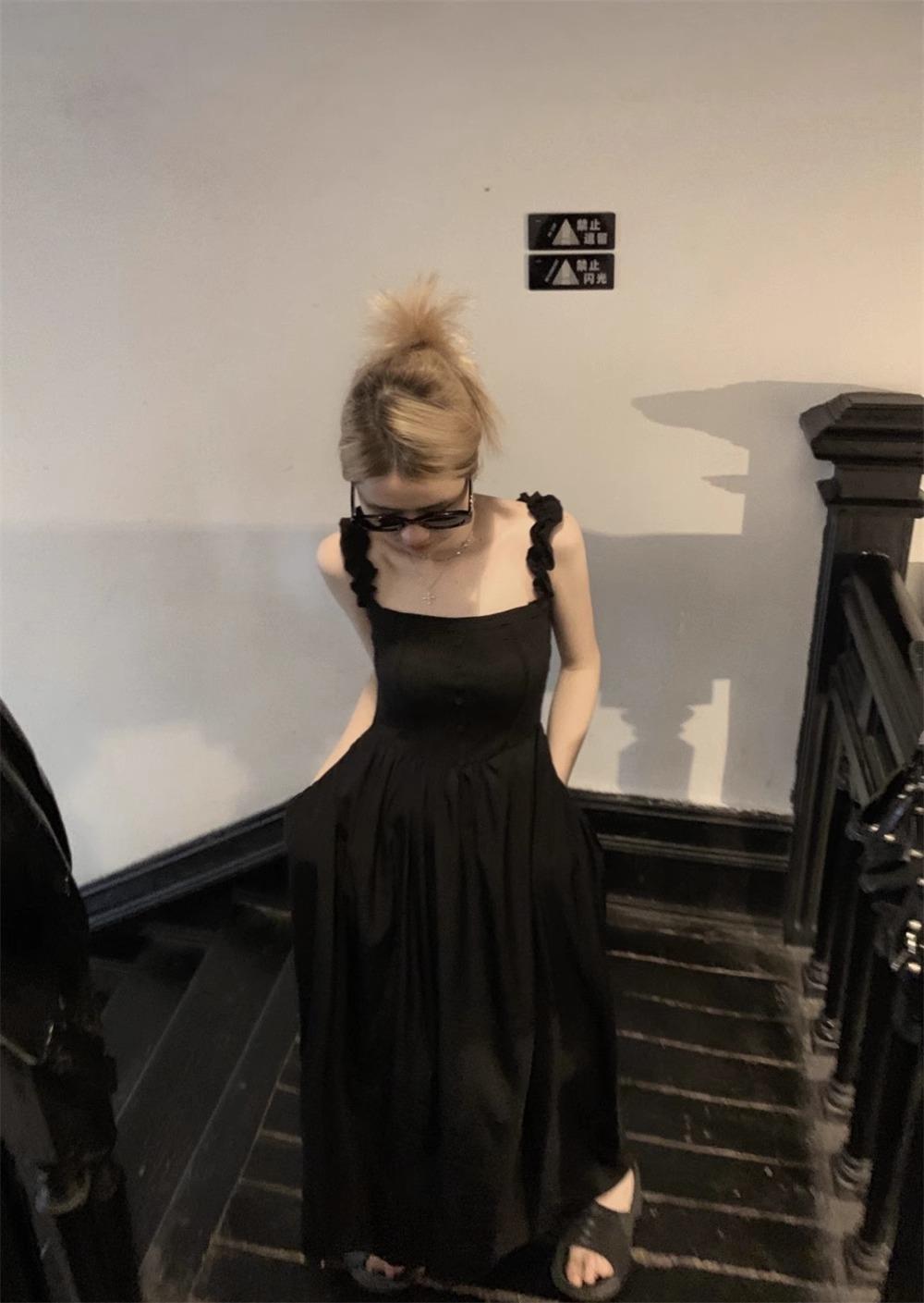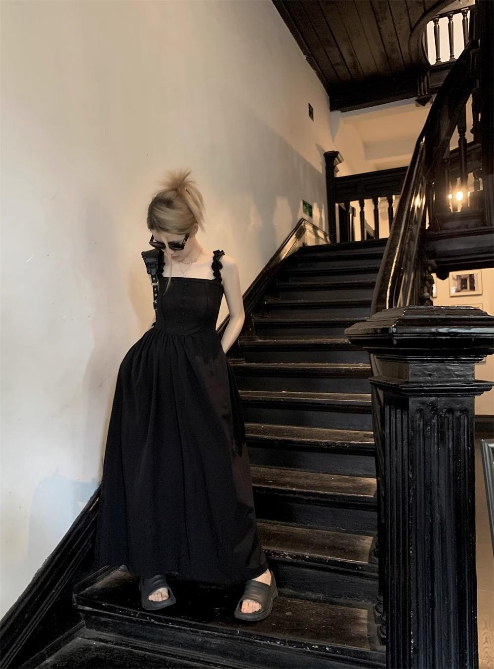 Vestido Negro de Alta Gama con Volantes Estilo Hepburn Francés de Talla Grande, Vestido Largo Elegante de Verano para Afinar la Cintura
