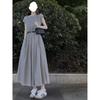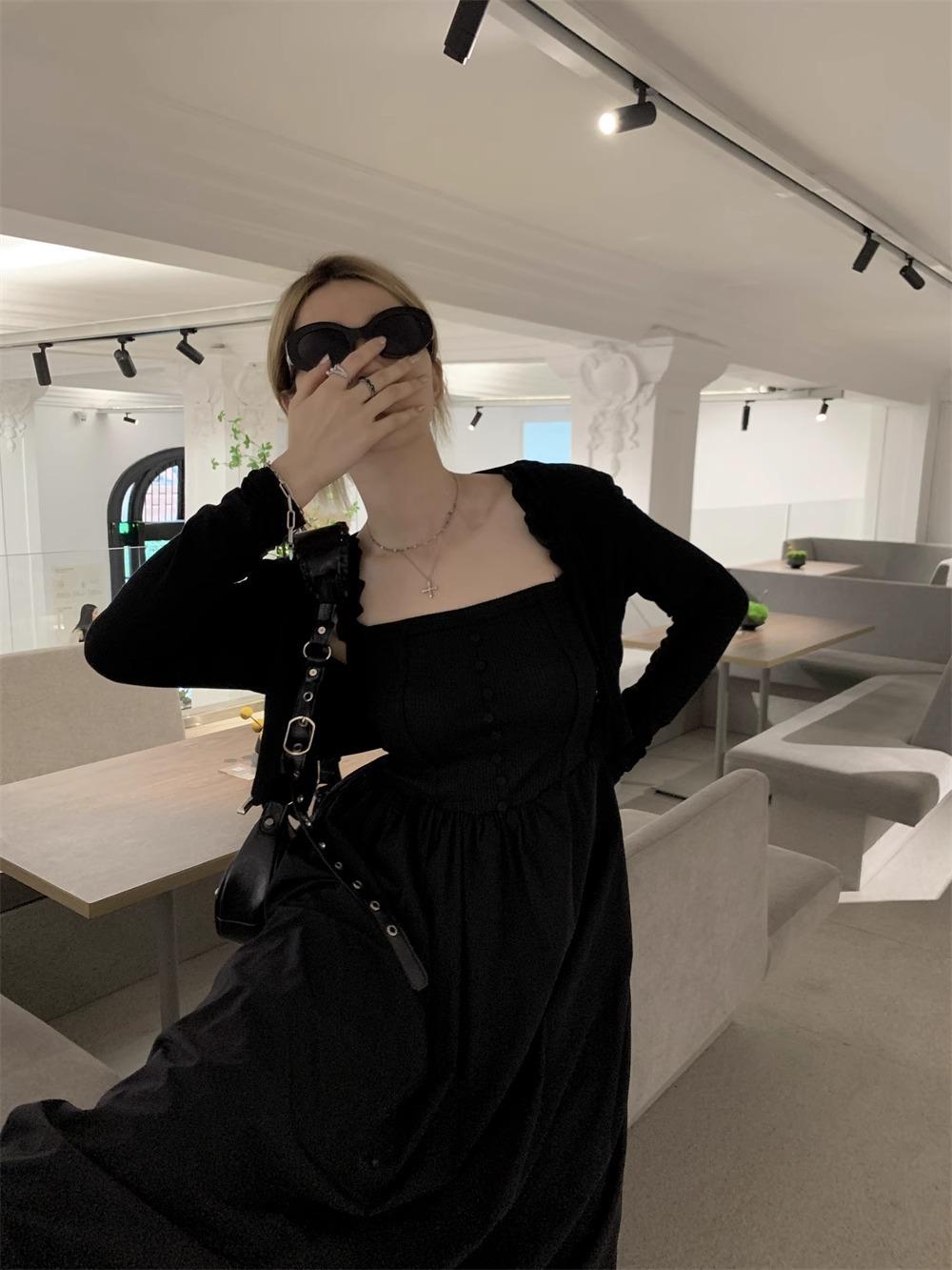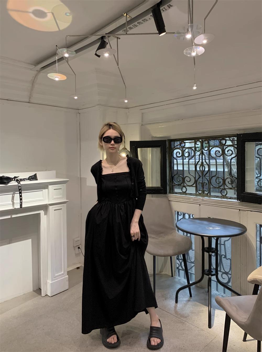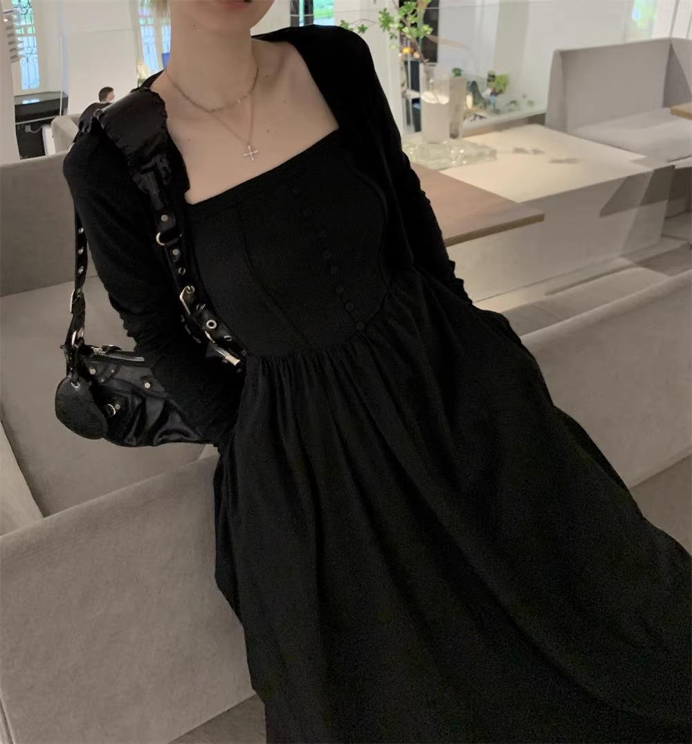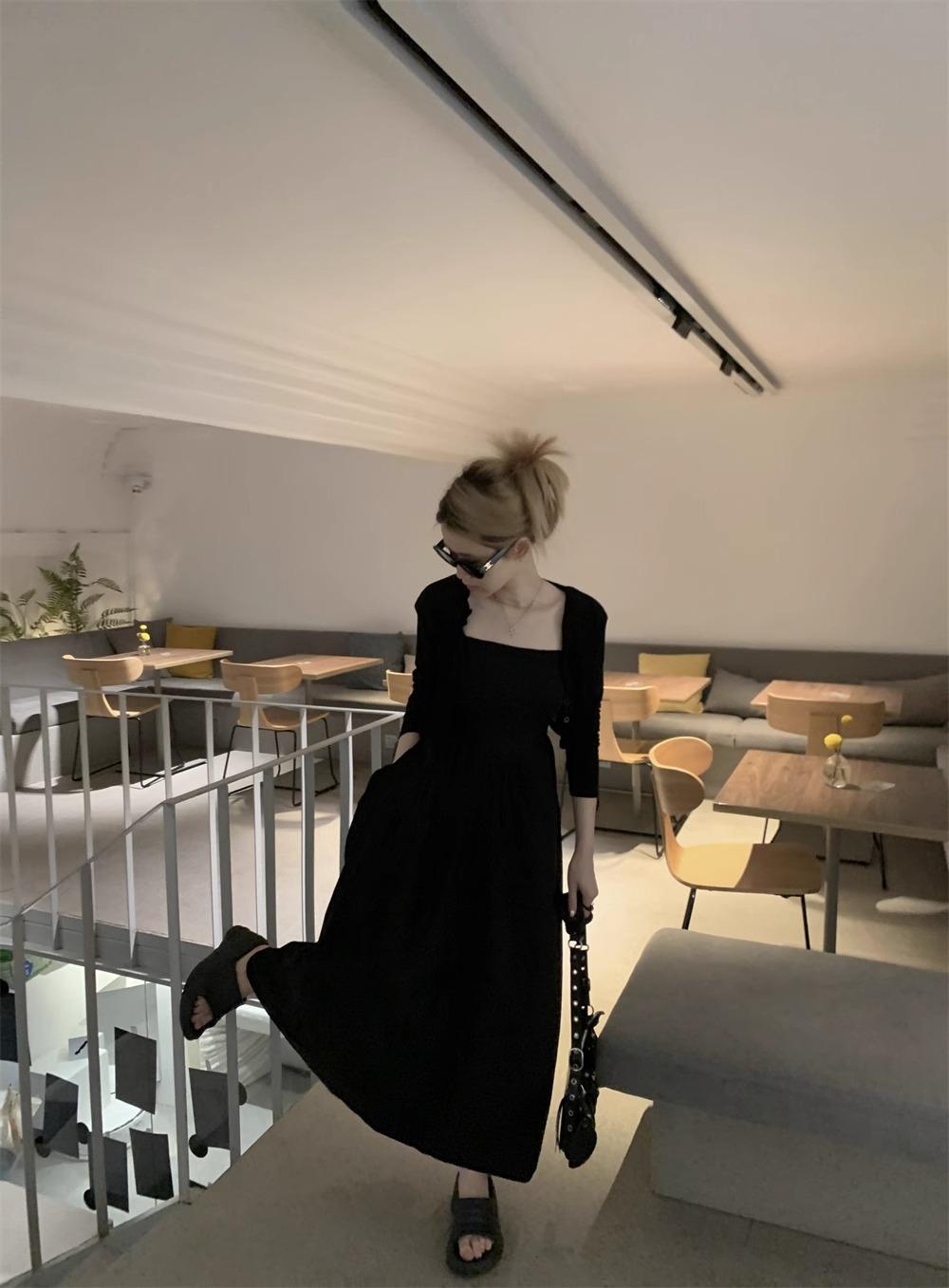Vestido Negro de Alta Gama con Volantes Estilo Hepburn Francés de Talla Grande, Vestido Largo Elegante de Verano para Afinar la Cintura