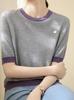 Suéter de punto de media manga con hombros descubiertos y cuello redondo francés holgado para mujer, top fino de manga media con combinación de colores de otoño