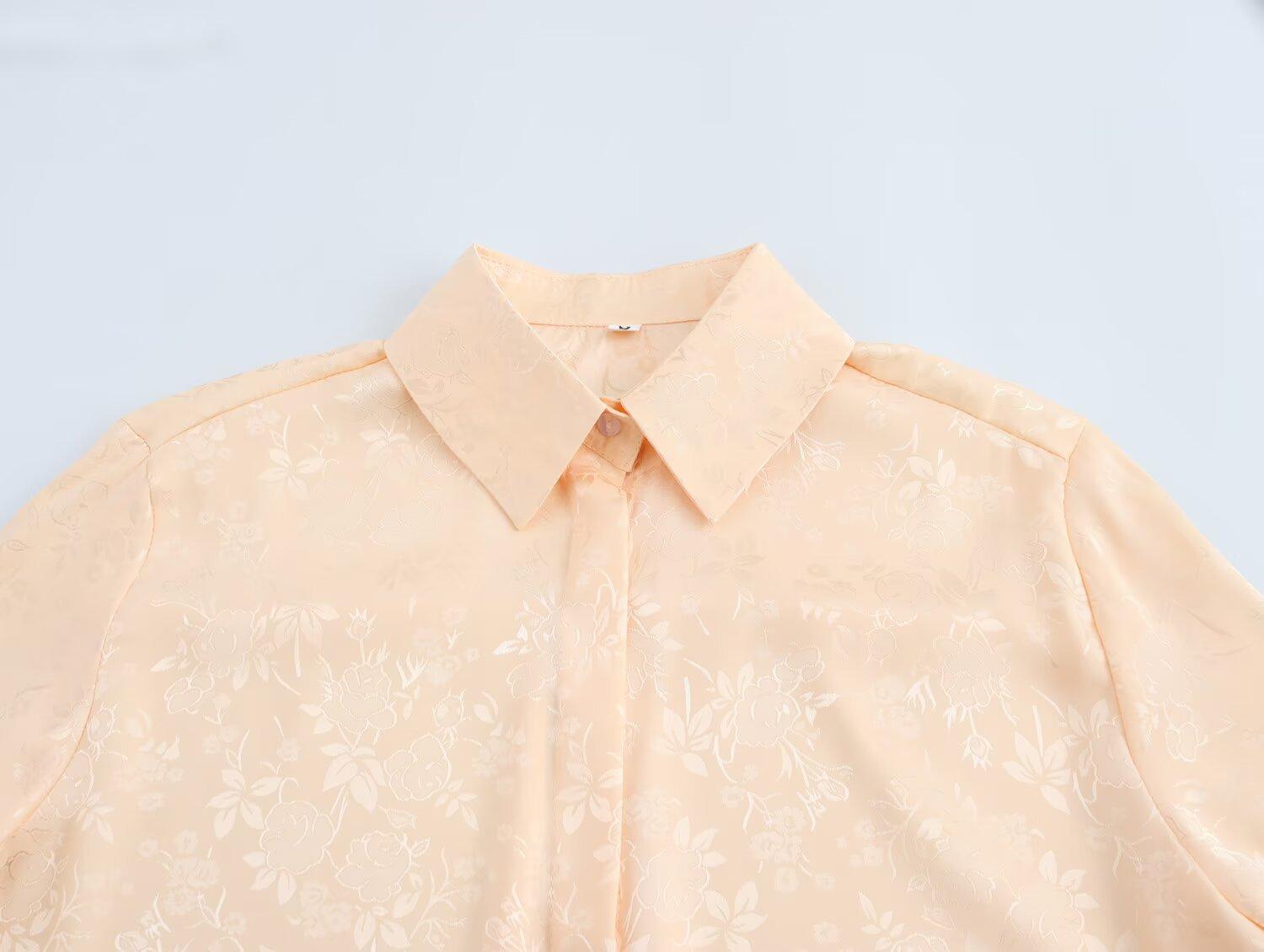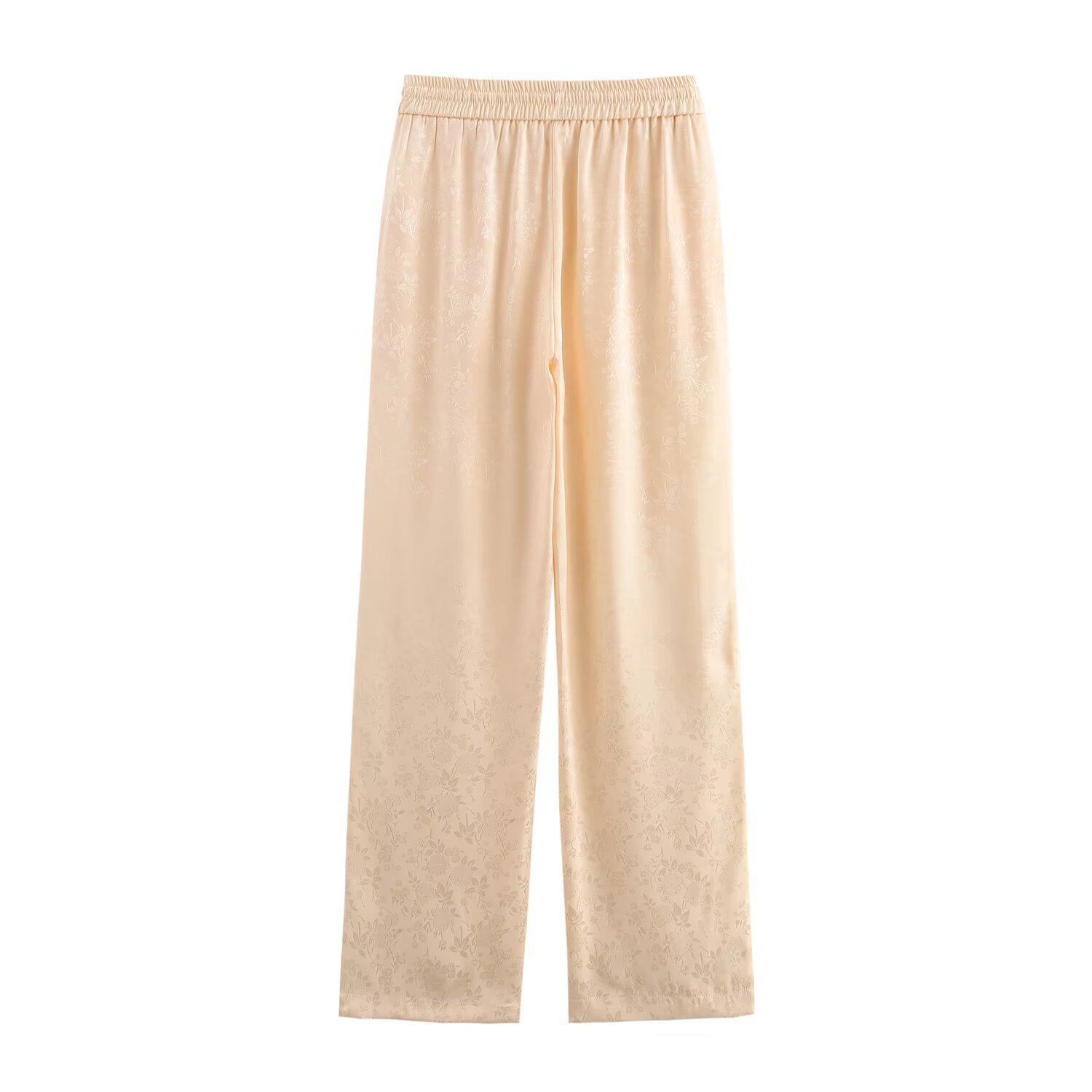 2025 primavera nuevo ropa de mujer transfronteriza europea y americana camisa jacquard de flores traje de pantalón recto w021 CD81609