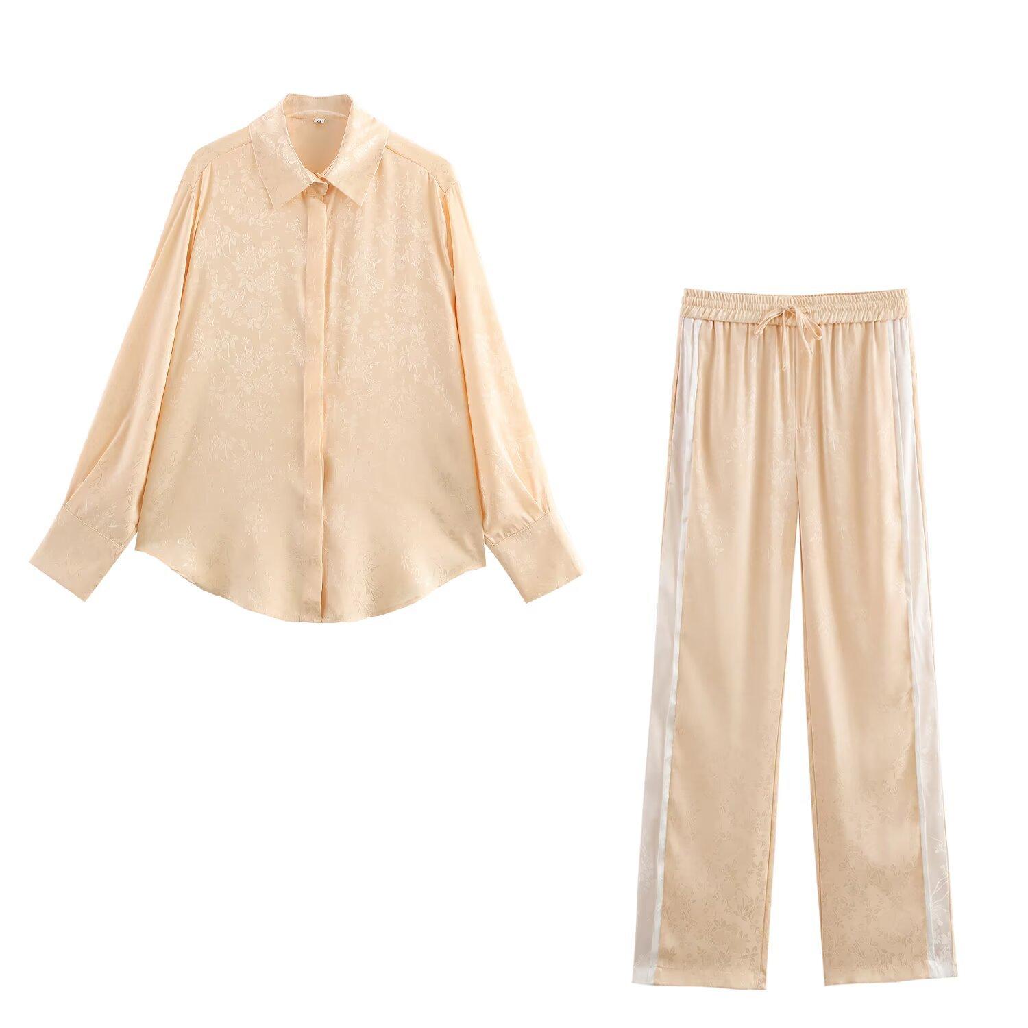 Apricot shirt, Off-white shirt, Apricot pants, Off-white pants