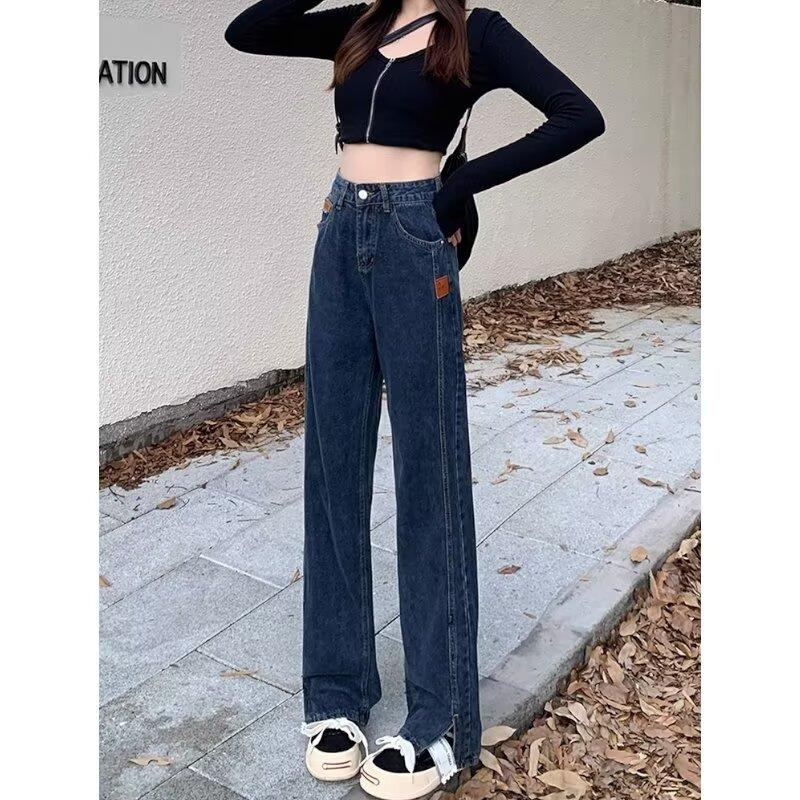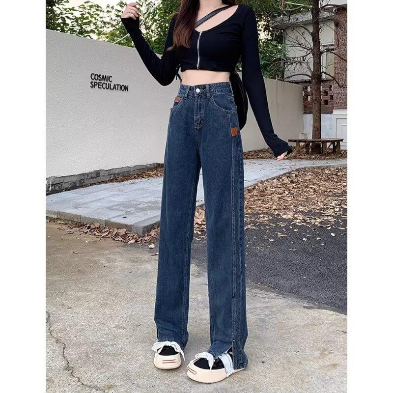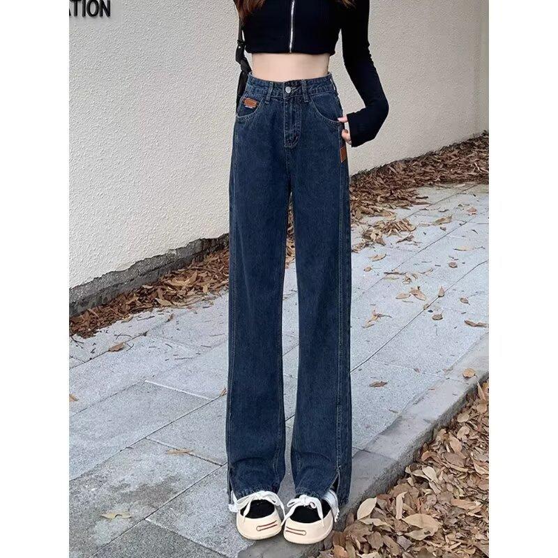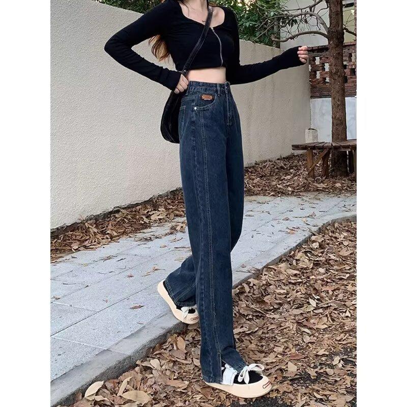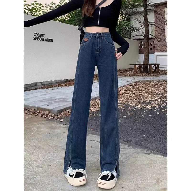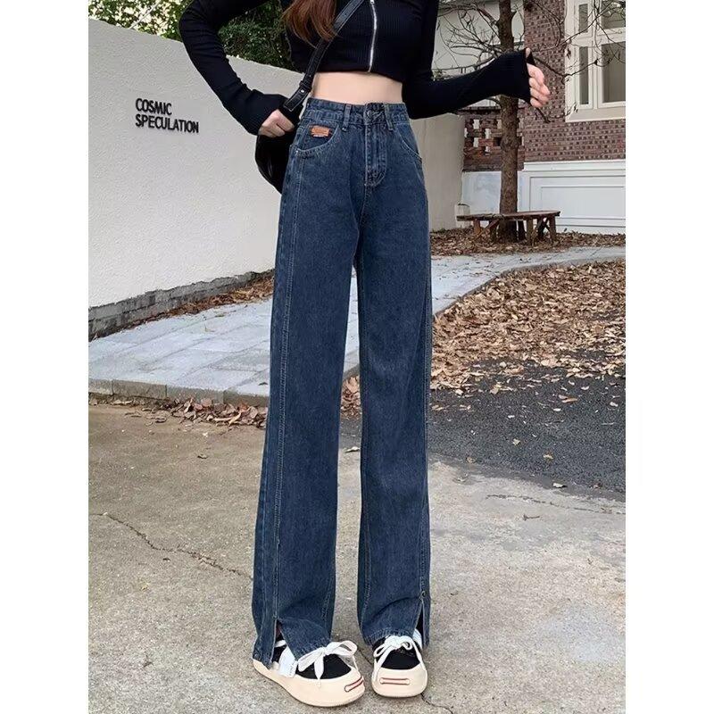 Pantalones vaqueros de pierna ancha y cintura alta para mujer, pantalón con abertura en el suelo, de talla grande, para otoño, 2024