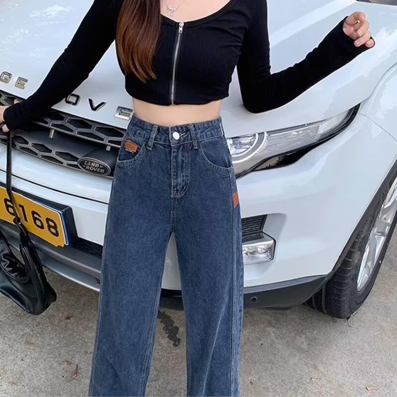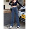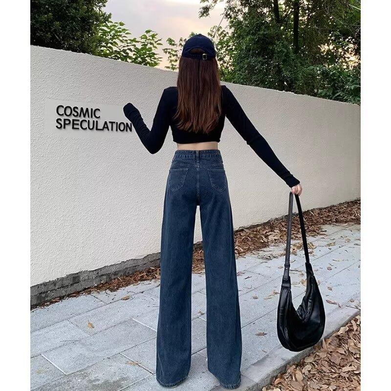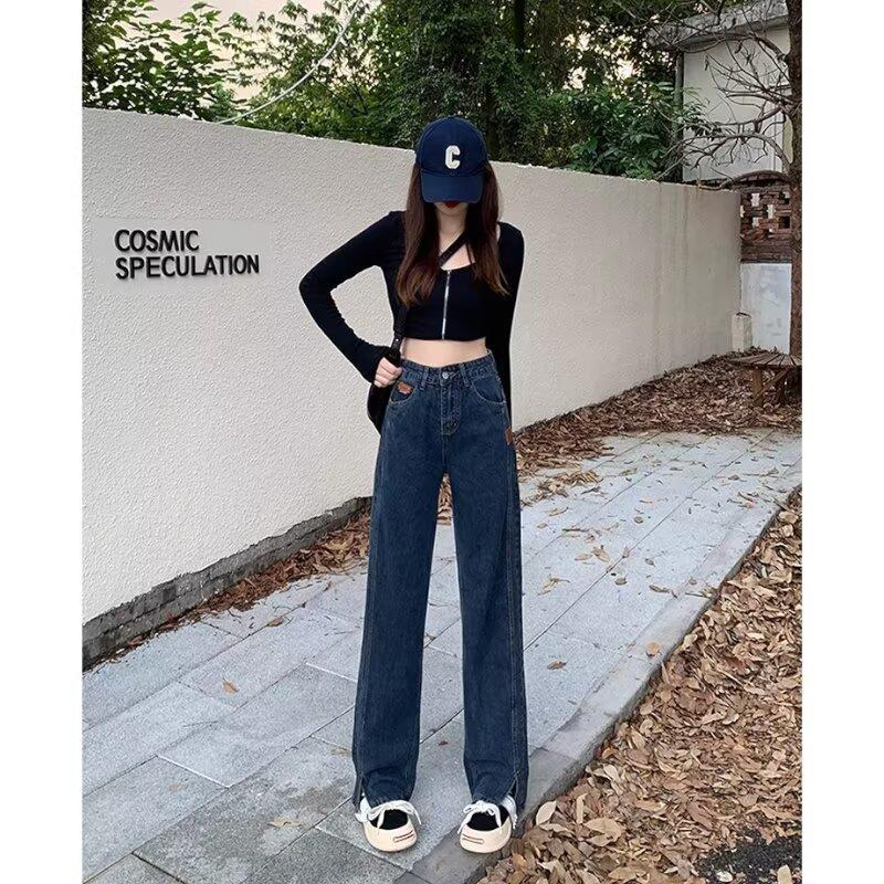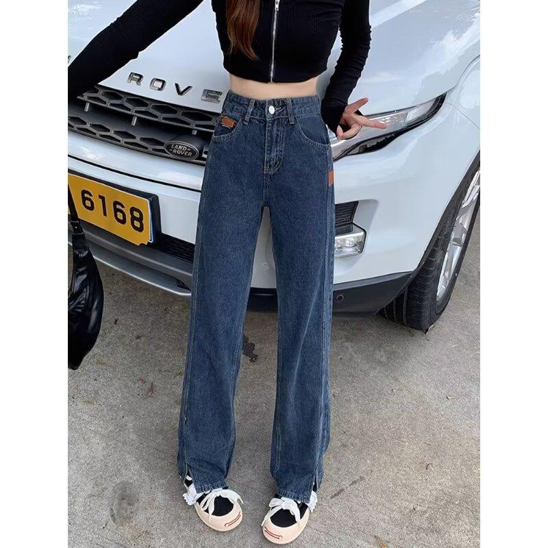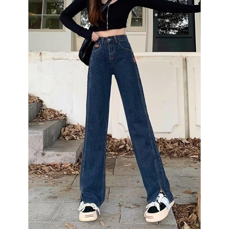 Pantalones vaqueros de pierna ancha y cintura alta para mujer, pantalón con abertura en el suelo, de talla grande, para otoño, 2024