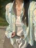 Compra Camisa a cuadros azul menta y verde, chaqueta fina, combinable con todo, exclusiva, de moda, con protector solar, cárdigan para mujer, 2024 al por mayor en Joom.pro
