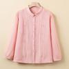 Camisa de manga larga de hilo de algodón bordado para madre de mediana edad y anciana, nueva para primavera y verano 2025, camisa holgada y ajustada