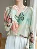 Cárdigan de punto con cuello en V, elegante y fino, estampado, estilo francés, nuevo, holgado, combinable, de manga larga.