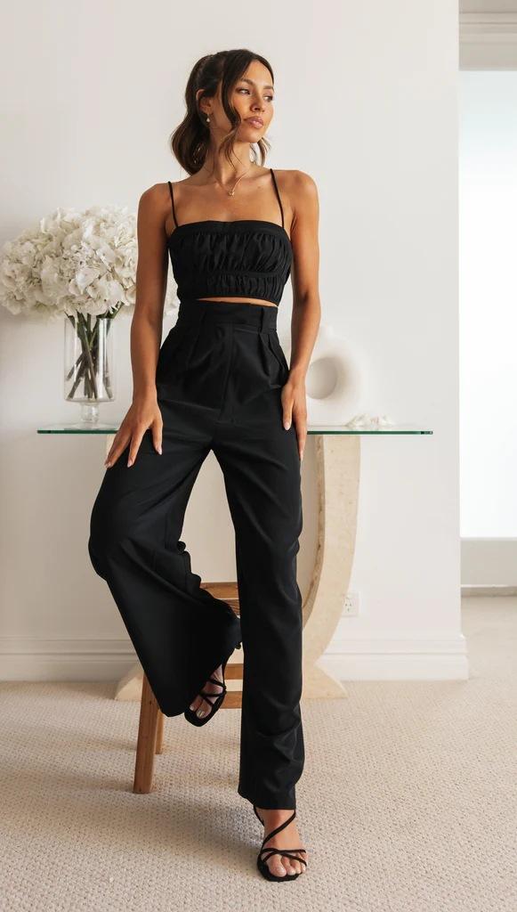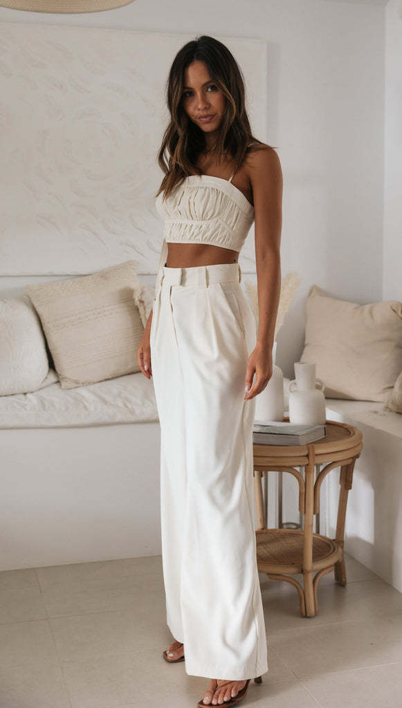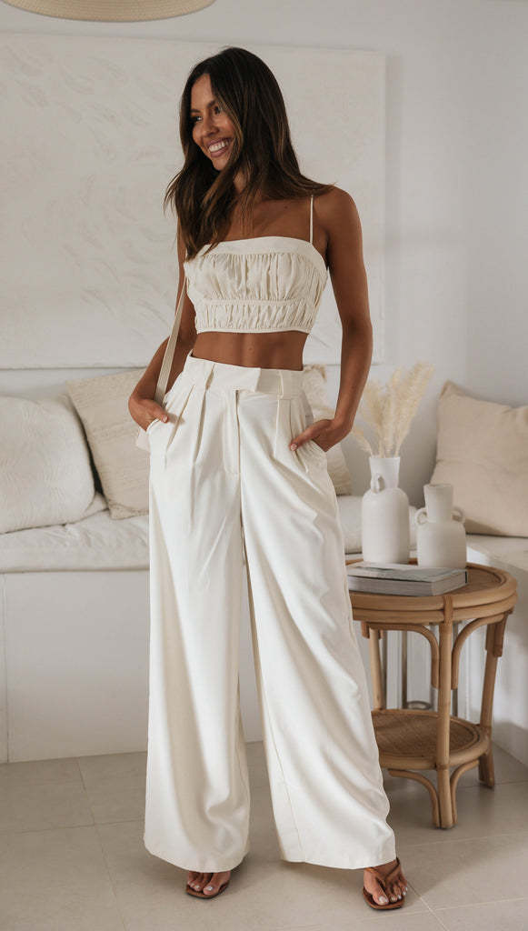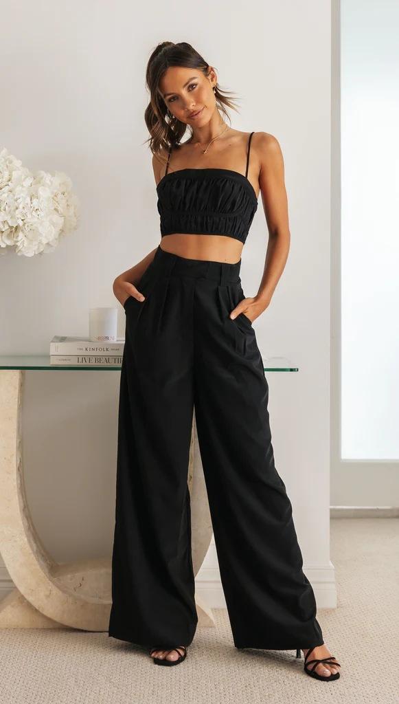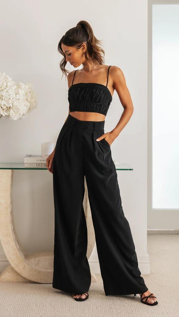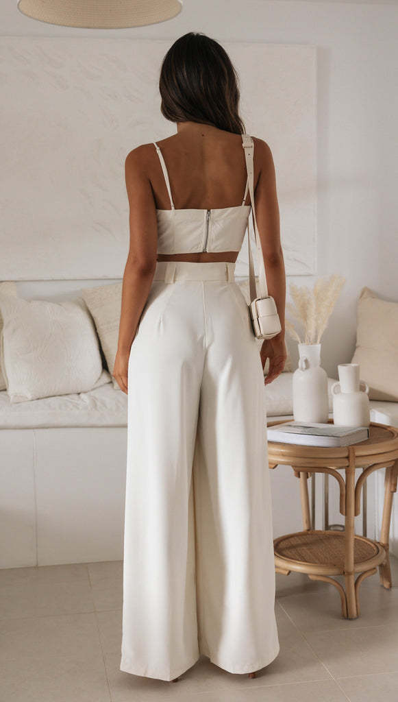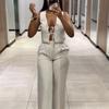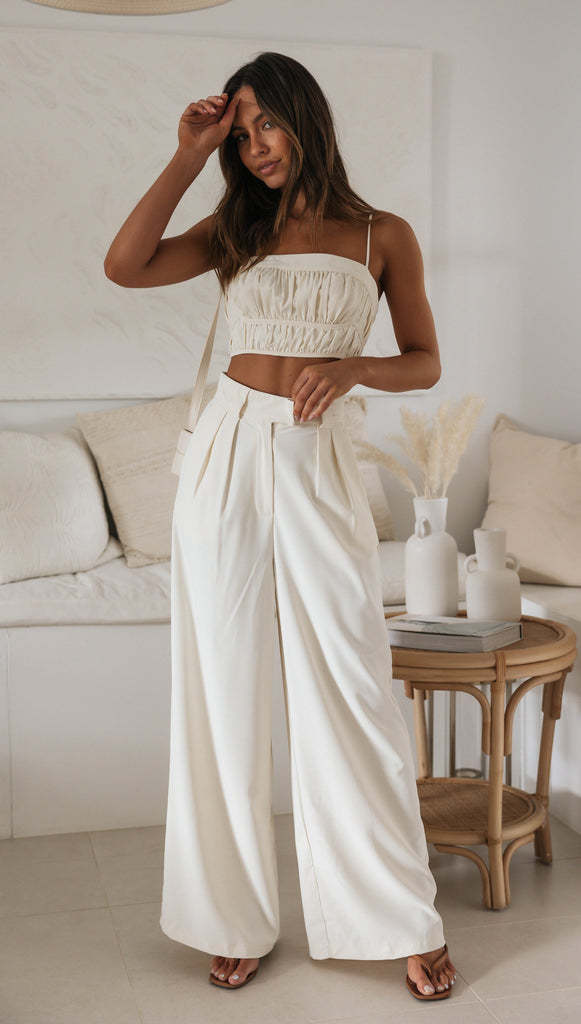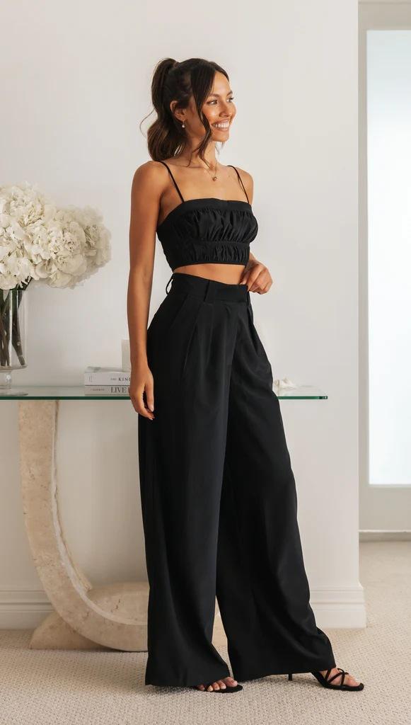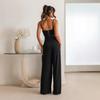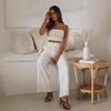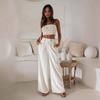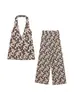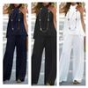 Top corto sin mangas con tirantes y pantalones largos de pierna ancha de color sólido para mujer europea y americana transfronteriza 2023