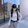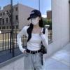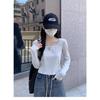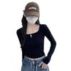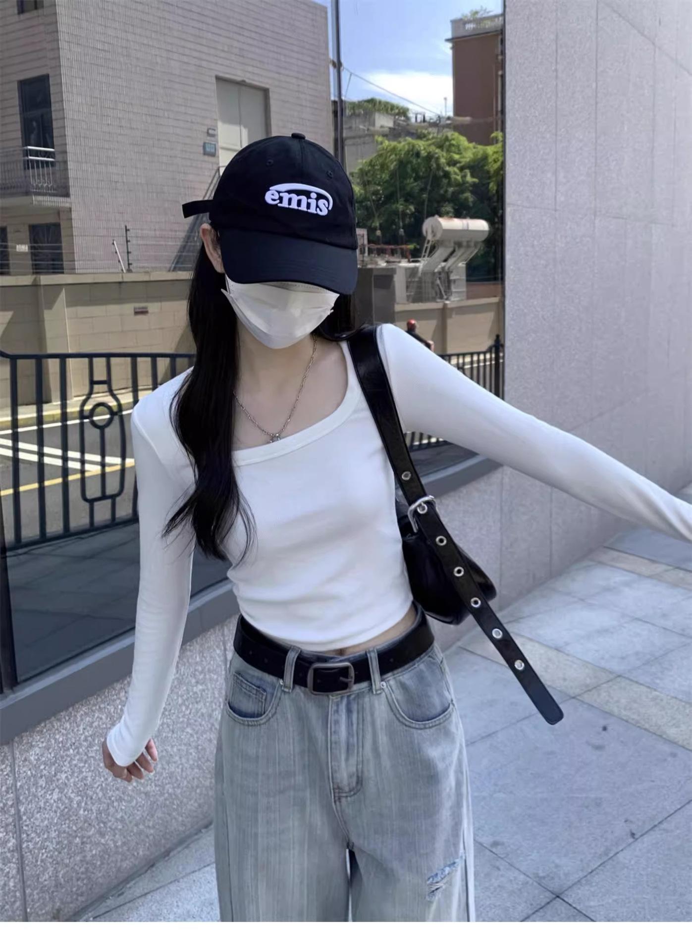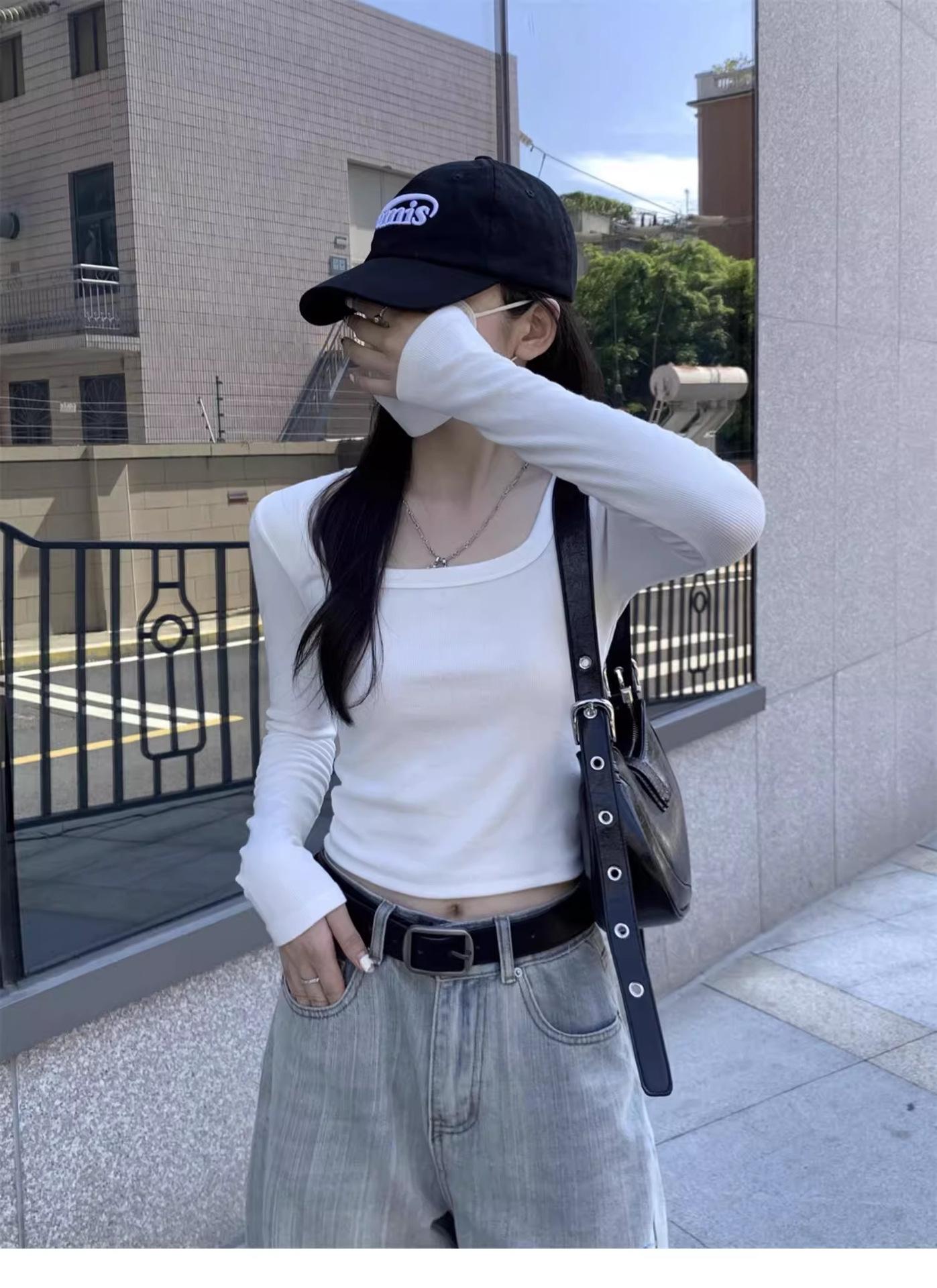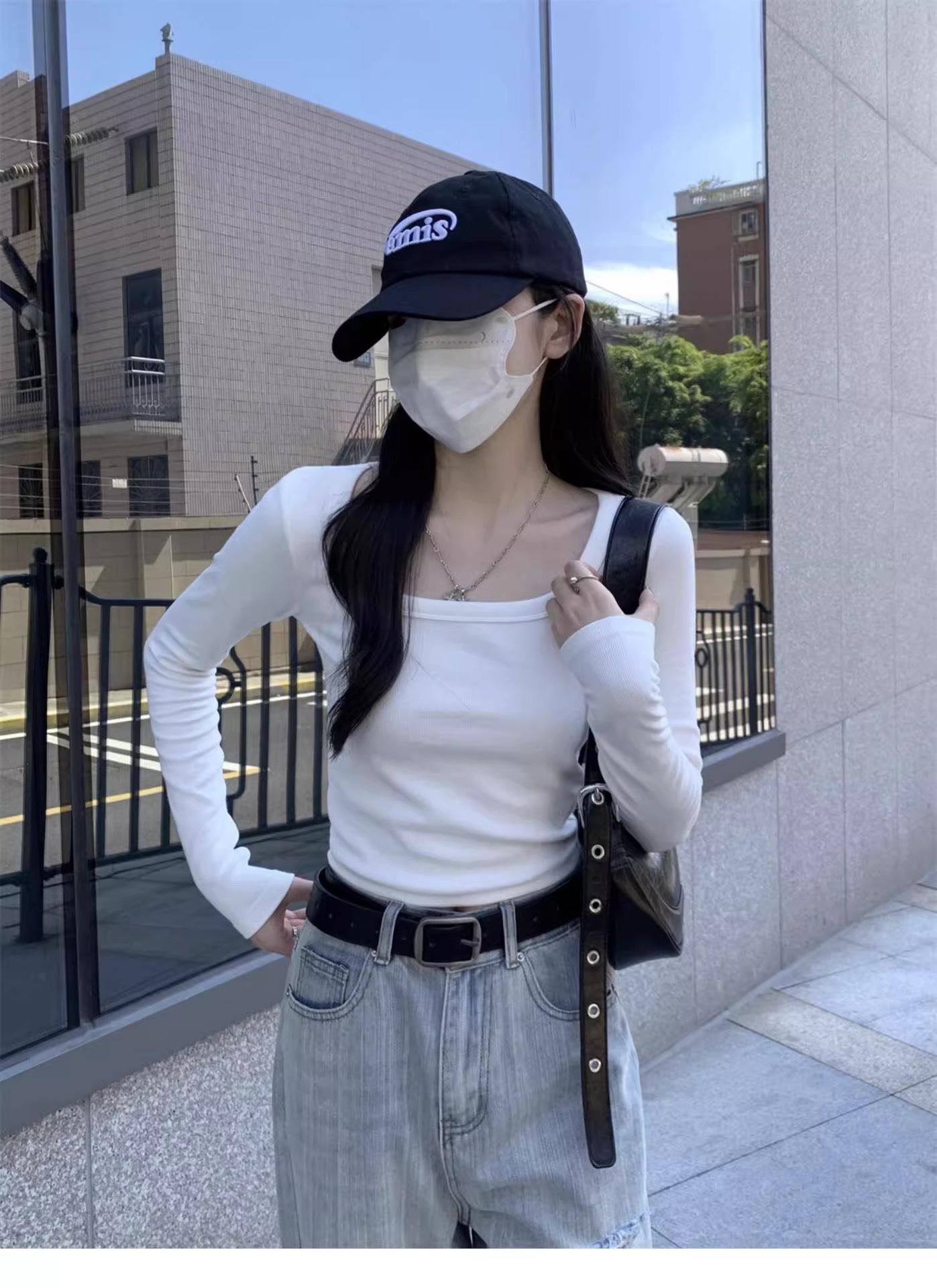 Camiseta de manga larga con cuello cuadrado y hombros descubiertos para otoño, estilo Spice Girls Pure Desire Niche Ins, ajustada y adelgazante.