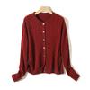 La tapeta adopta abertura con botones reales, y todos los ojales están hechos con tecnología de recogida de aguja móvil