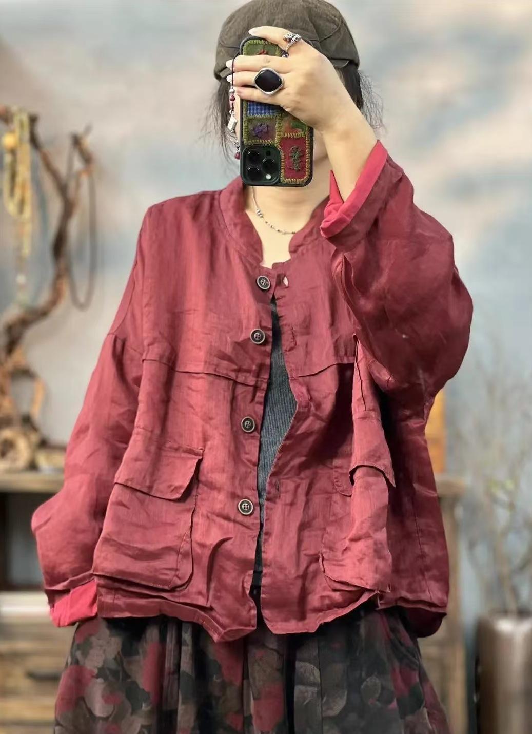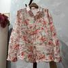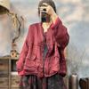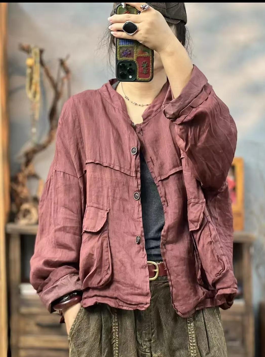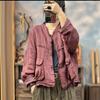 Cárdigan informal de color liso con cuello holgado, doble capa, estilo artístico, estilo retro de ramio, para mujer, primavera y verano 2025