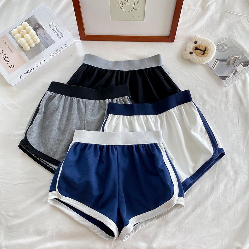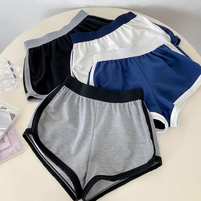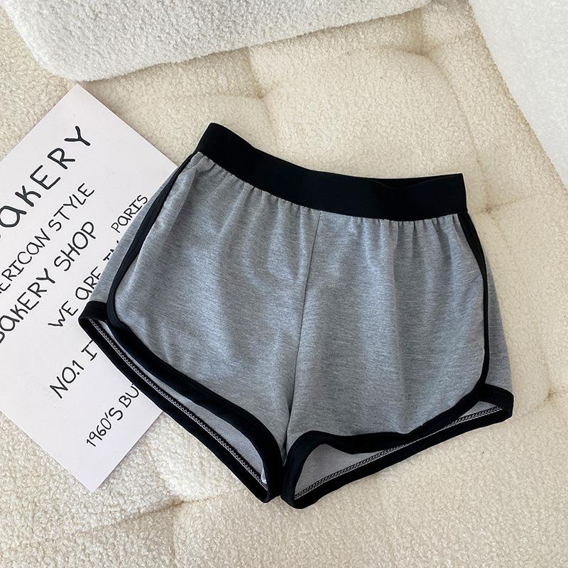 Pantalones cortos deportivos de cintura alta negros ajustados de corte A para mujer, estilo casual americano, para fitness, para verano, para exteriores, para chicas atractivas, color gris