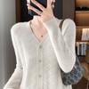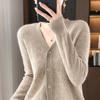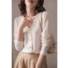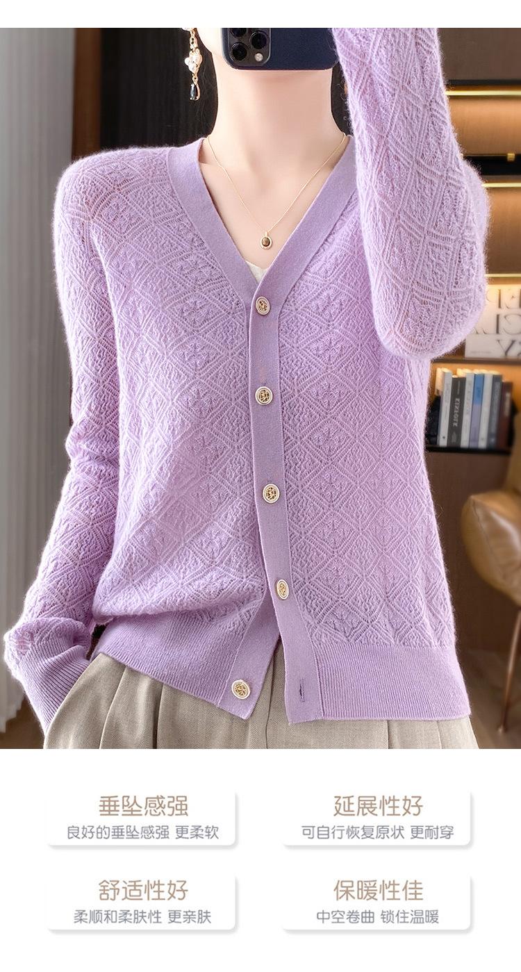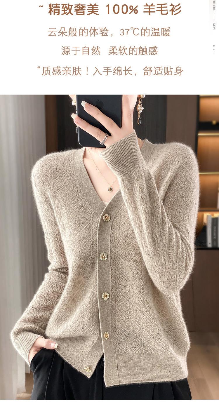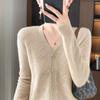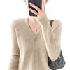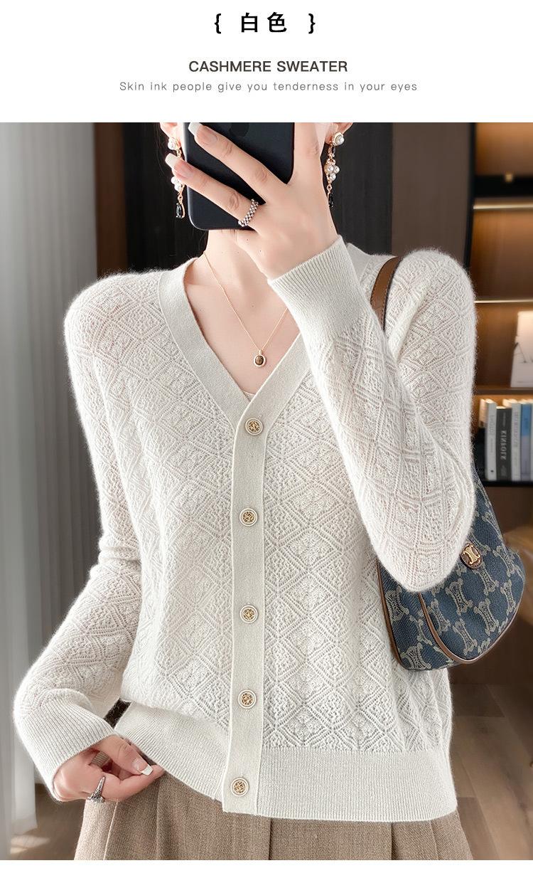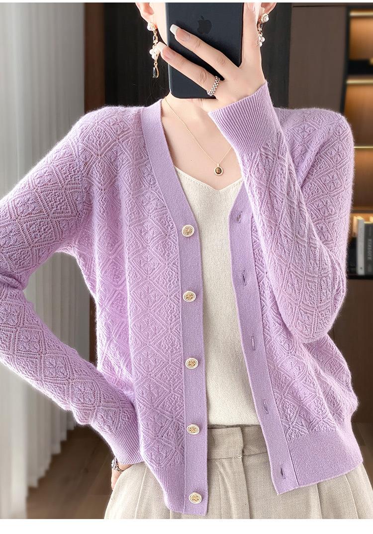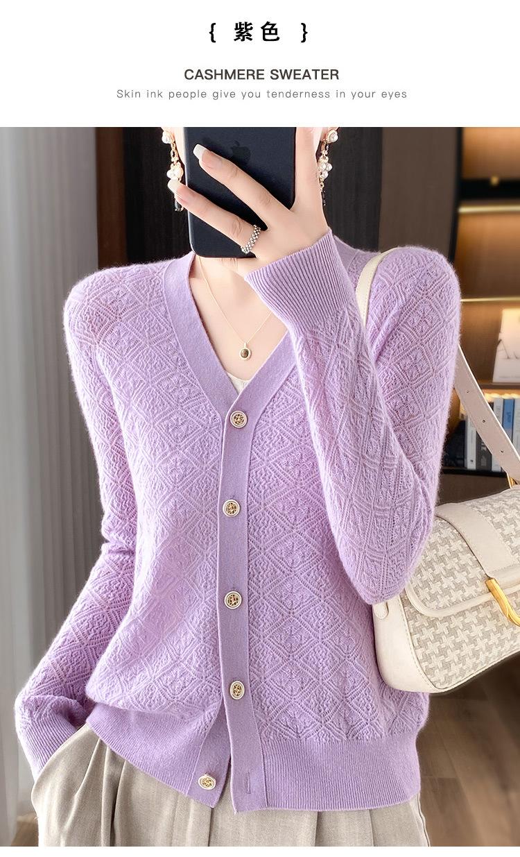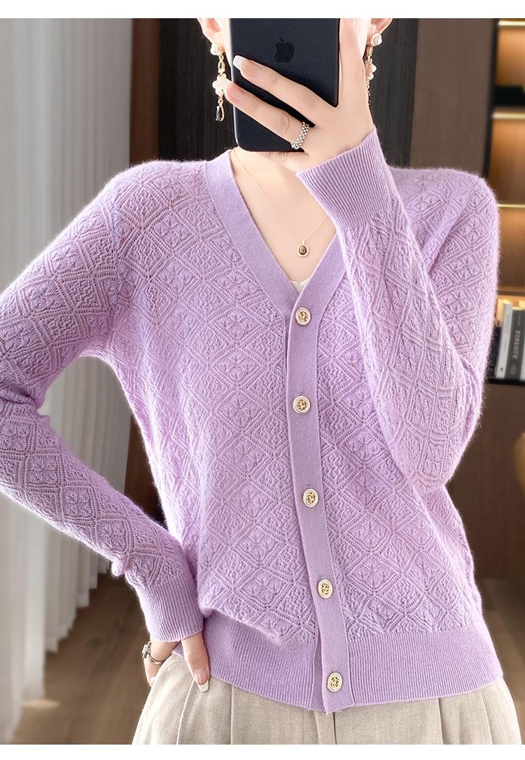 Cárdigan de lana calado con cuello en V para mujer, chaqueta informal holgada de punto de alta gama que combina con todo, primavera