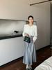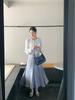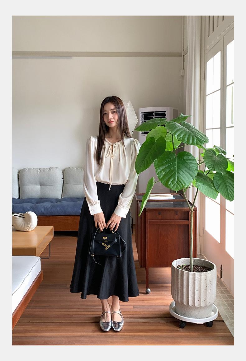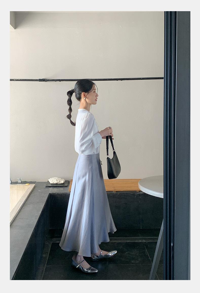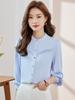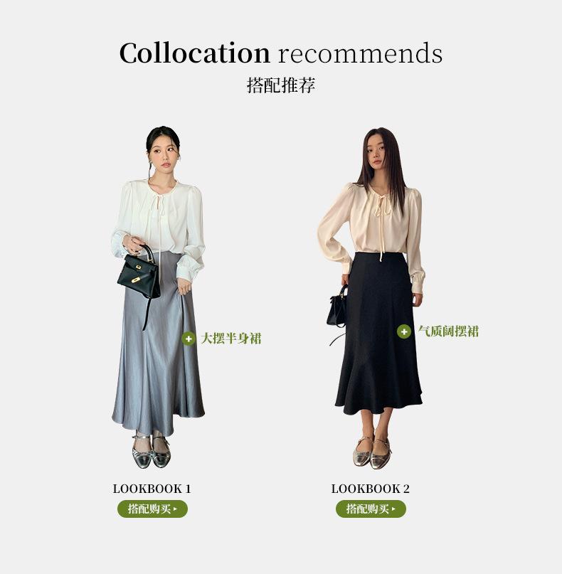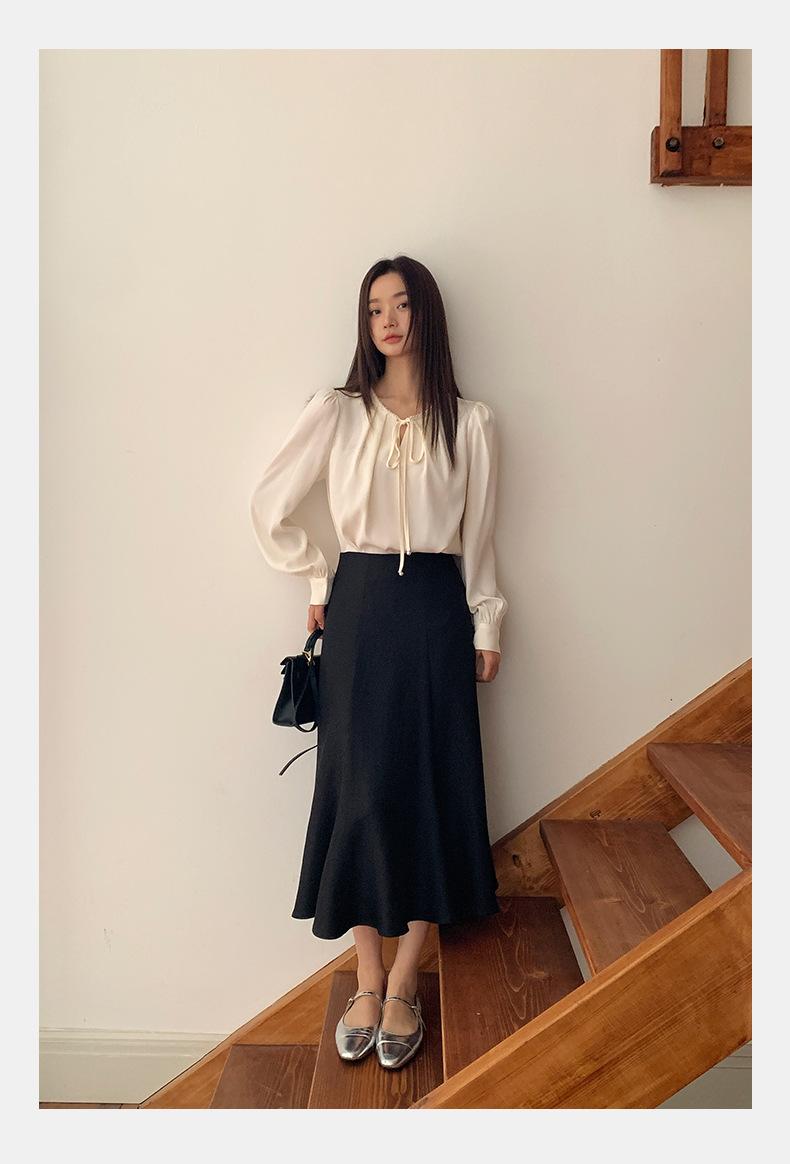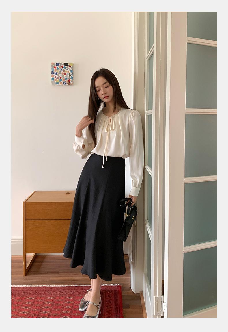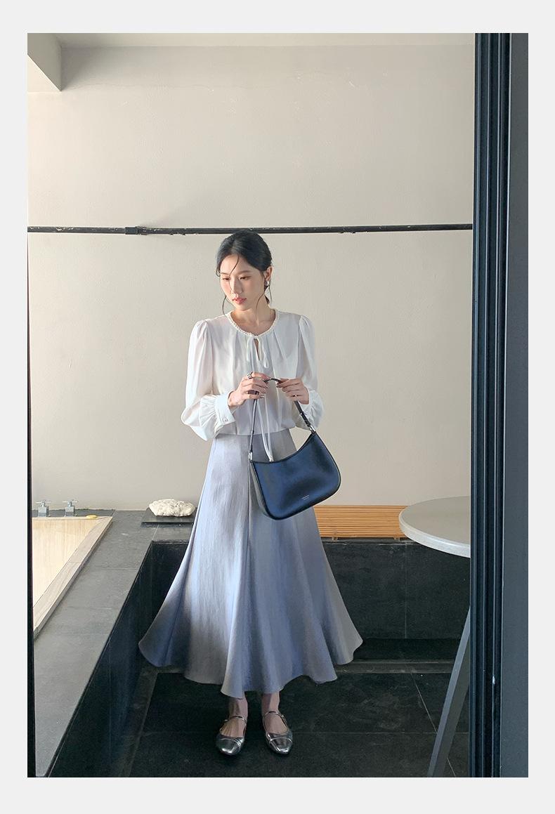 Camisa elegante de estilo francés con cuello redondo, cuentas y cordones para mujer, manga larga, diseño sencillo y combinable, 82973