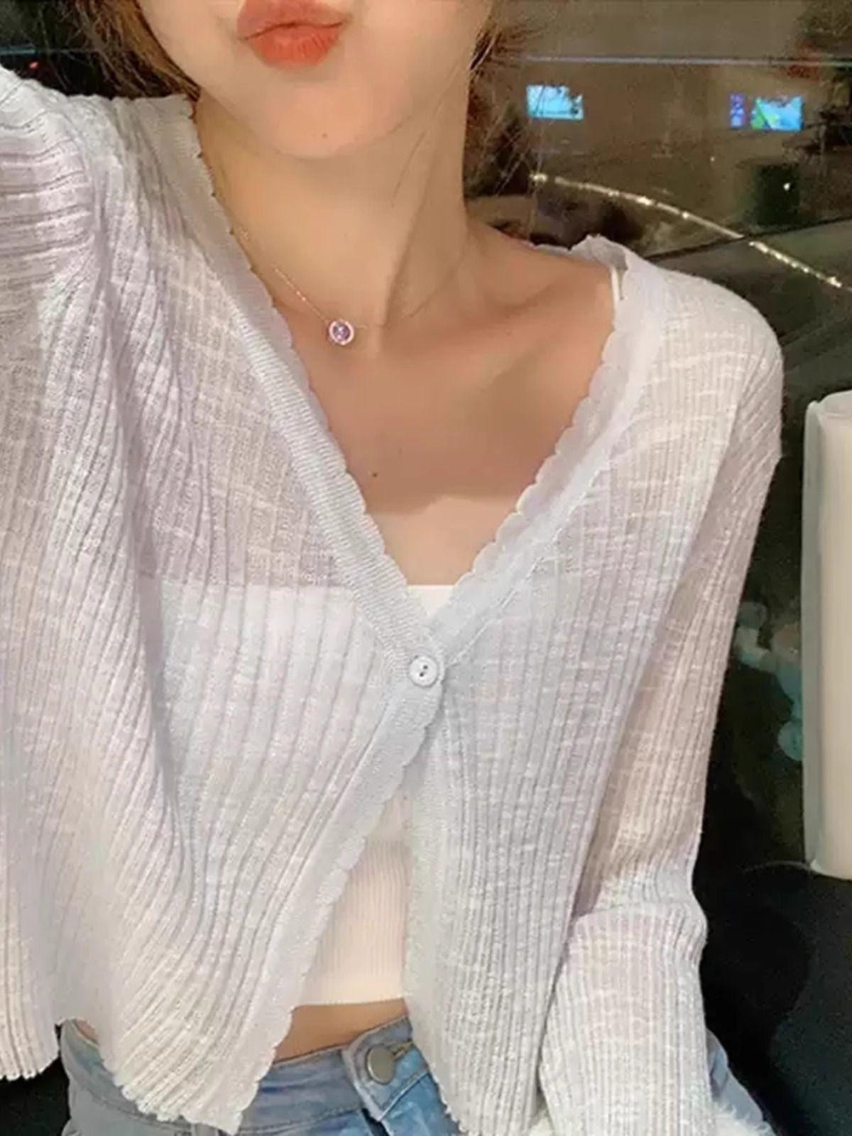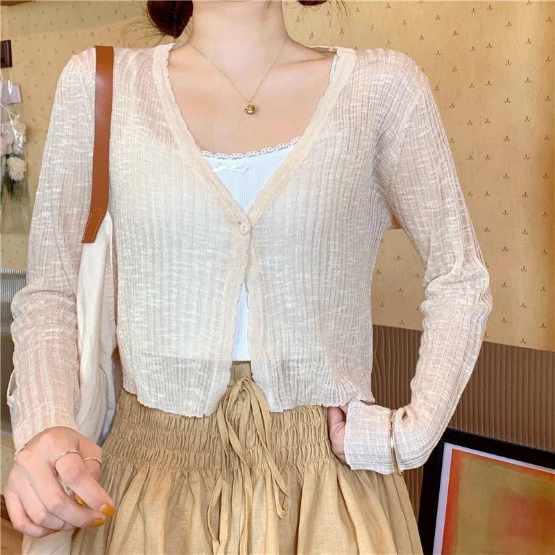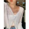 Chaqueta tipo cárdigan de punto con protector solar de seda de hielo para mujer, chal de verano, prenda exterior, camisa corta fina con cuello en V y aire acondicionado, chaleco