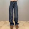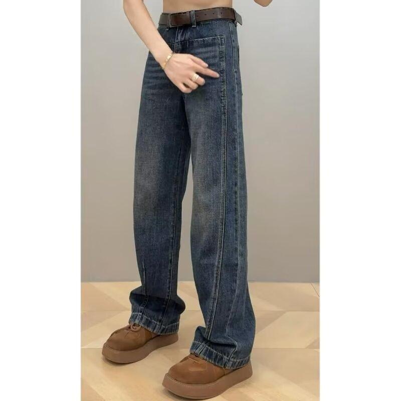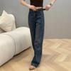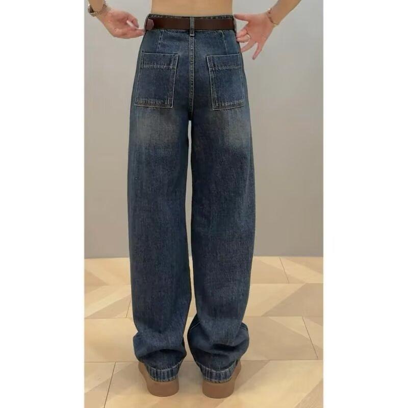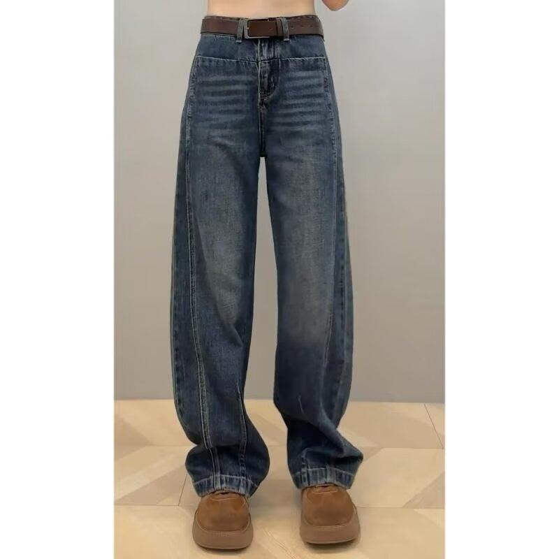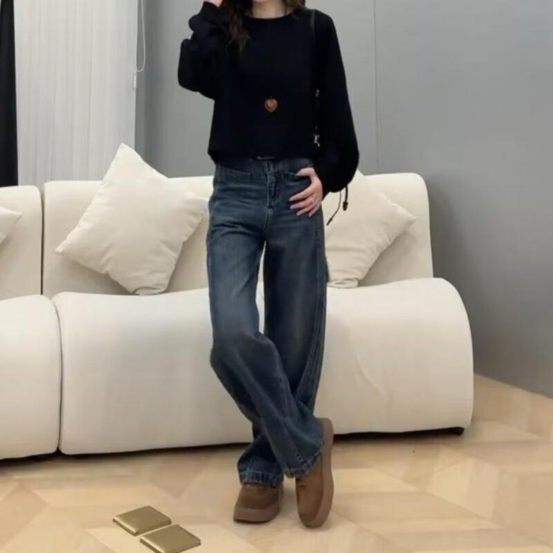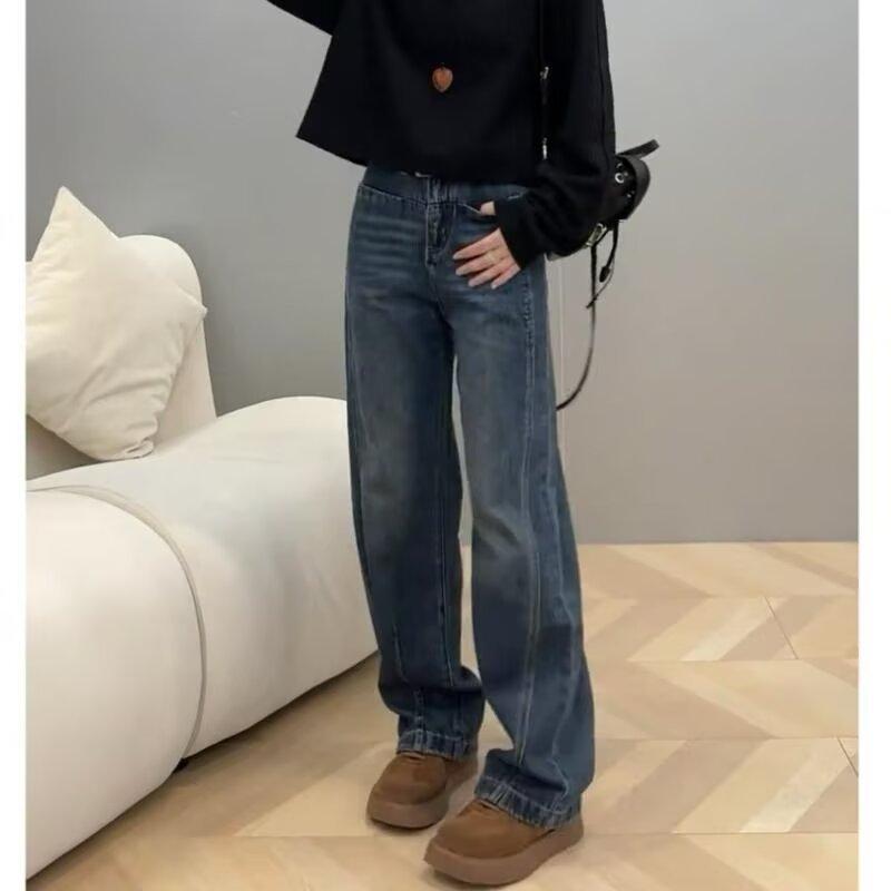 Pantalones vaqueros rectos holgados para mujer, primavera otoño e invierno 2025, nuevos, de cintura alta, adelgazantes, de pierna ancha y pequeña.