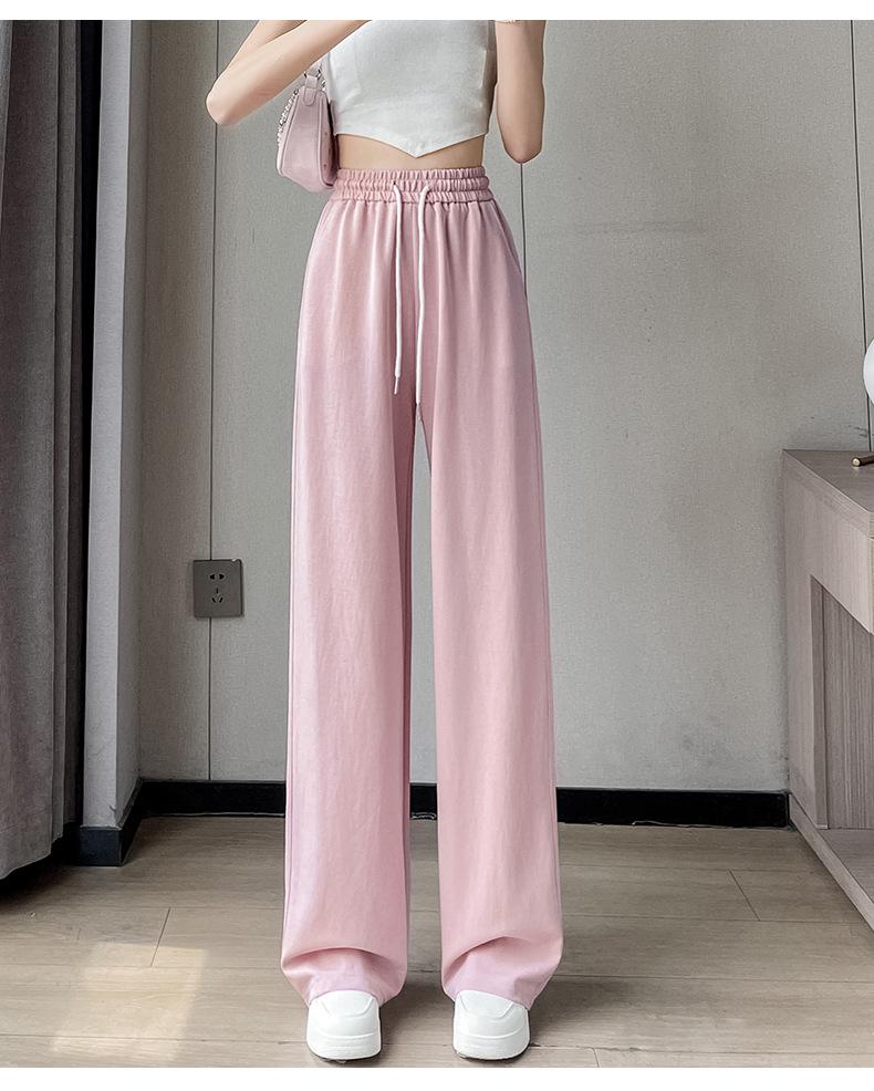Pantalones anchos para mujer, primavera y verano 2025, informales, deportivos, de cintura alta, holgados y rectos.