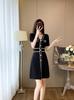2025 Nuevo Estilo Francés Camisa de Manga Corta Morado Suave para Vestir Niños Verano Pequeño Elegante Cintura Vestido Largo