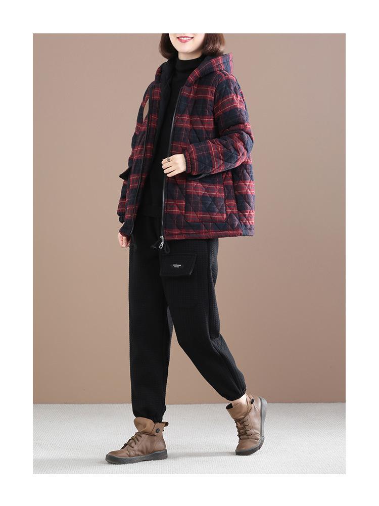 Abrigo nuevo de otoño e invierno de Simon Reiner, abrigo fino acolchado de algodón para mujer, abrigo ligero de talla grande para madre, abrigo de mujer con dos acolchados a cuadros