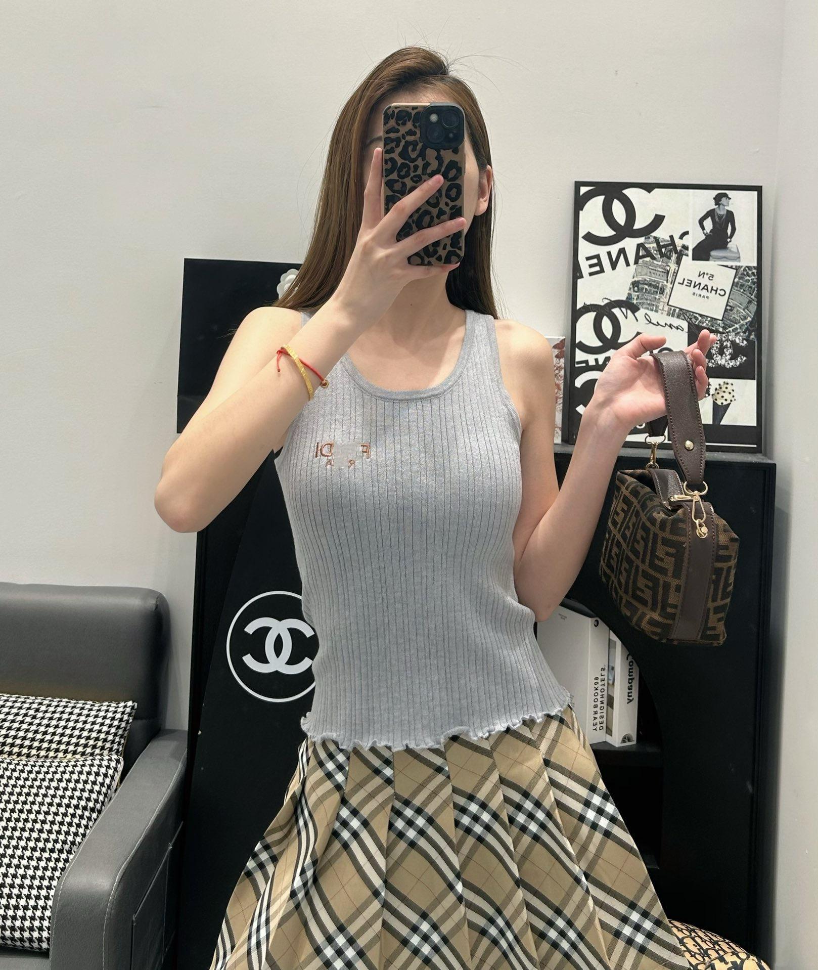 2025 Verano Nuevo Chaleco de Punto con Letras Bordadas Combinable Cómodo Ajustado Letra Alta Elasticidad Estilo Dulce Tirantes