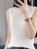 Primavera y Verano Nuevo Algodón Cuello Redondo Sisa Sin Mangas para Mujer Simple y Versátil Casual Tejido Camiseta Chaleco