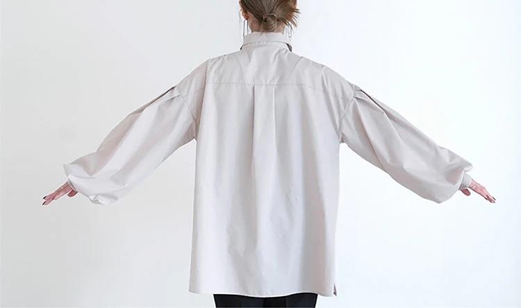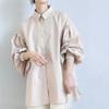 Camisa de manga farol de estilo japonés y coreano para principios de primavera, ropa para mujer, camisa ajustada de color liso que combina con todo.
