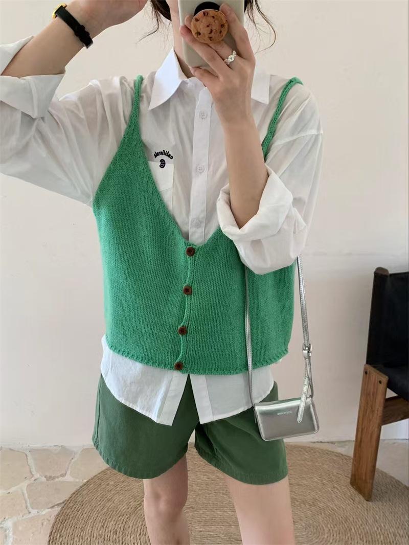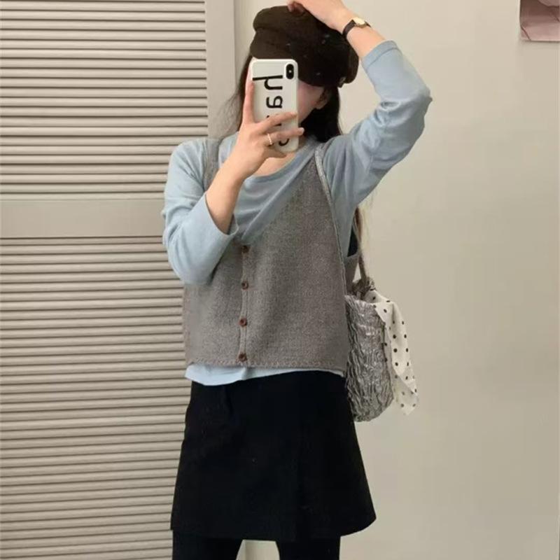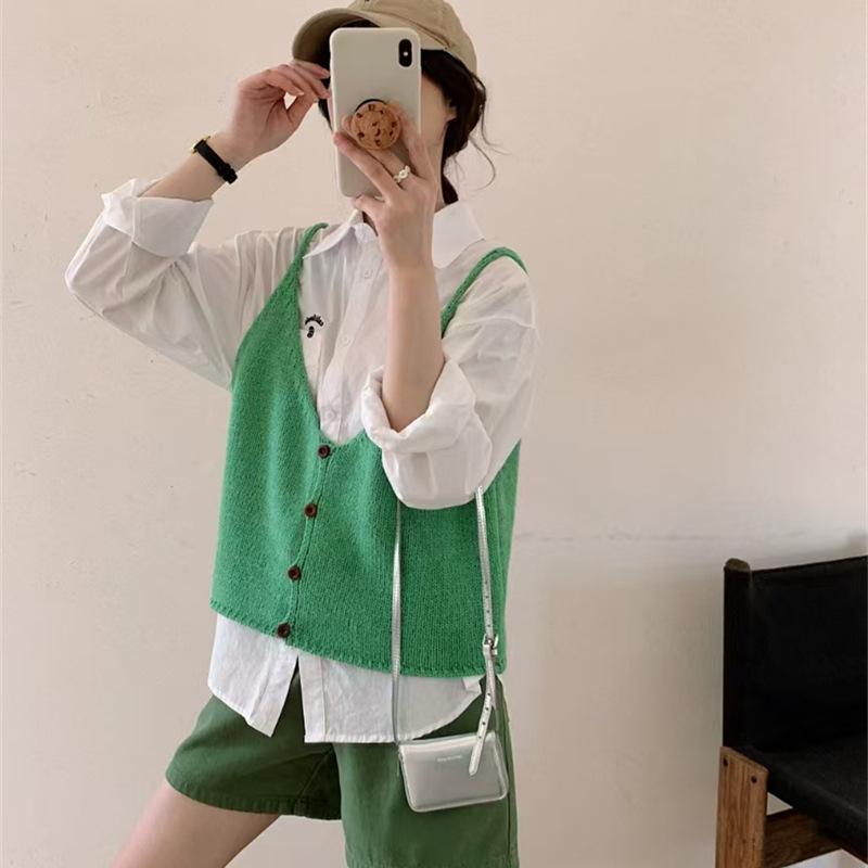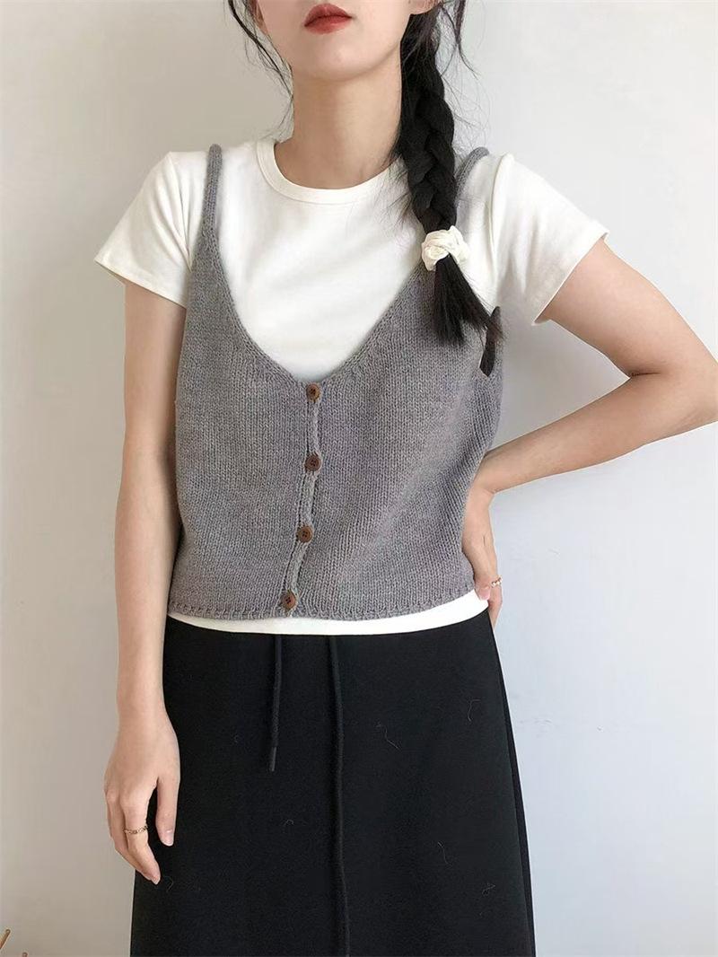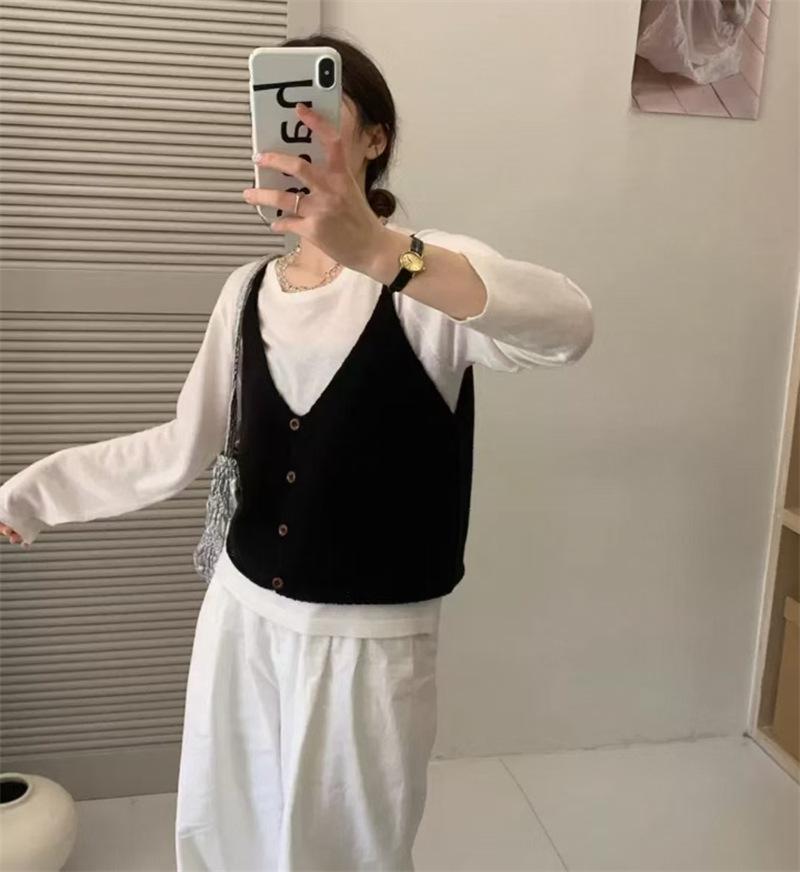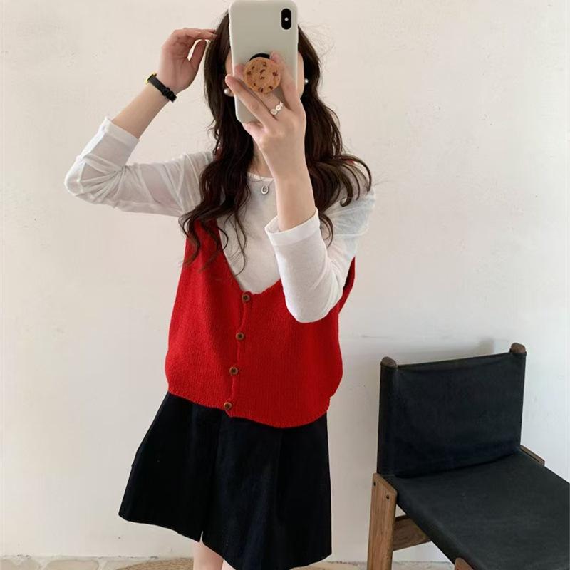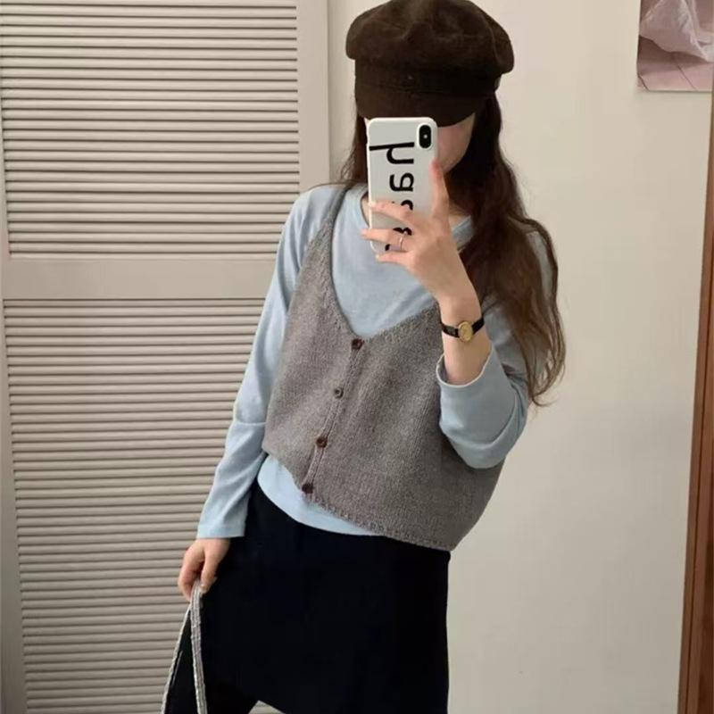 Chaleco de punto con cuello en V para mujer, estilo coreano, primavera 2025, apilado, antiedad, estilo Joker