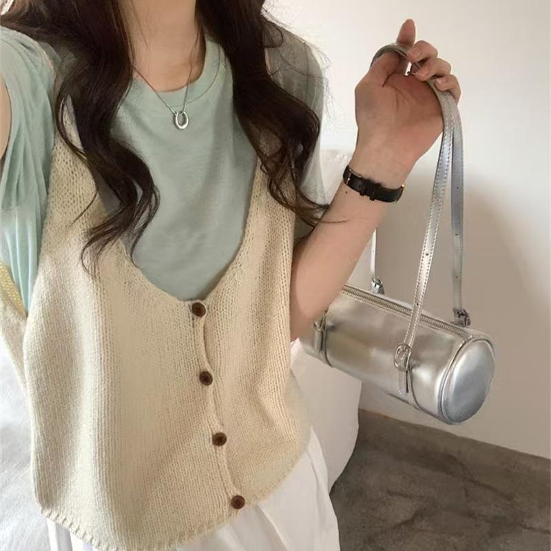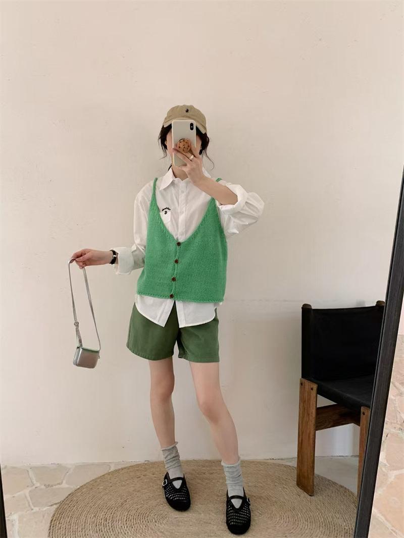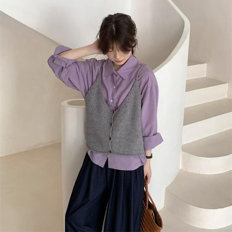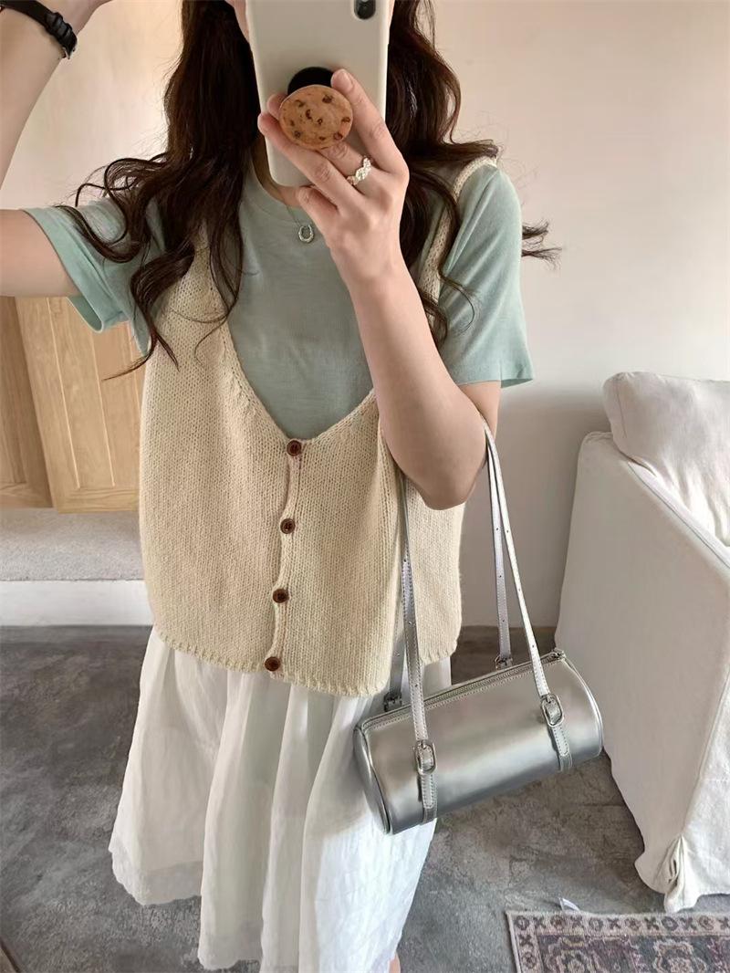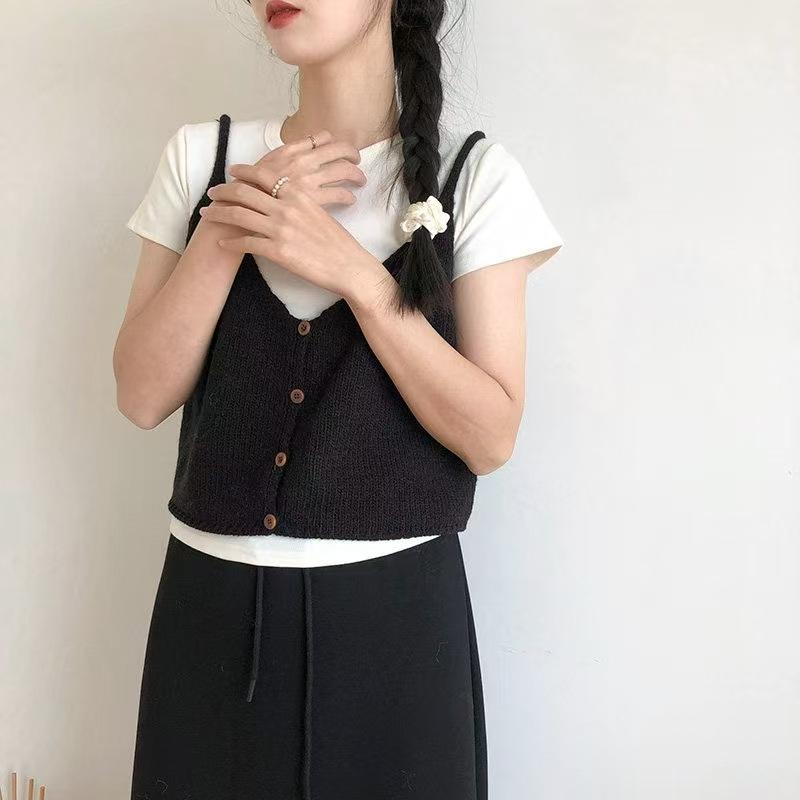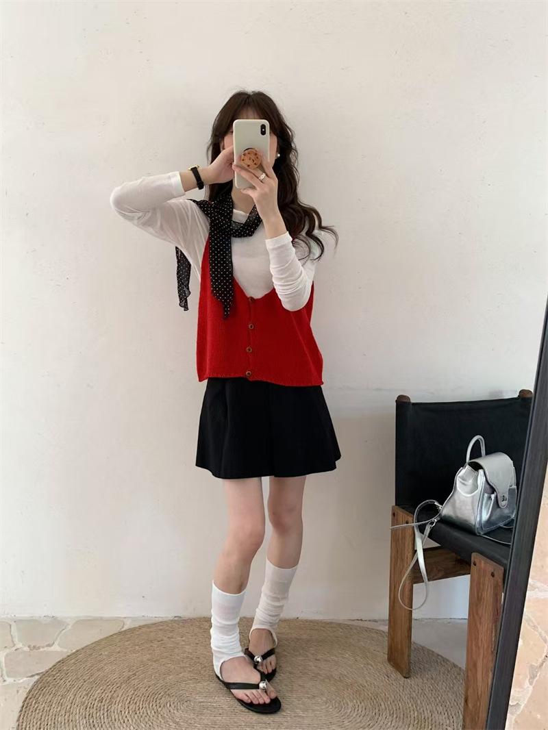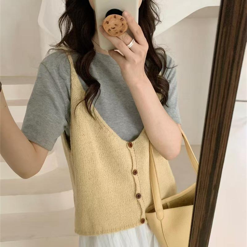 Chaleco de punto con cuello en V para mujer, estilo coreano, primavera 2025, apilado, antiedad, estilo Joker