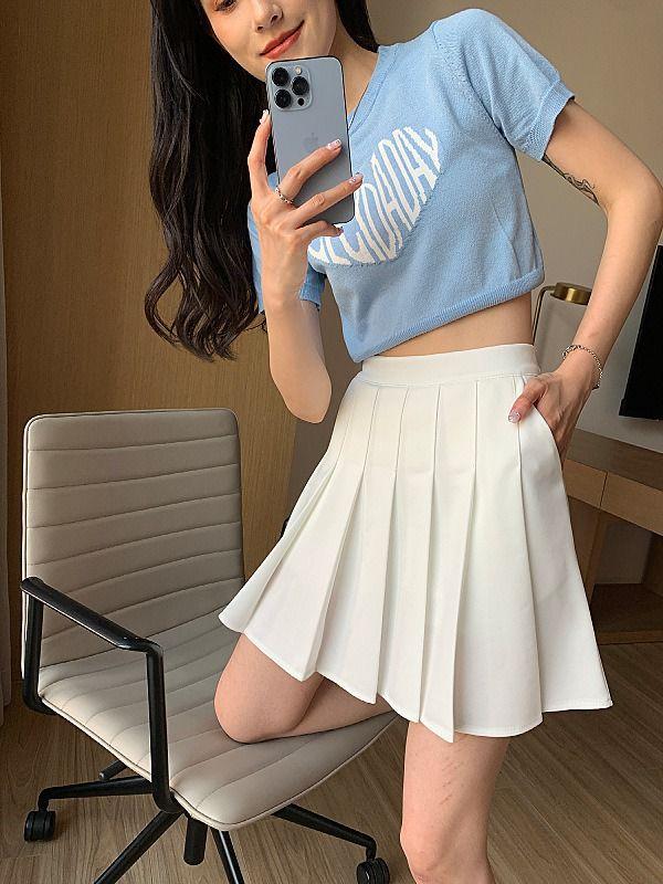 Falda plisada de primavera y verano, falda JK, estilo académico, falda elástica de cintura alta para mujer, talla grande, para chica gordita, falda adelgazante que cubre la cadera, falda de línea A
