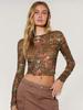 Camiseta de Malla Redonda con Estampado de Leopardo y Flores, Manga Corta/Larga, Nueva de Primavera 2026, Transfronteriza Europea y Americana para Mujer