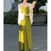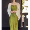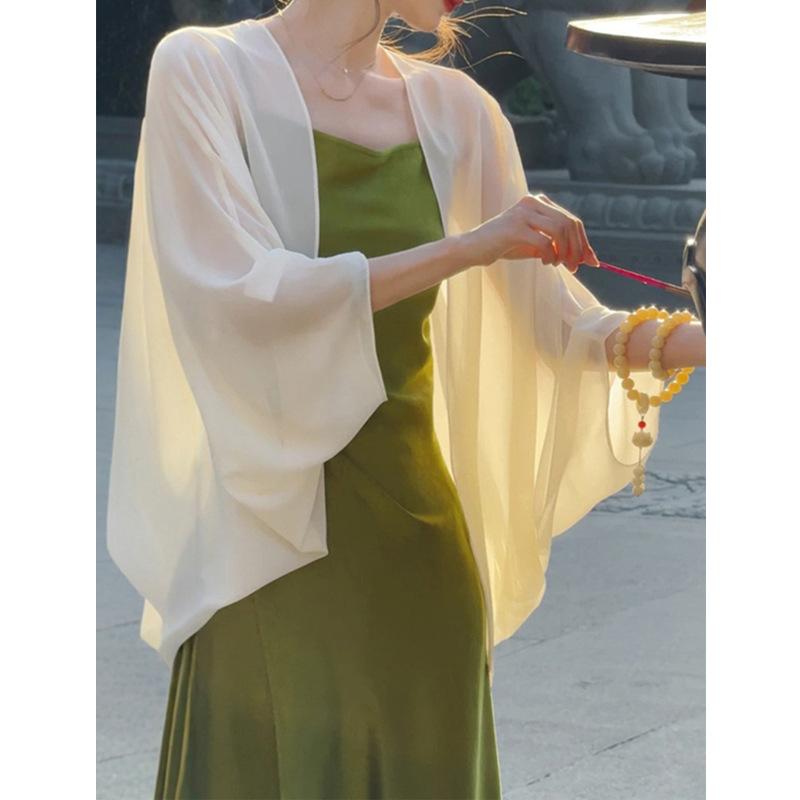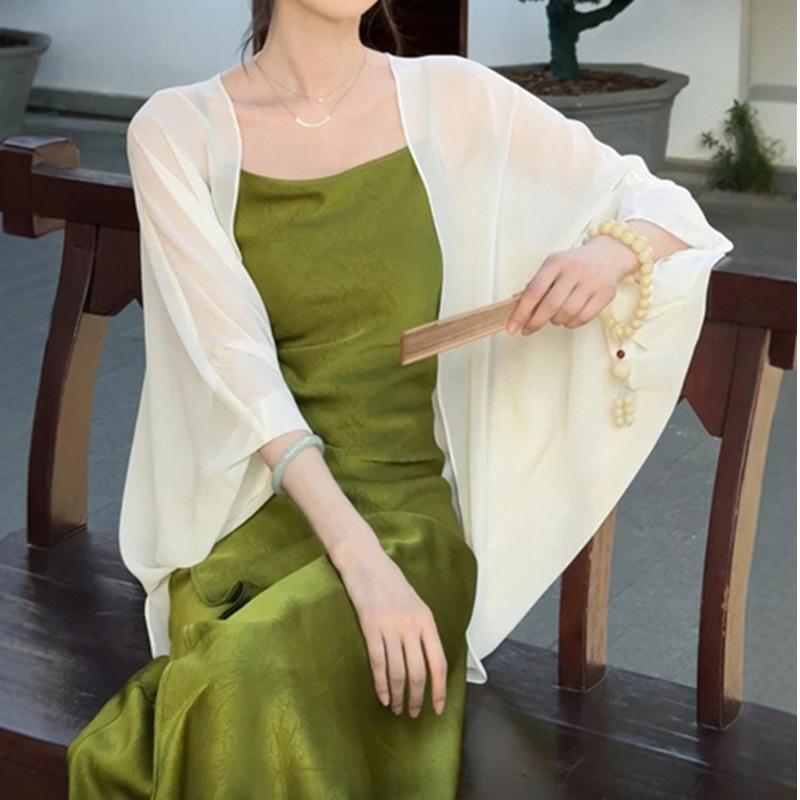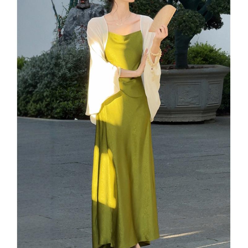 Vestido elegante de alta gama Light Guofeng con tirantes y protector solar, chal tipo cárdigan, traje para mujer, verano 2025, dos piezas, nuevo estilo chino