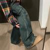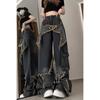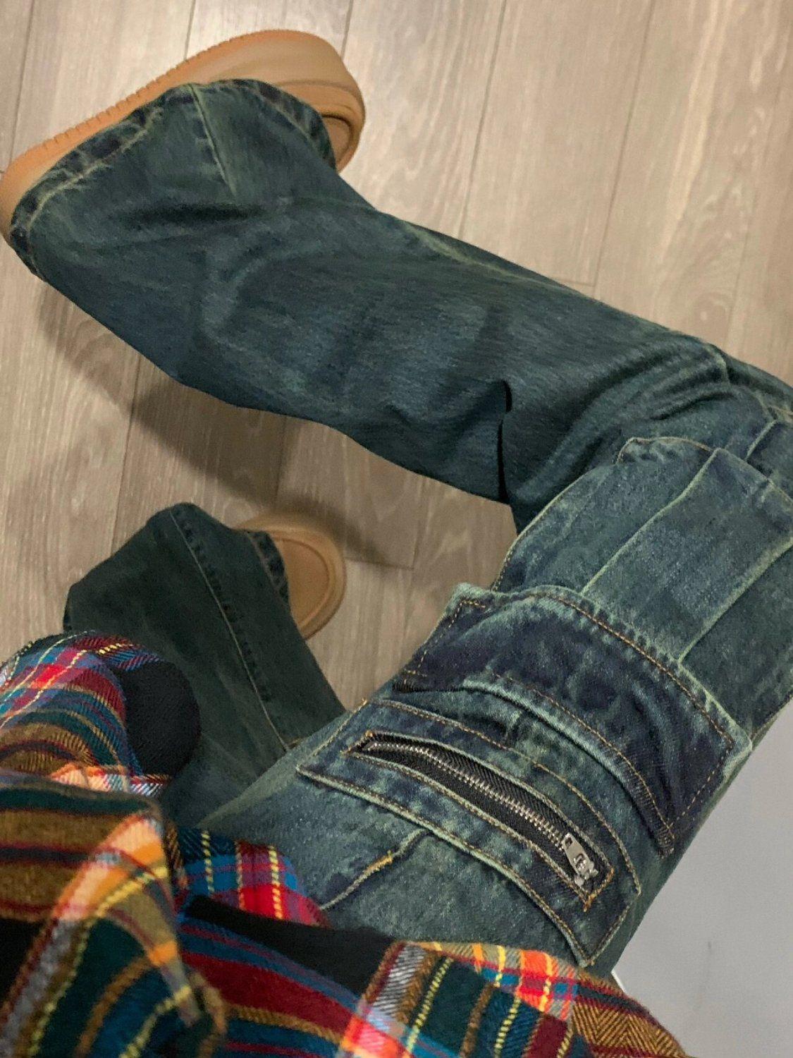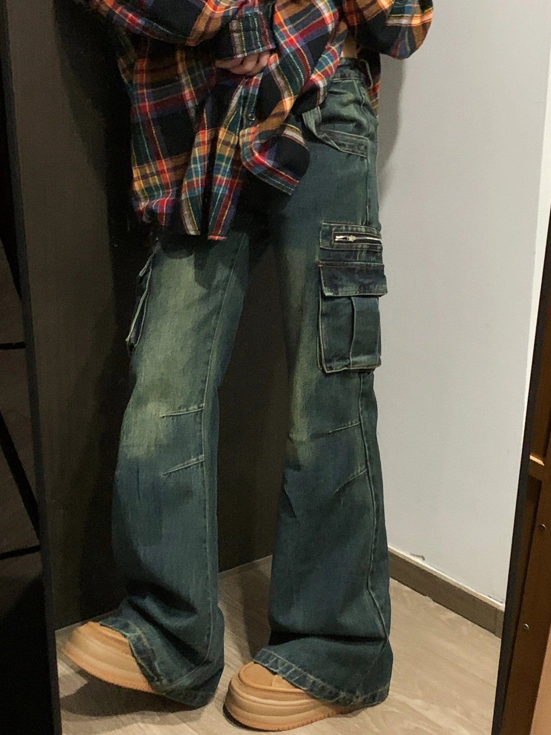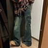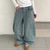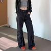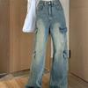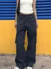 Pantalones vaqueros retro multibolsillos estilo americano para mujer, de cintura baja, estilo urbano, holgados, rectos, de pierna ancha y micro acampanados.