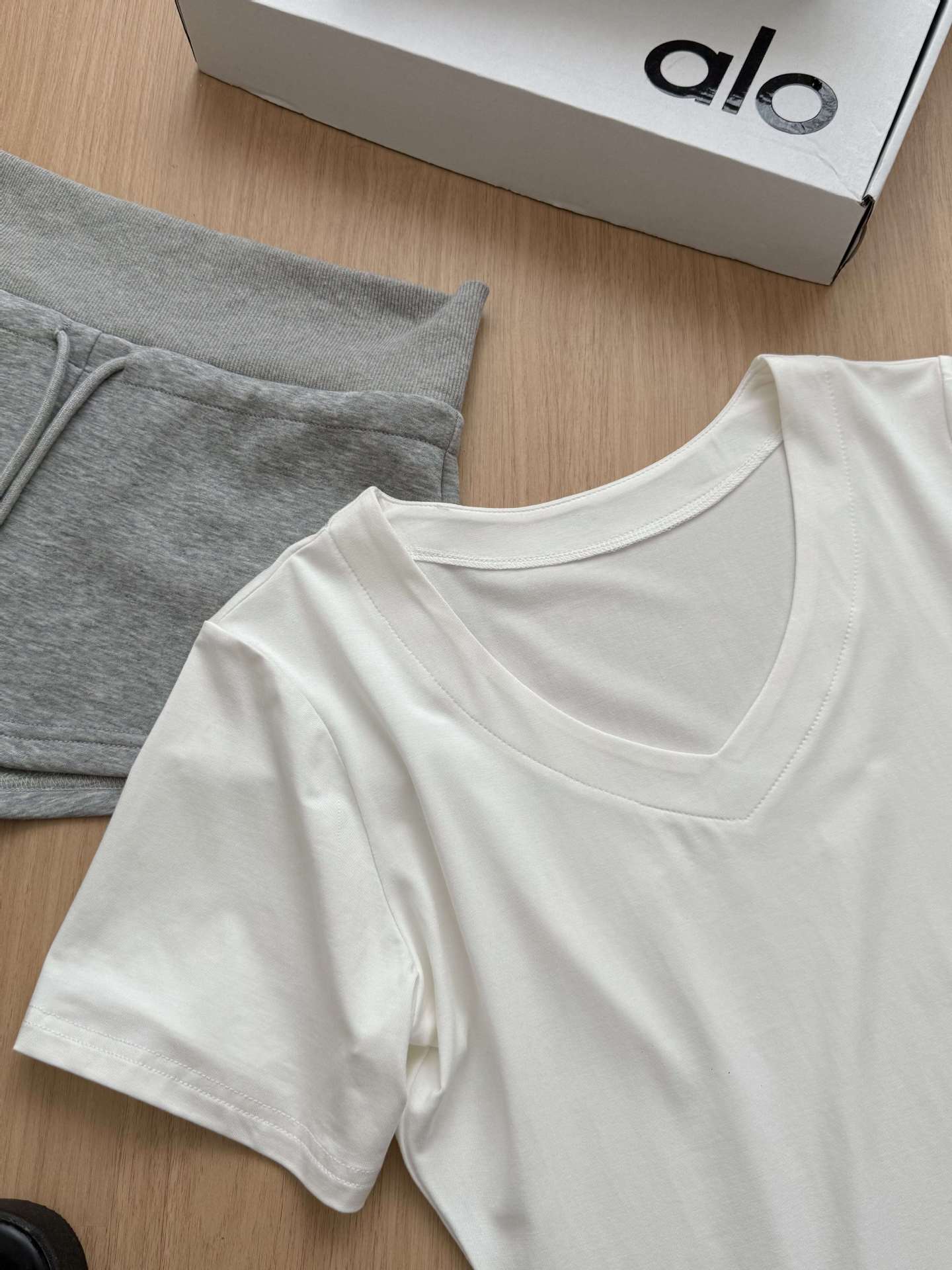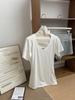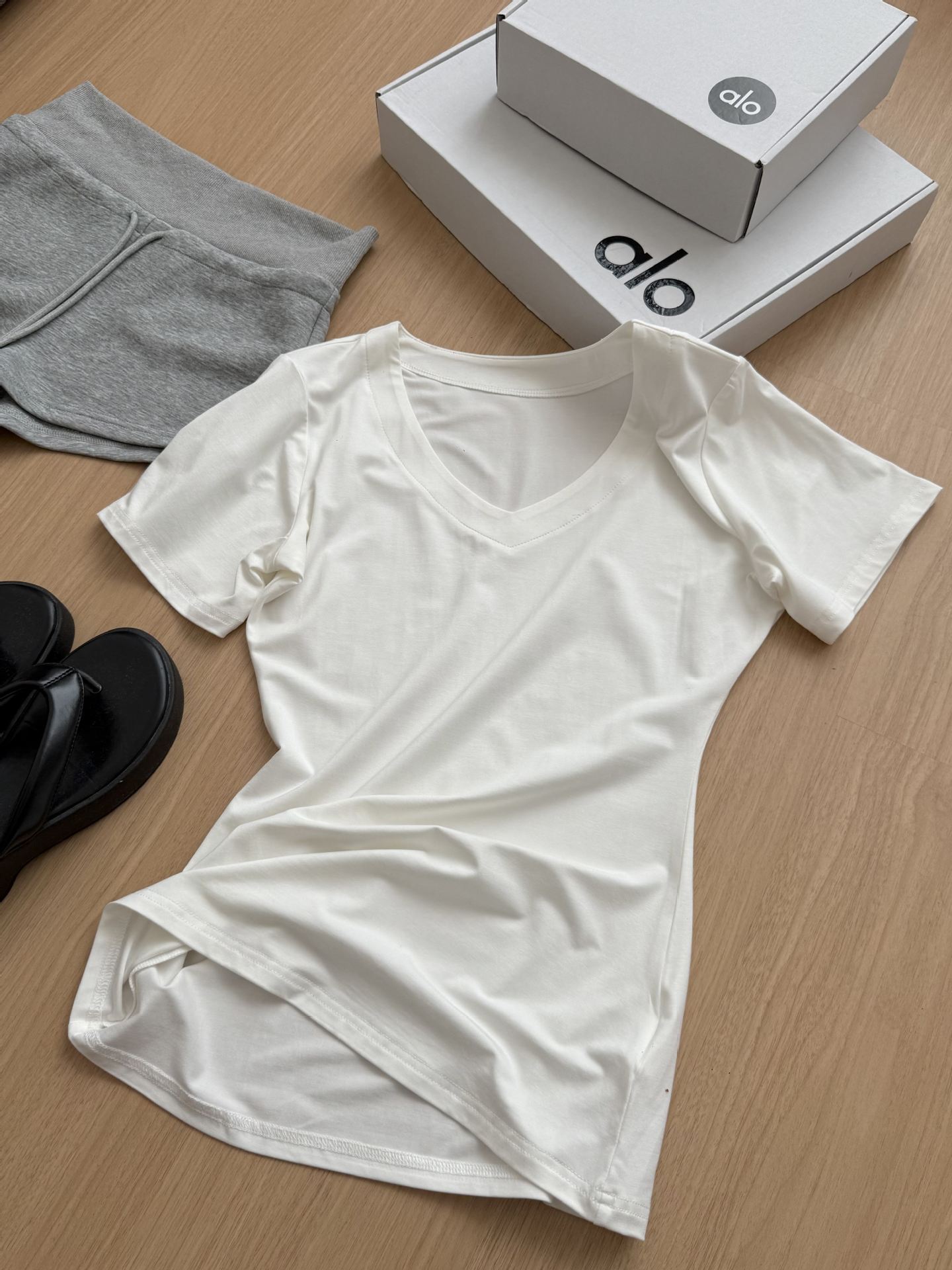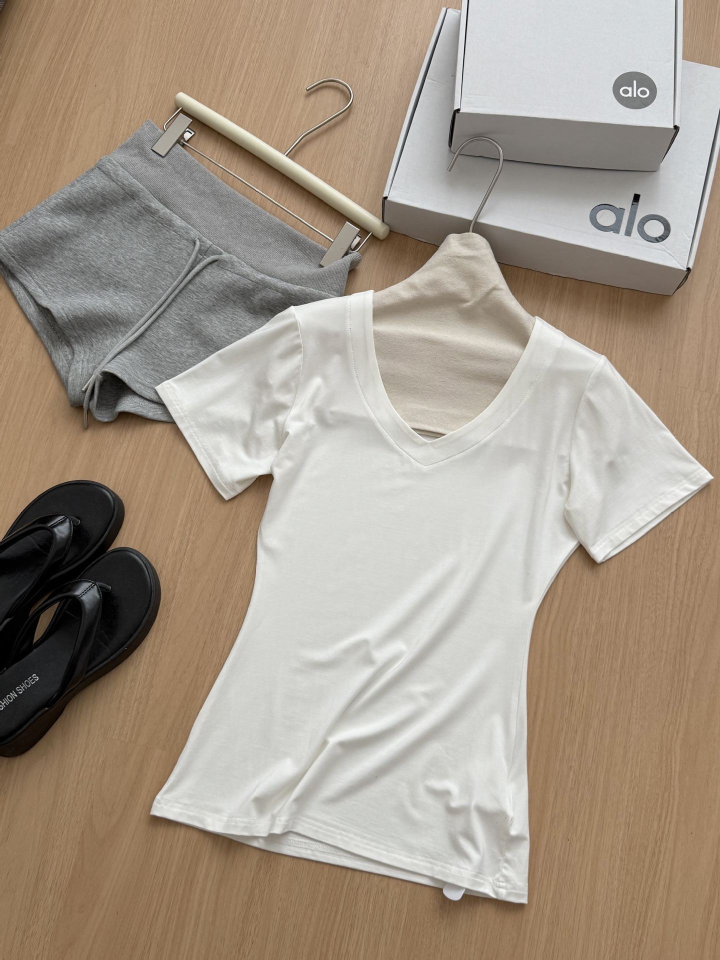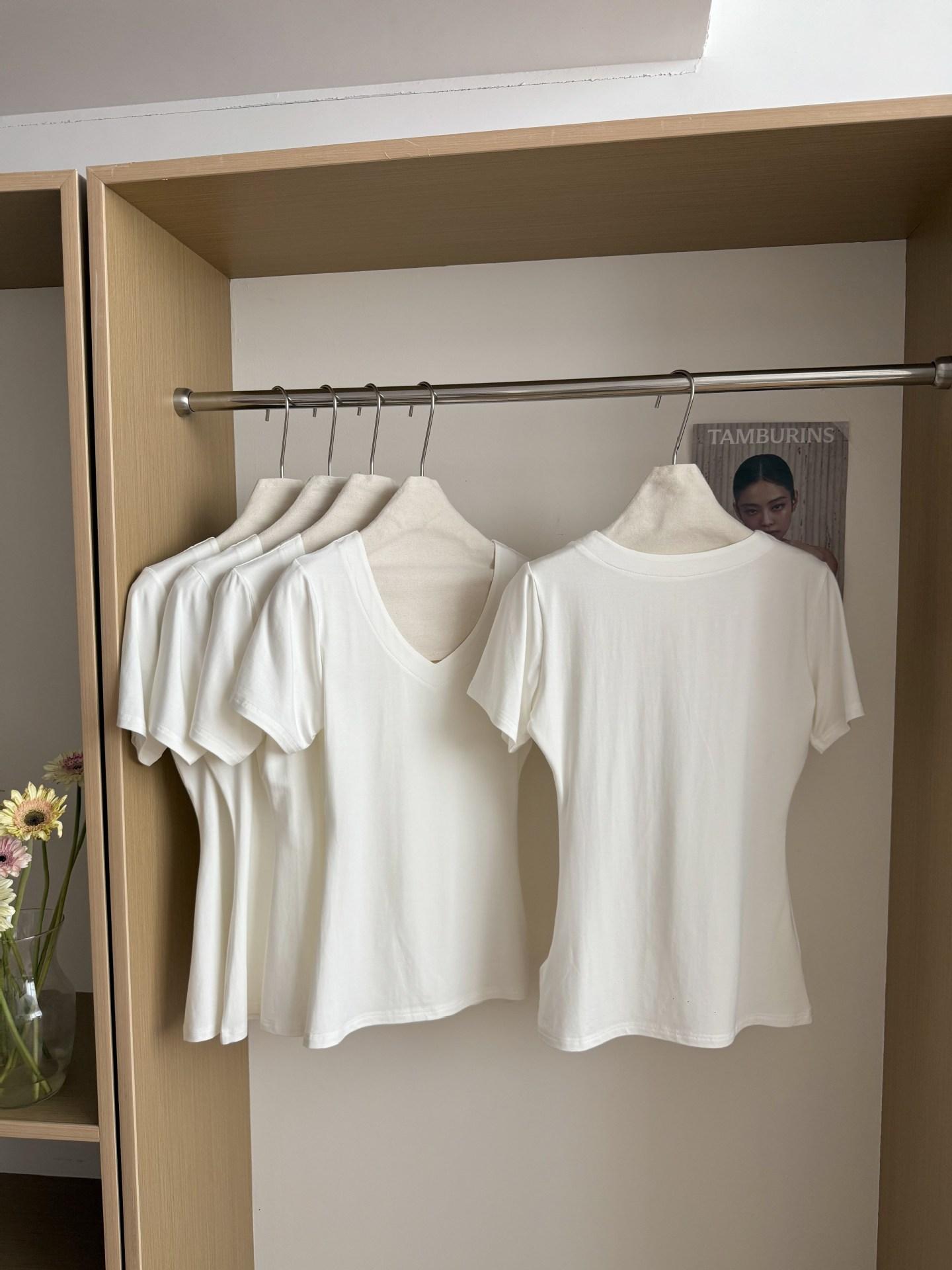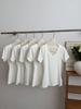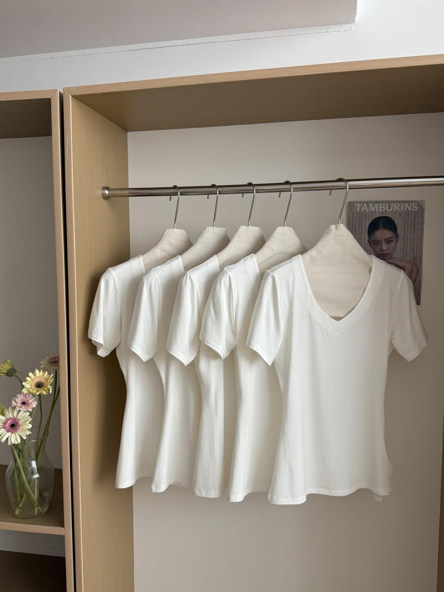 Camiseta básica de verano para mujer, de manga corta, versátil, con escote en V puro y cintura ajustada que adelgaza los hombros delanteros.
