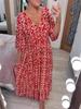 Vestido Largo Casual Estampado con Cuello en V, Elegante y de Alta Gama 2025 Verano Transfronterizo Falda de Lujo Ligero Súper de Hada