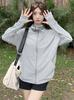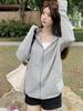 Chaqueta de protección solar con capucha para mujer, fina, transpirable, de manga larga, de verano, de seda helada, holgada, tipo cárdigan.