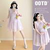 Vestido de maternidad de verano 2025, nuevo, de gasa suelta, de dos piezas, con costuras teñidas y efecto teñido anudado, para embarazadas.