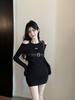 Diseño decorativo tridimensional Sensación de temperamento Puro Deseo Delgado Espalda descubierta Falda de cadera Cuello Flor Moda Vestido de chica sexy
