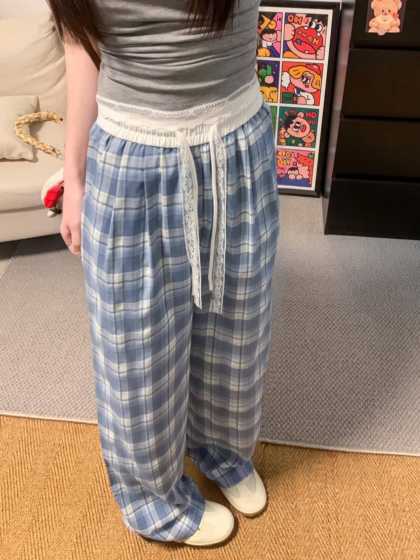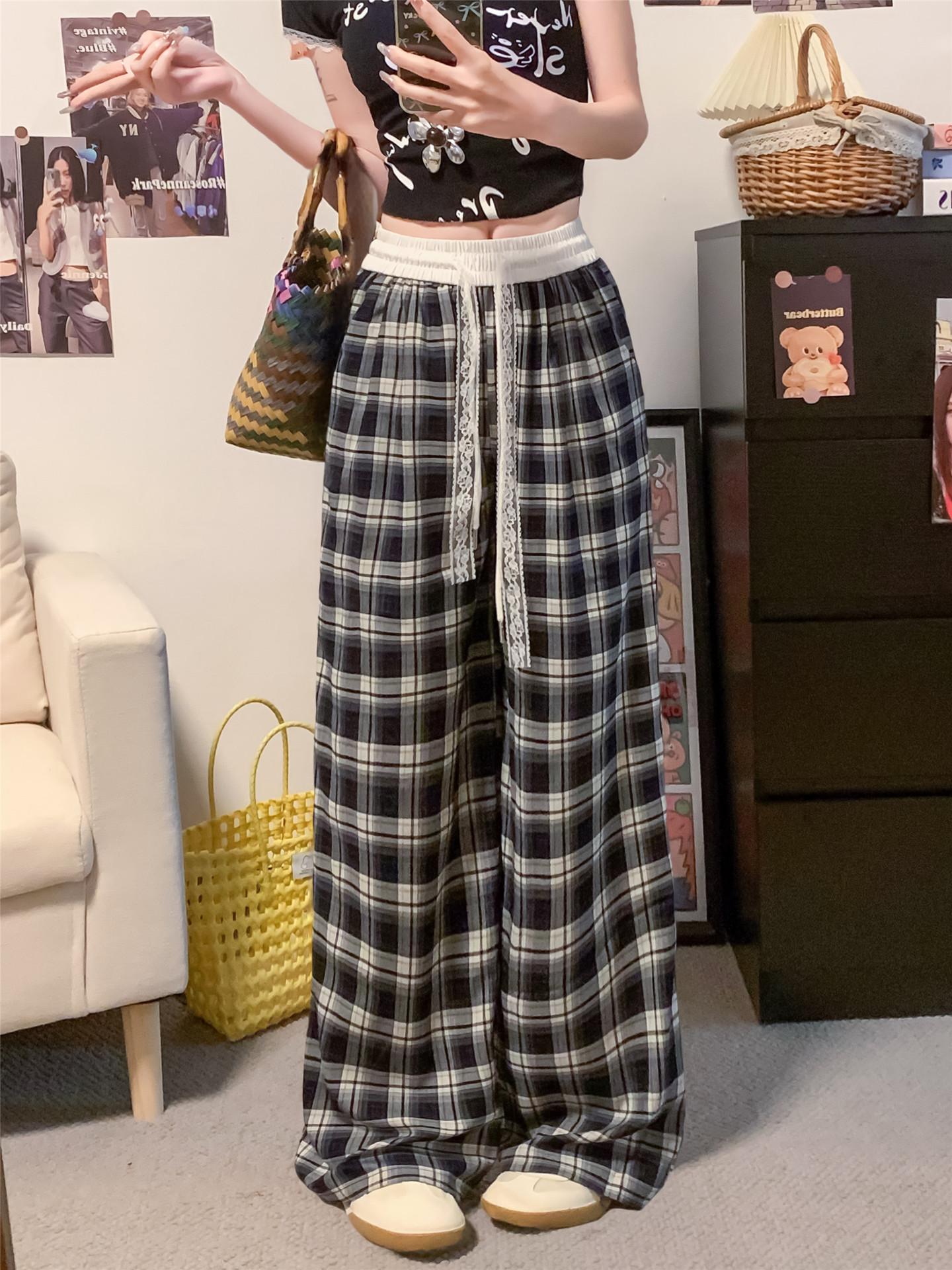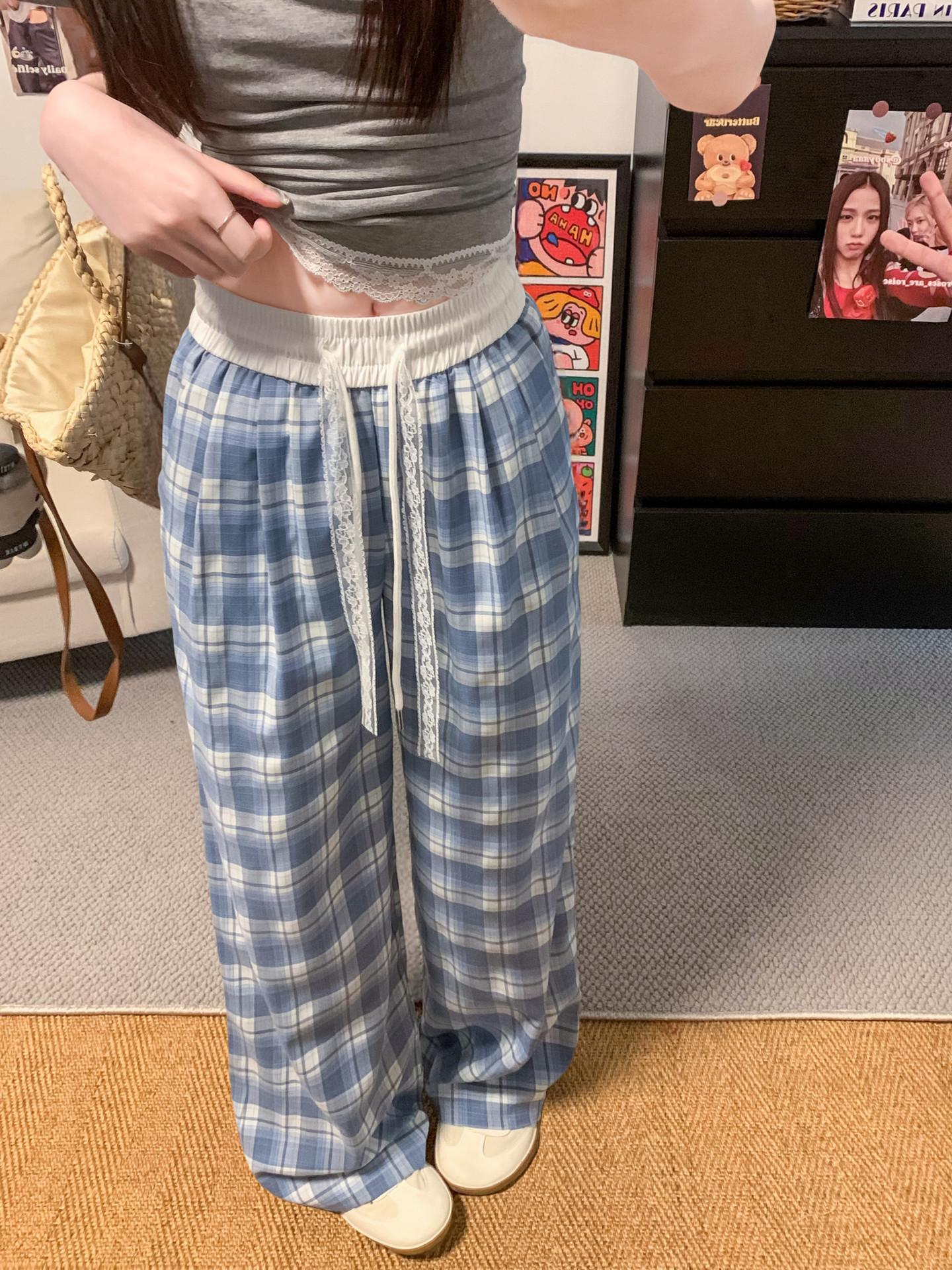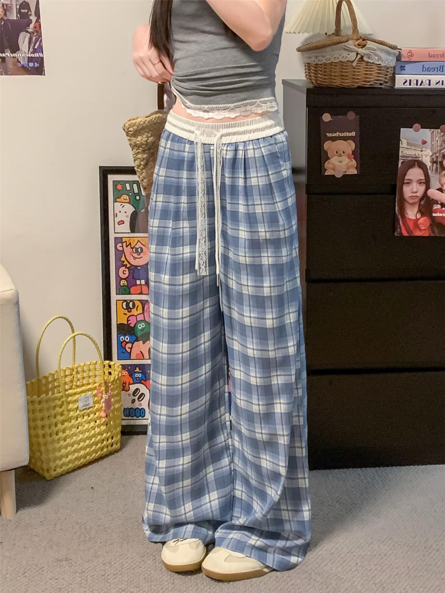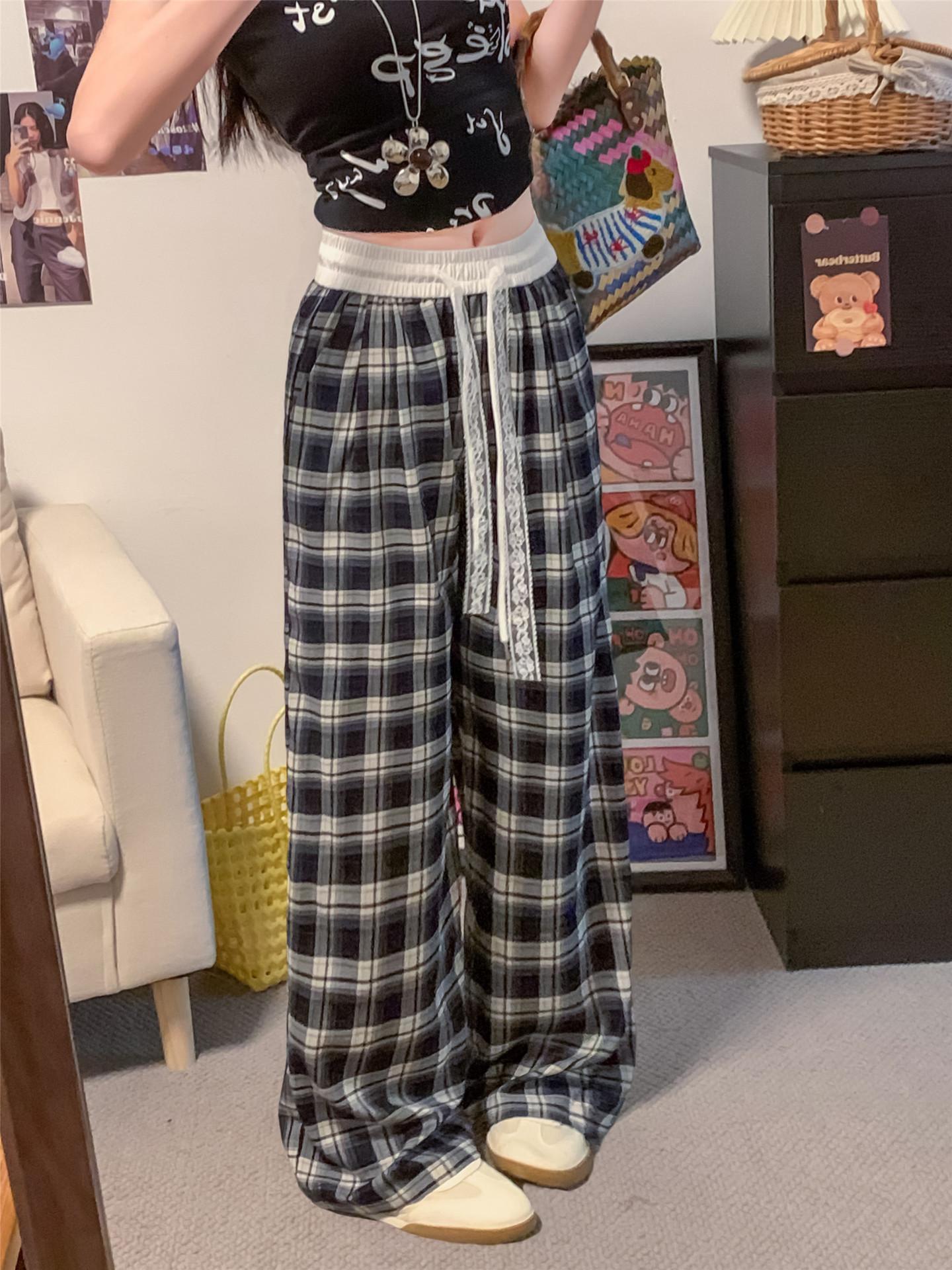 Pantalones Casuales Patchwork Estilo Holgazán para Mujer 2025 Primavera Nuevo Cintura Alta Sueltos Cordón Encaje Pierna Ancha Pantalones Largos