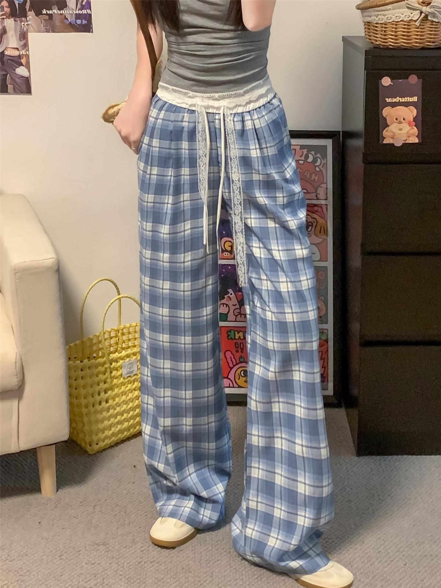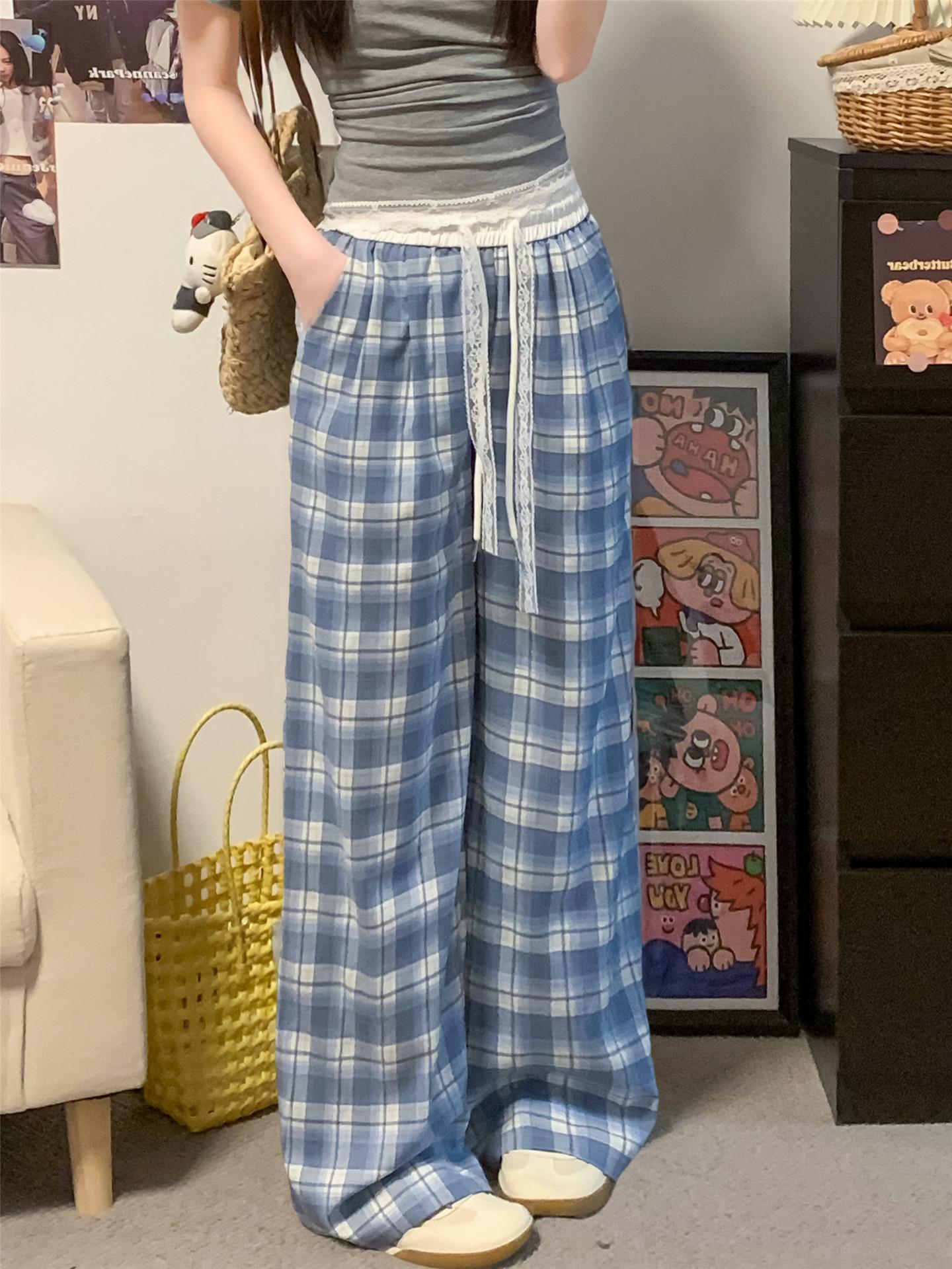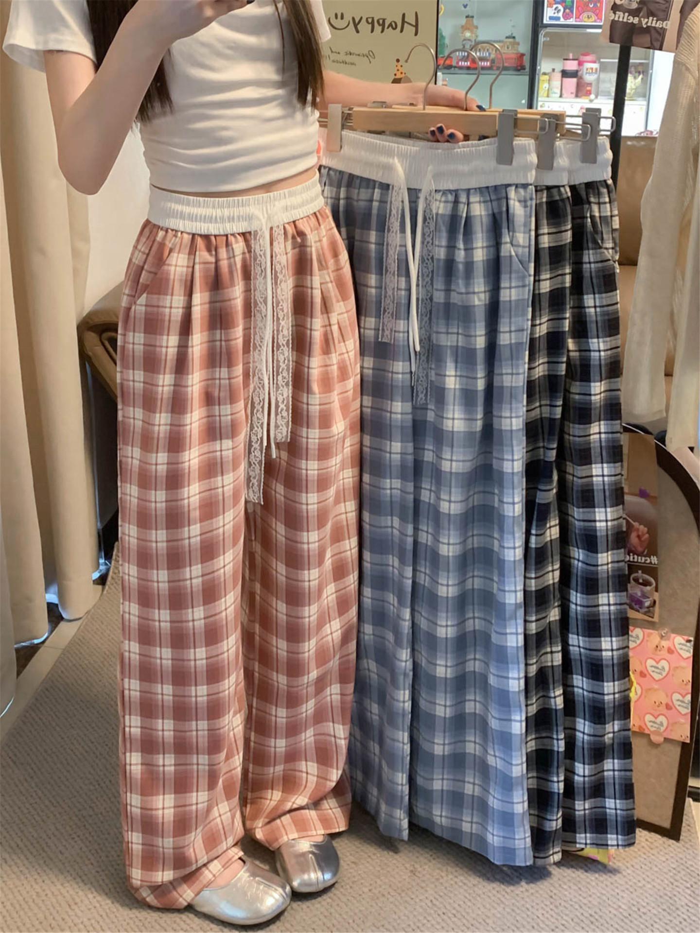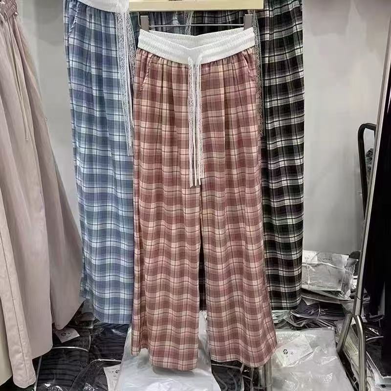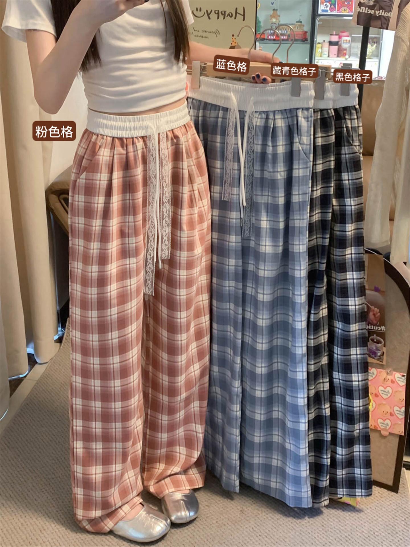 Pantalones Casuales Patchwork Estilo Holgazán para Mujer 2025 Primavera Nuevo Cintura Alta Sueltos Cordón Encaje Pierna Ancha Pantalones Largos