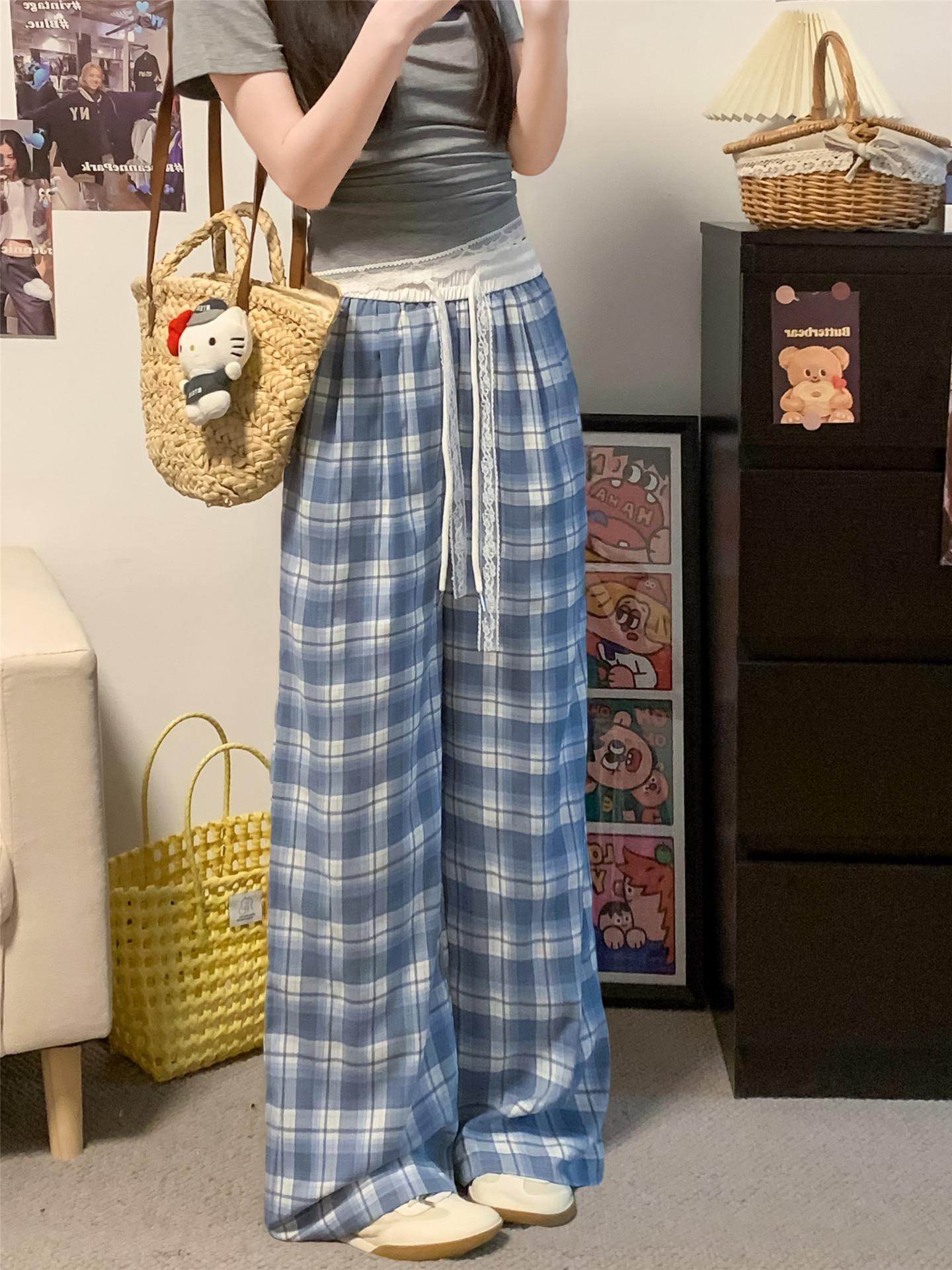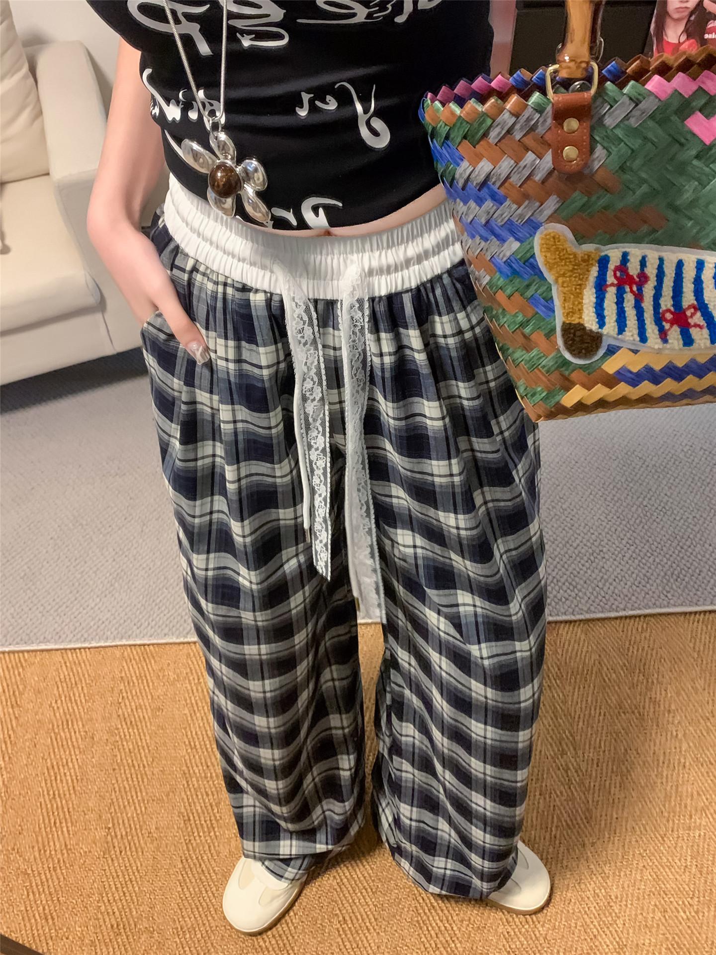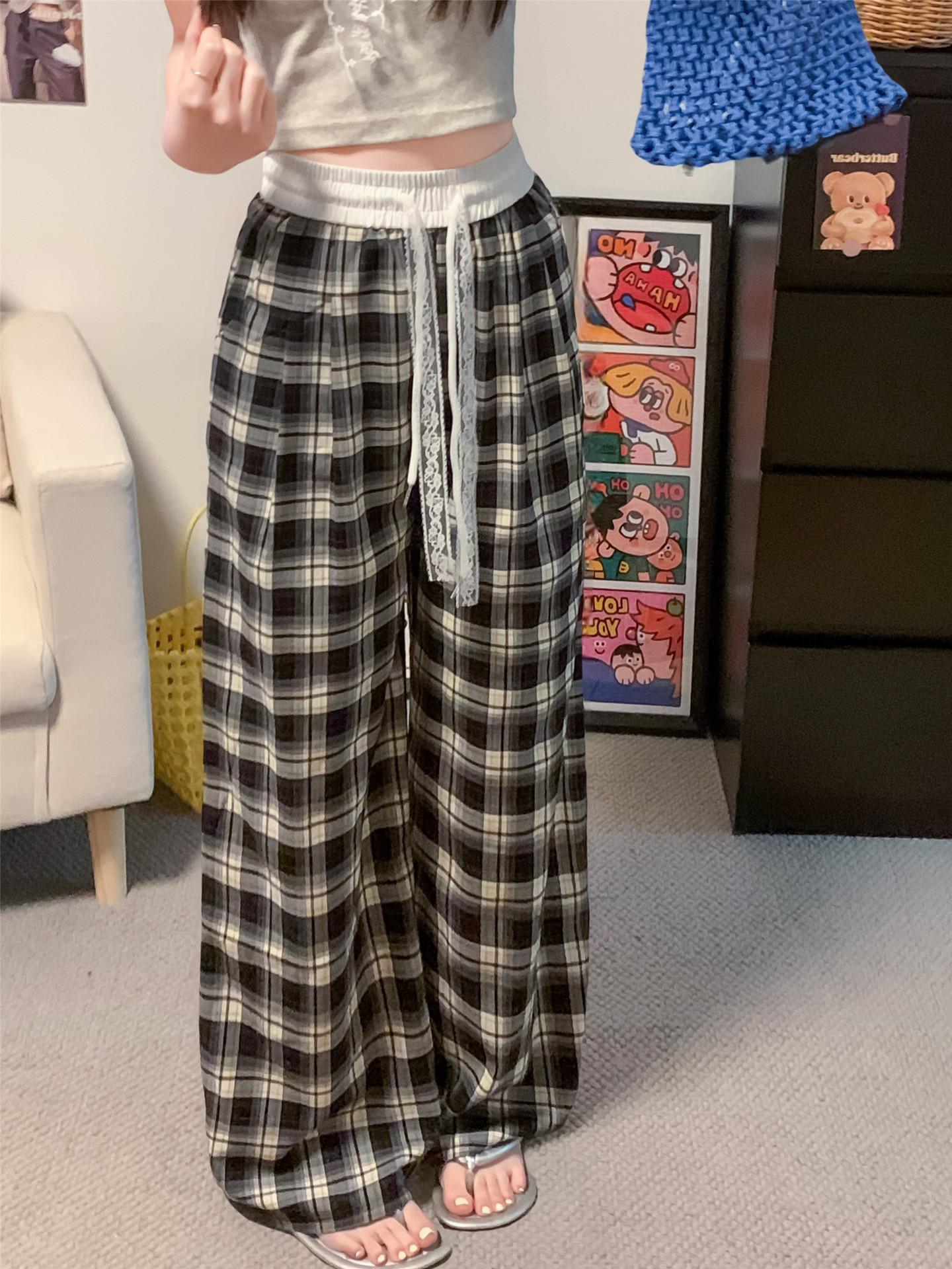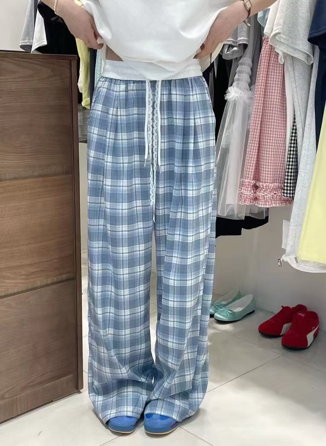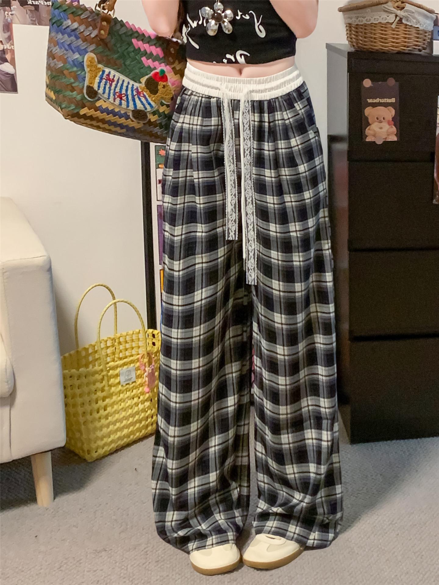 Pantalones Casuales Patchwork Estilo Holgazán para Mujer 2025 Primavera Nuevo Cintura Alta Sueltos Cordón Encaje Pierna Ancha Pantalones Largos