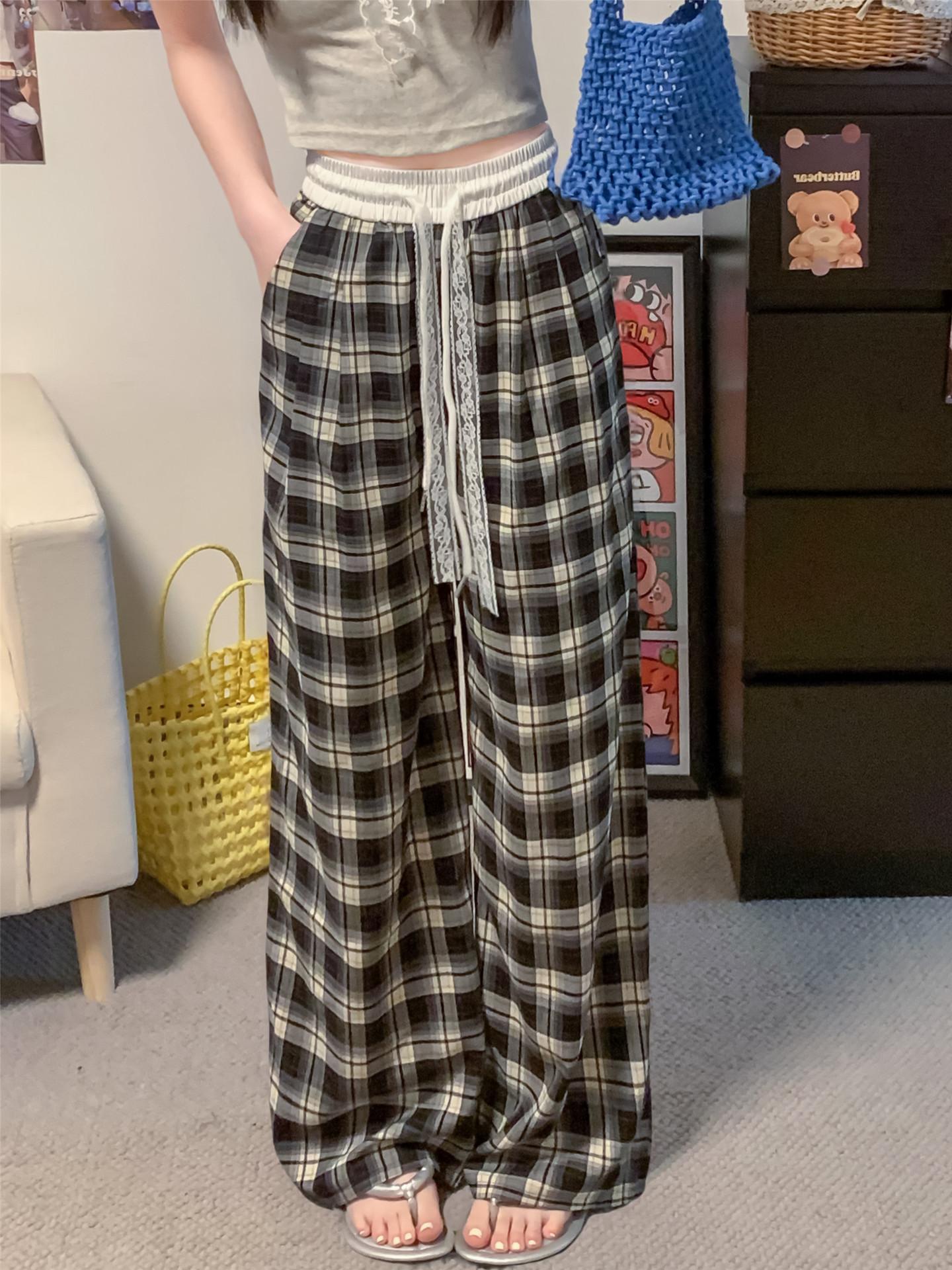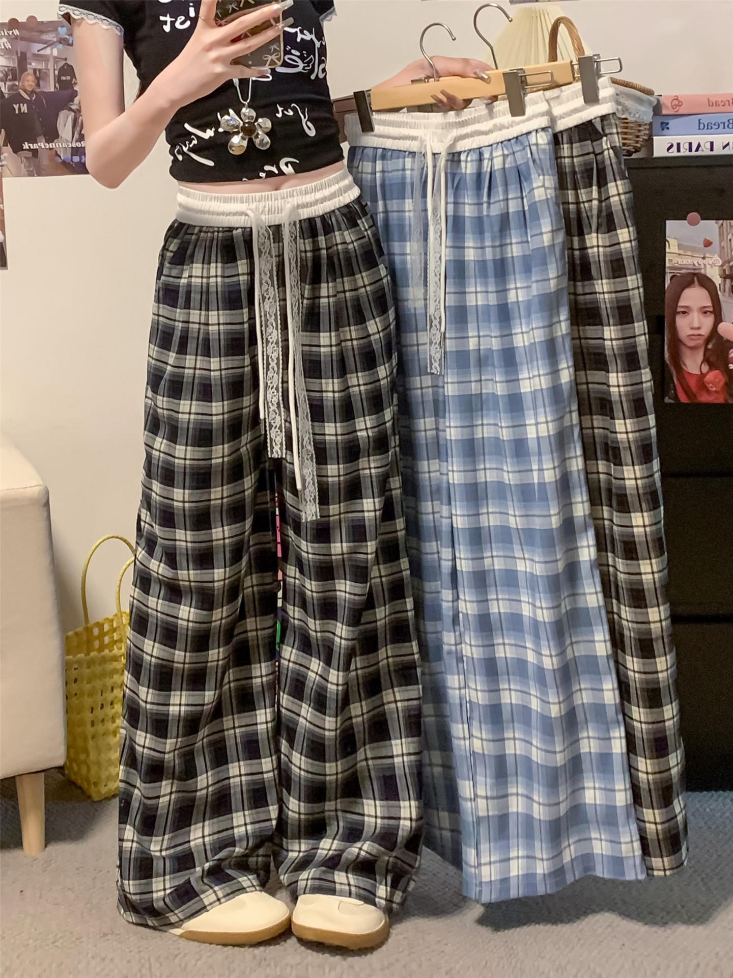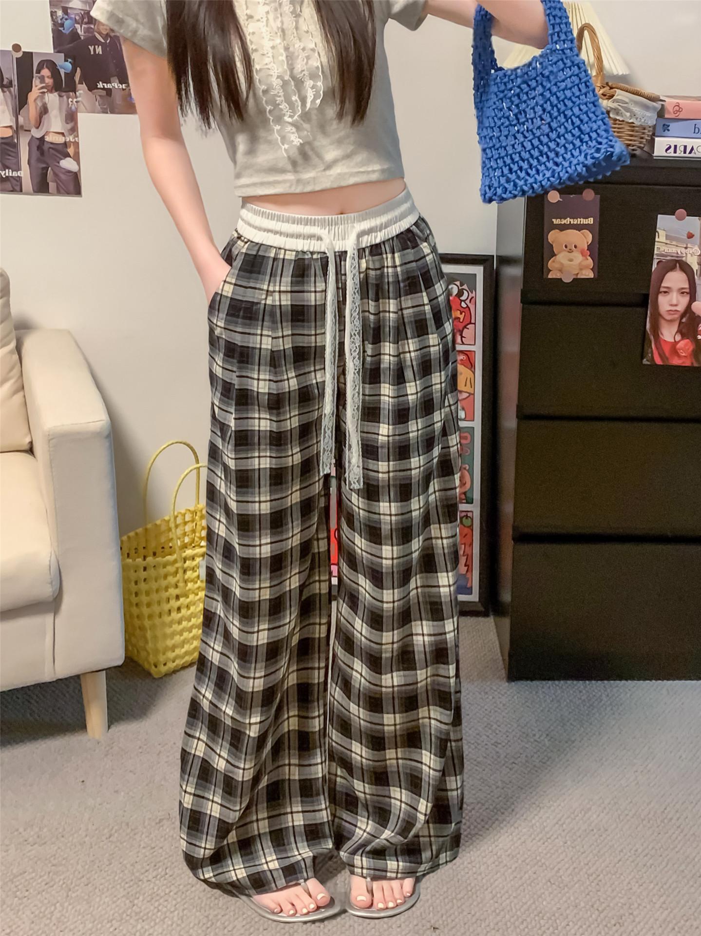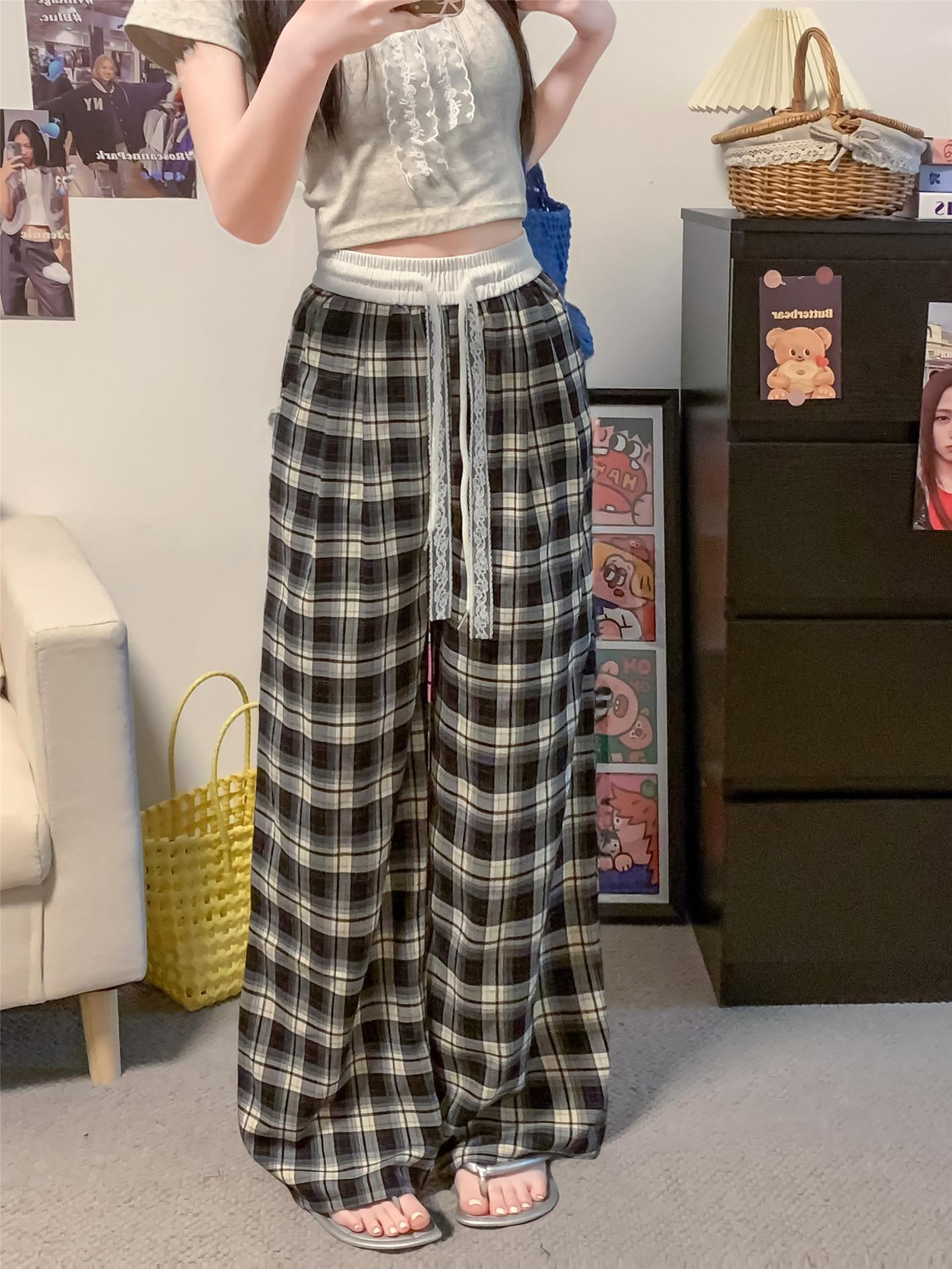 Pantalones Casuales Patchwork Estilo Holgazán para Mujer 2025 Primavera Nuevo Cintura Alta Sueltos Cordón Encaje Pierna Ancha Pantalones Largos