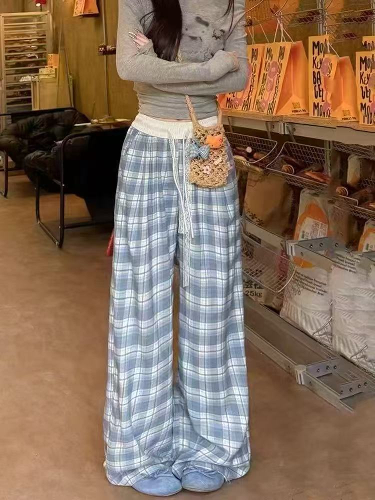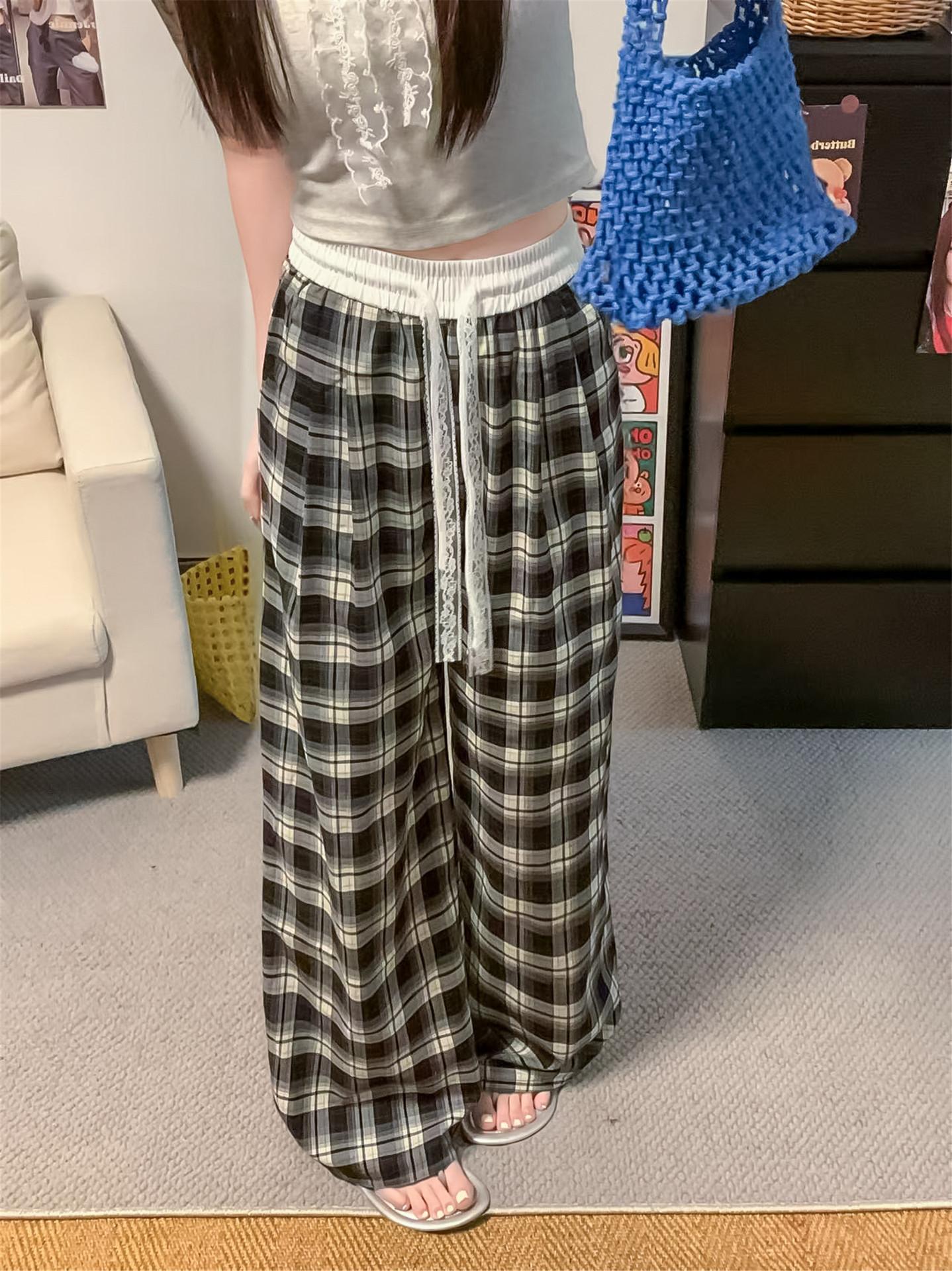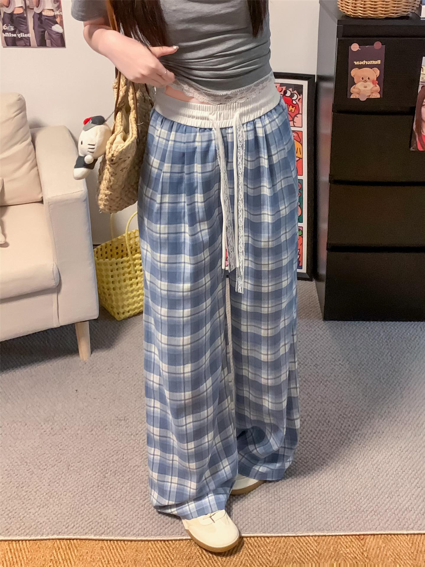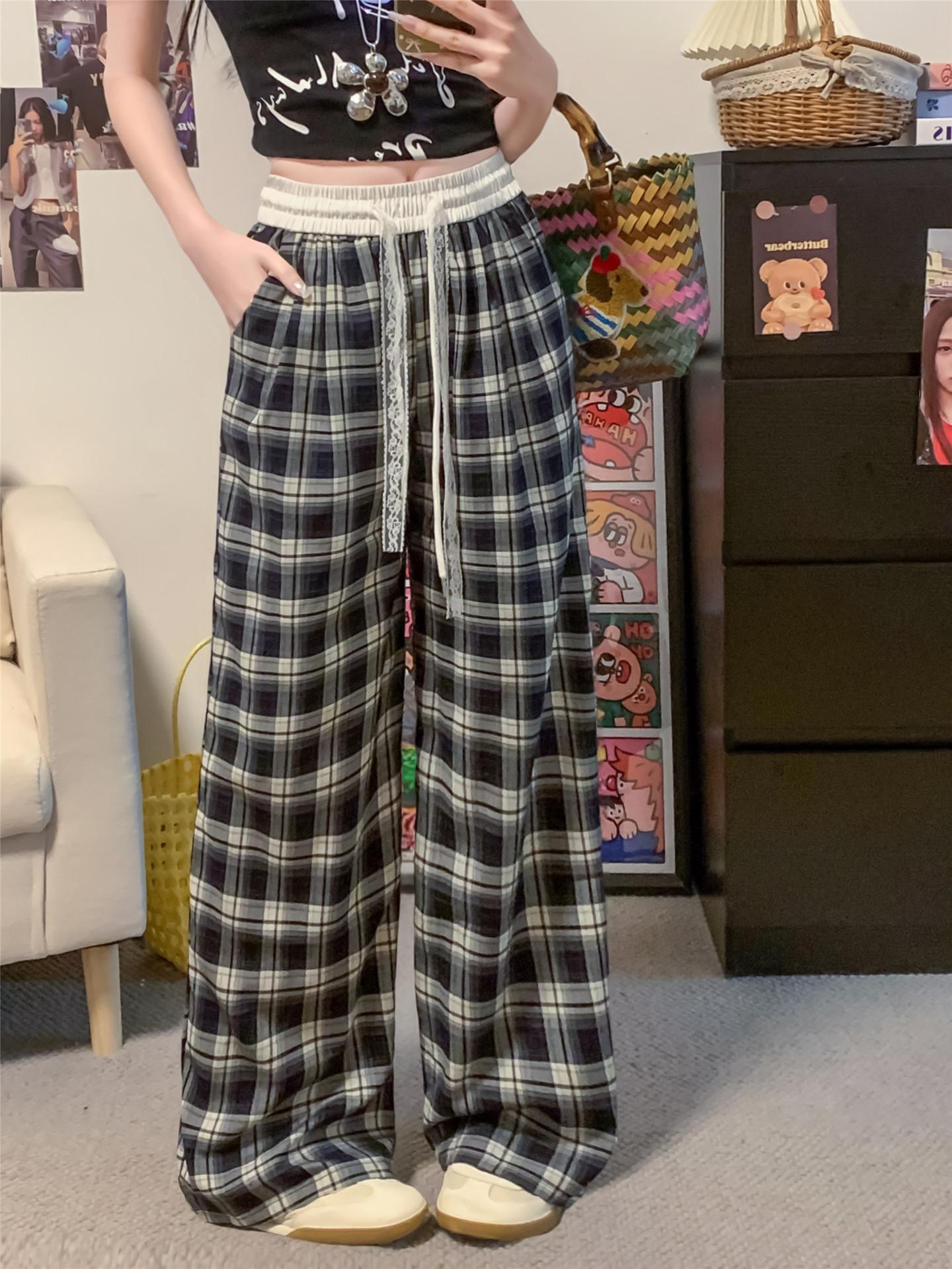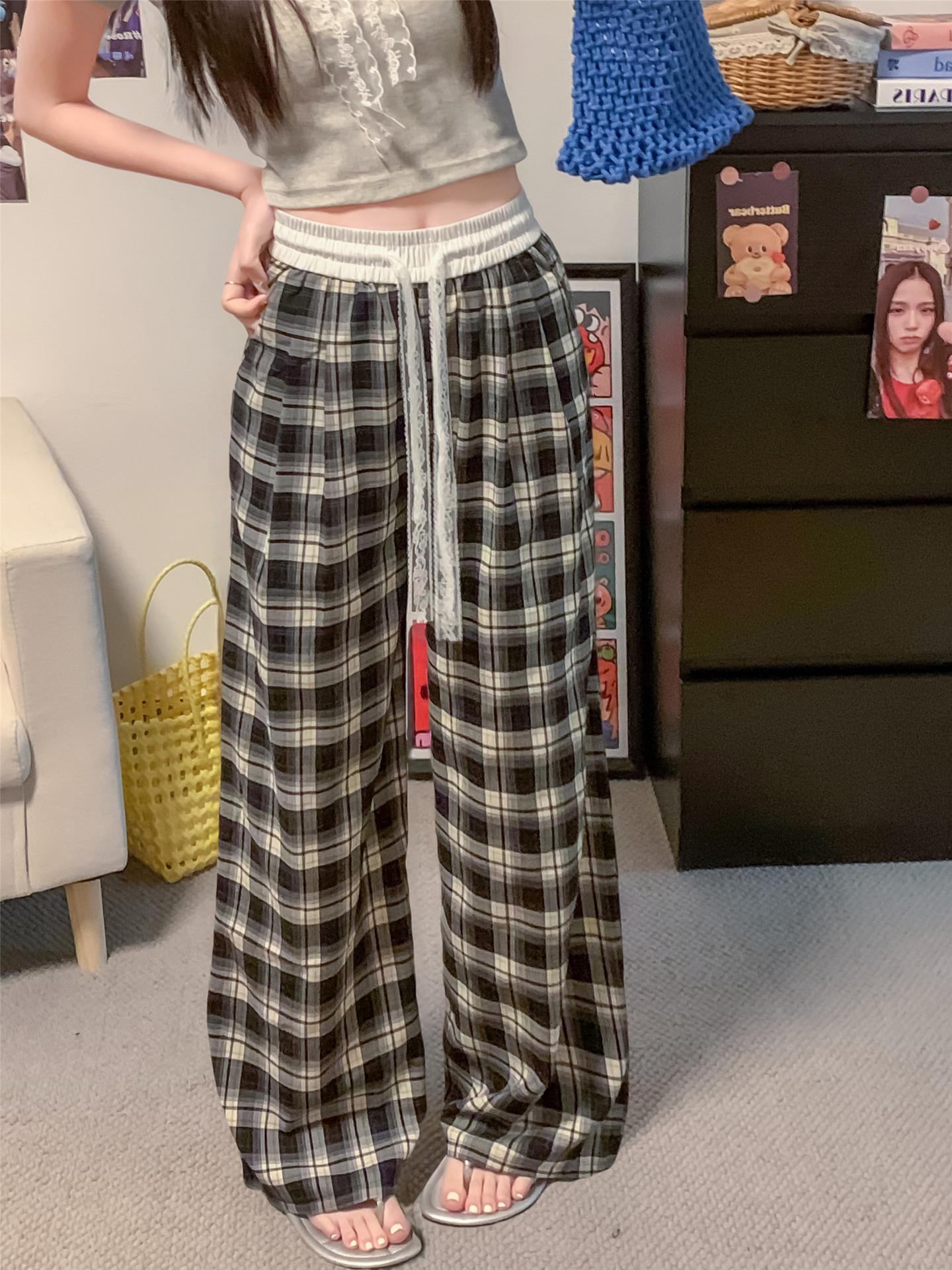 Pantalones Casuales Patchwork Estilo Holgazán para Mujer 2025 Primavera Nuevo Cintura Alta Sueltos Cordón Encaje Pierna Ancha Pantalones Largos