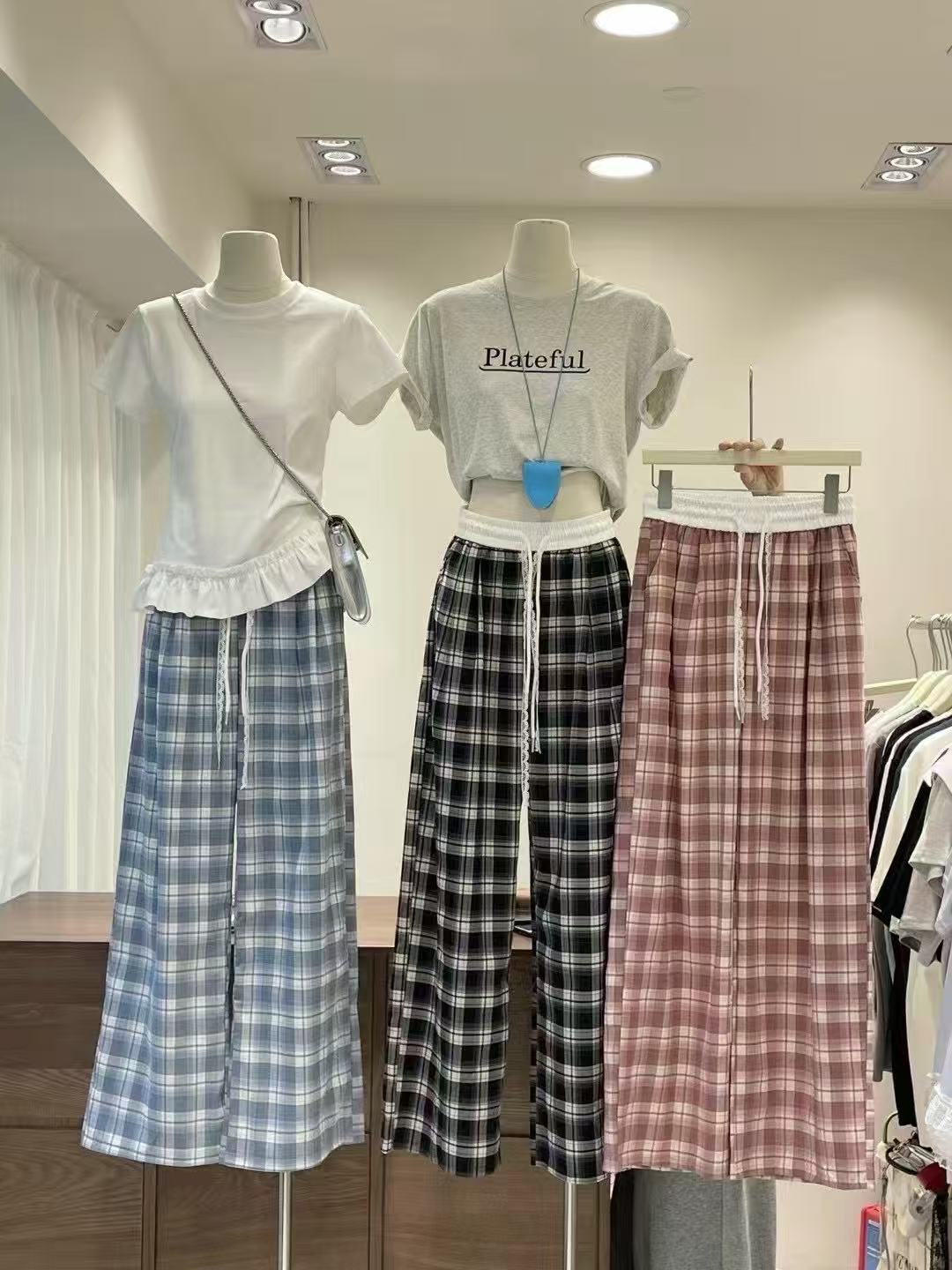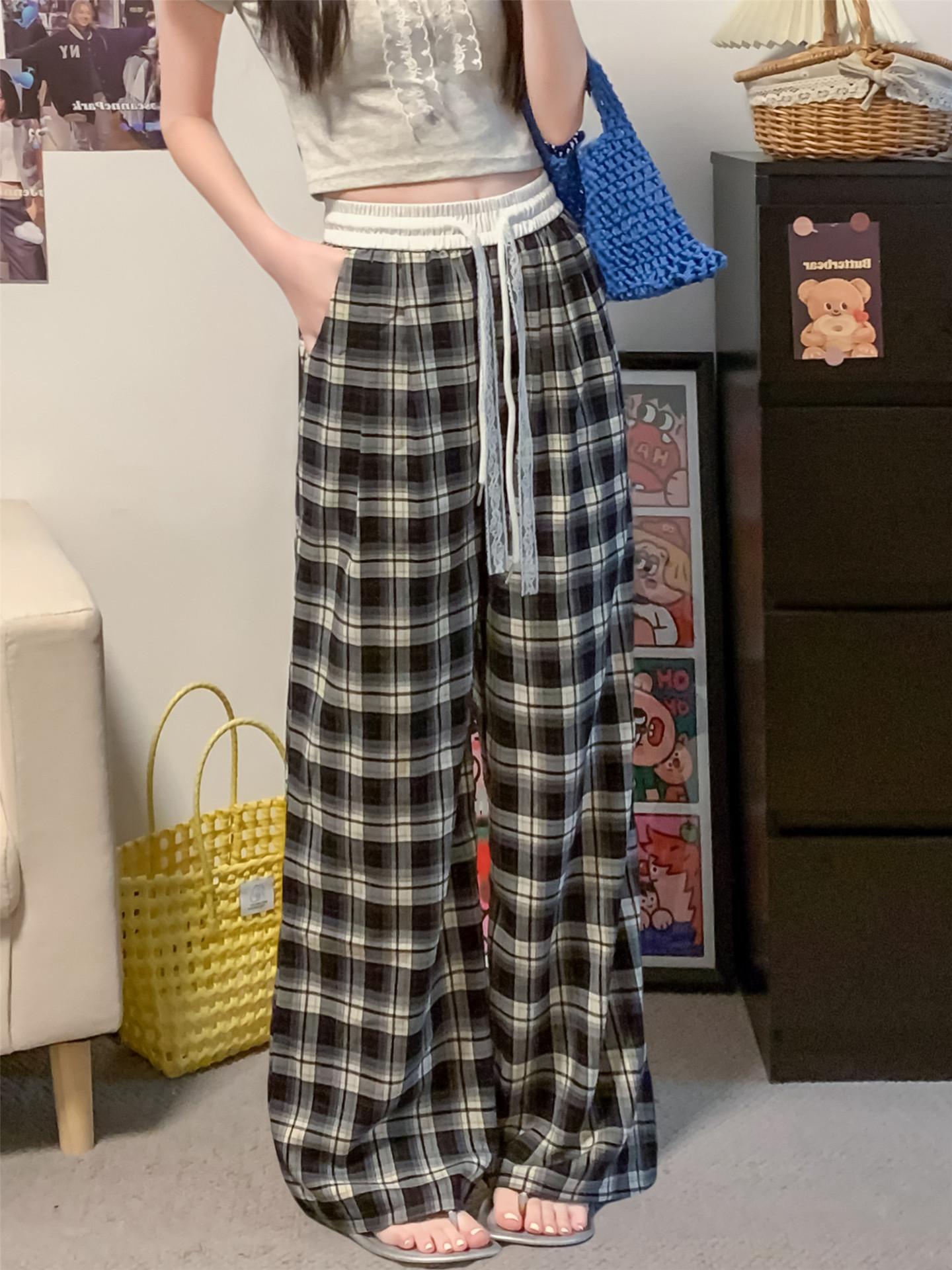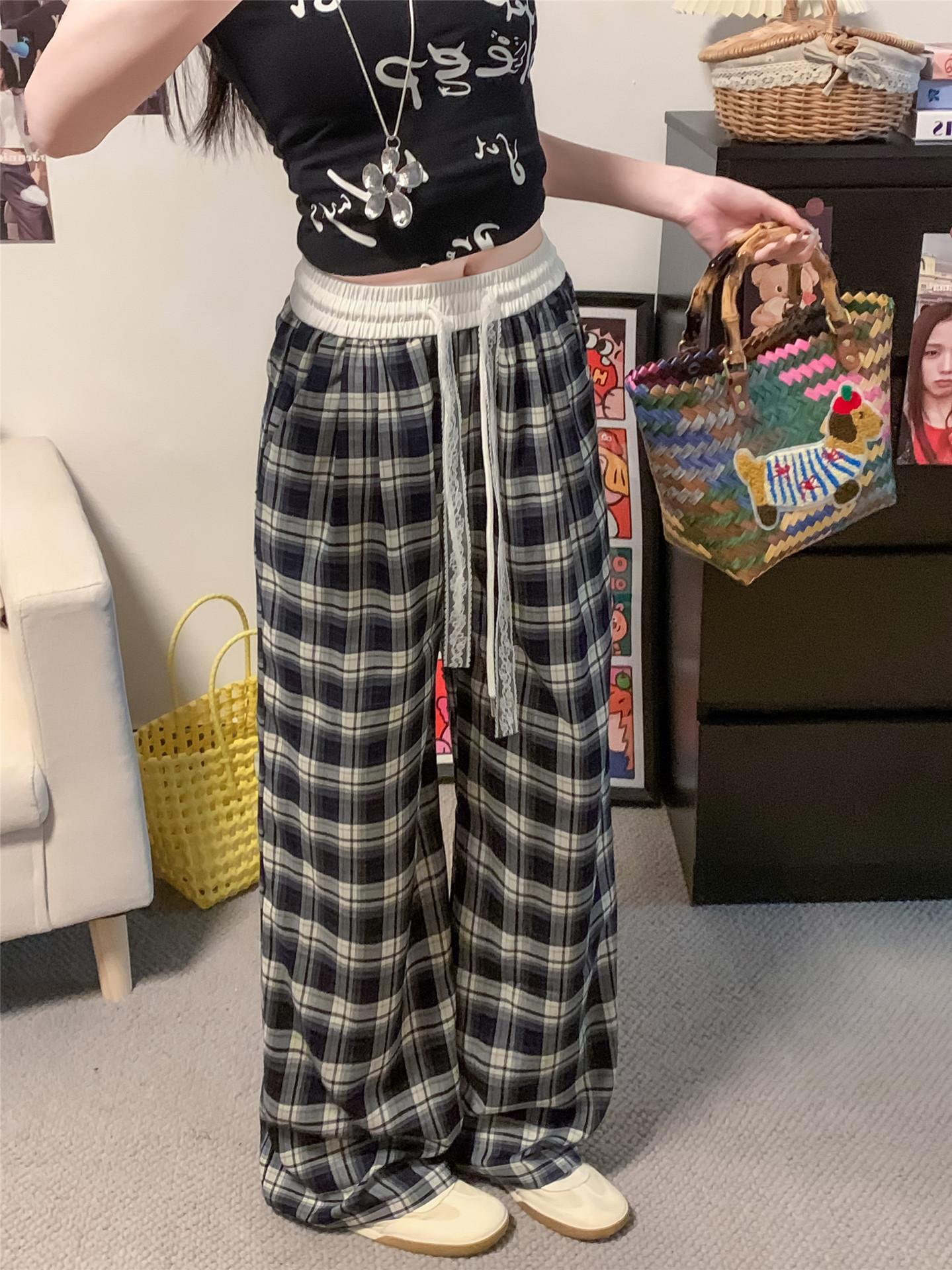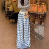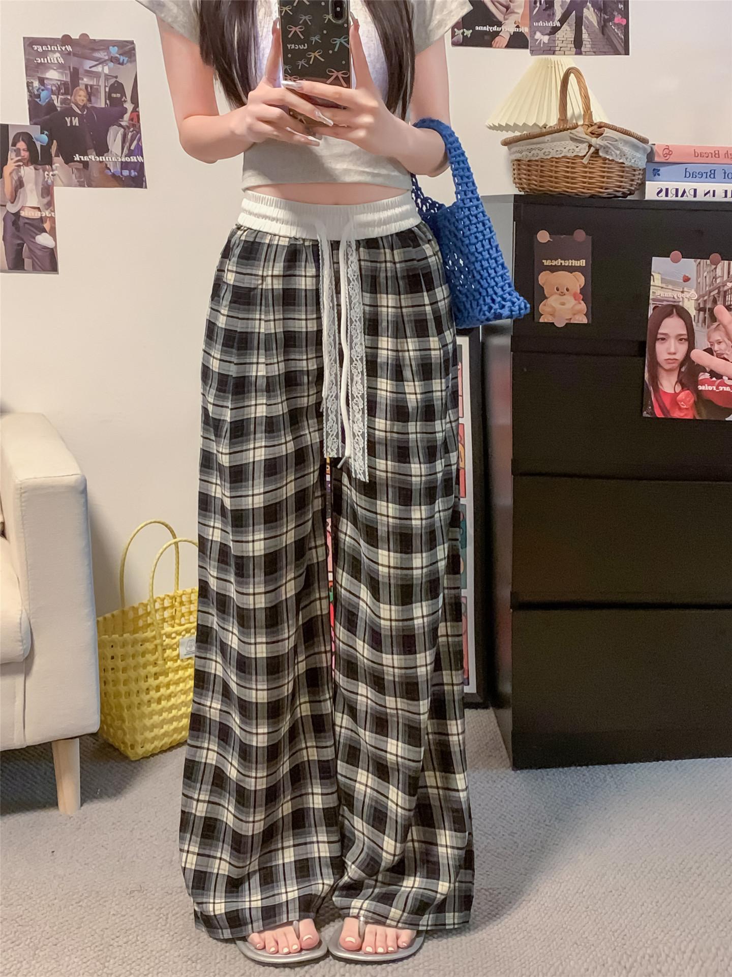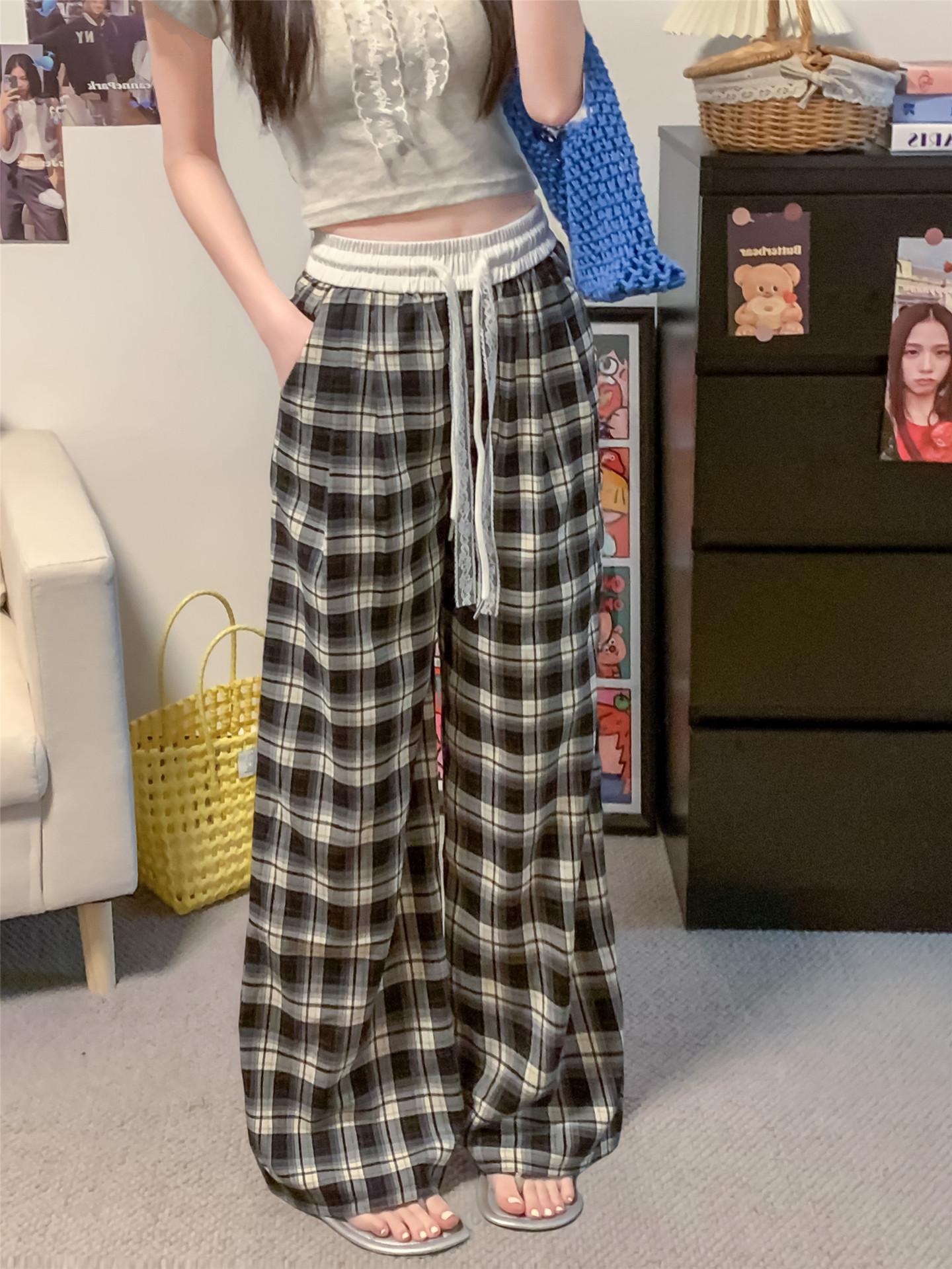 Pantalones Casuales Patchwork Estilo Holgazán para Mujer 2025 Primavera Nuevo Cintura Alta Sueltos Cordón Encaje Pierna Ancha Pantalones Largos