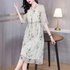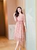 Vestido elegante de verano para mujer, con escote en V, estampado floral, color claro, corte princesa, falda acampanada, volantes, manga corta, novedad