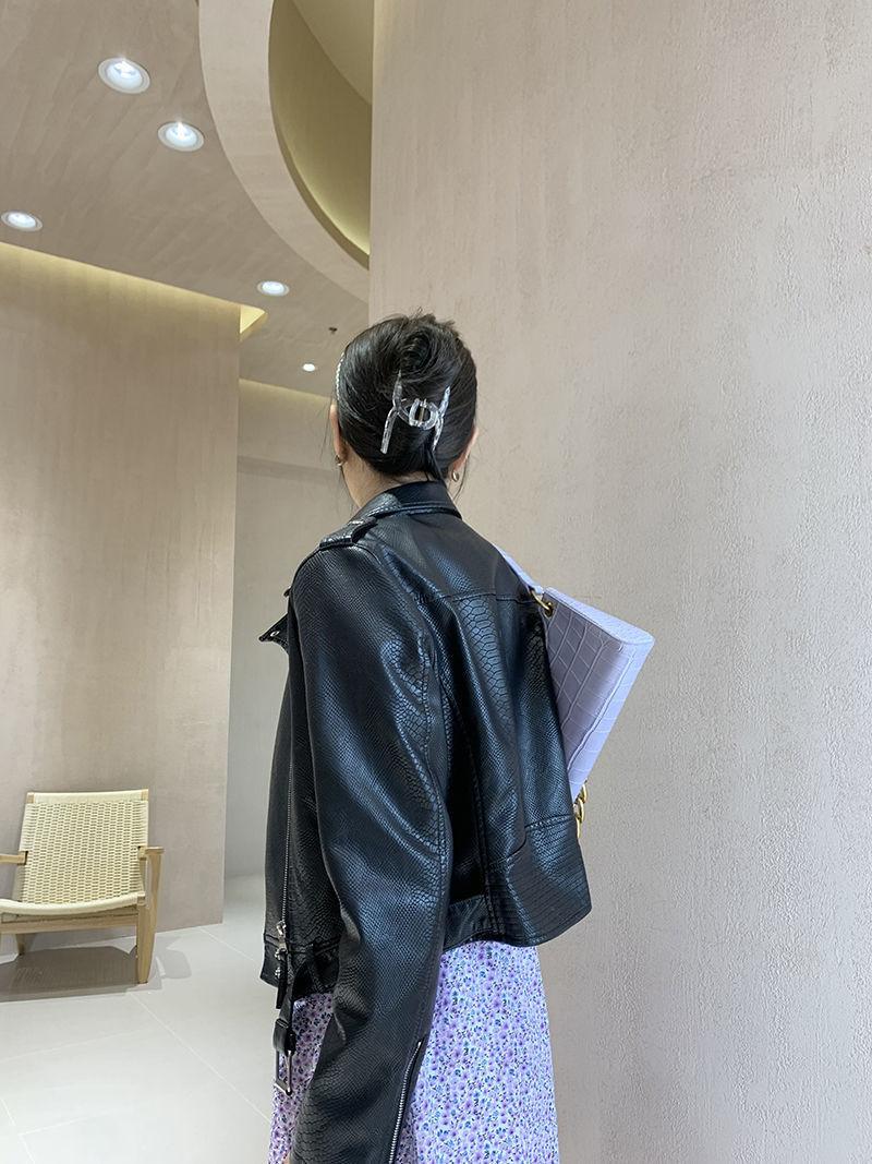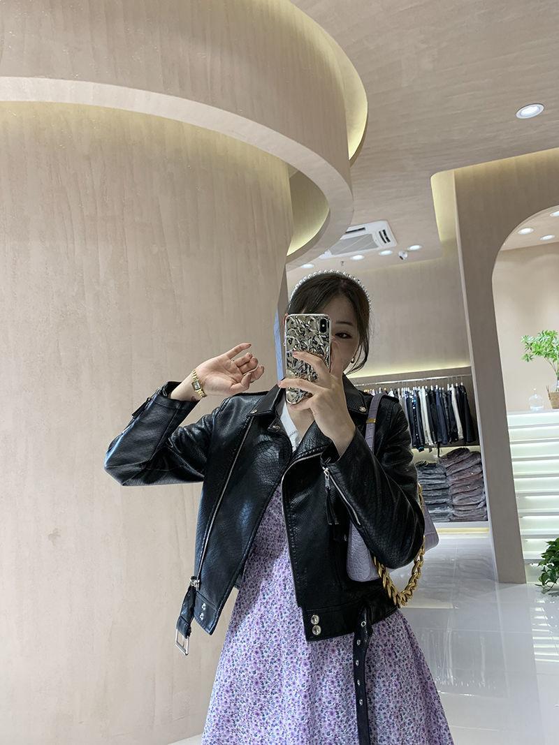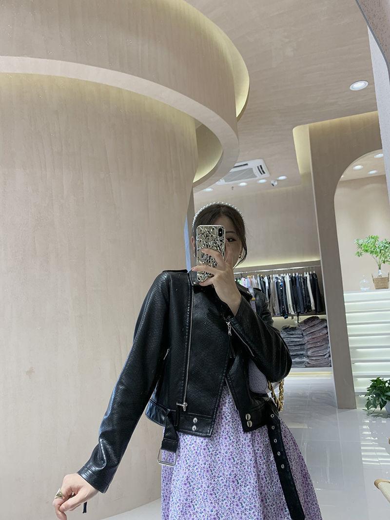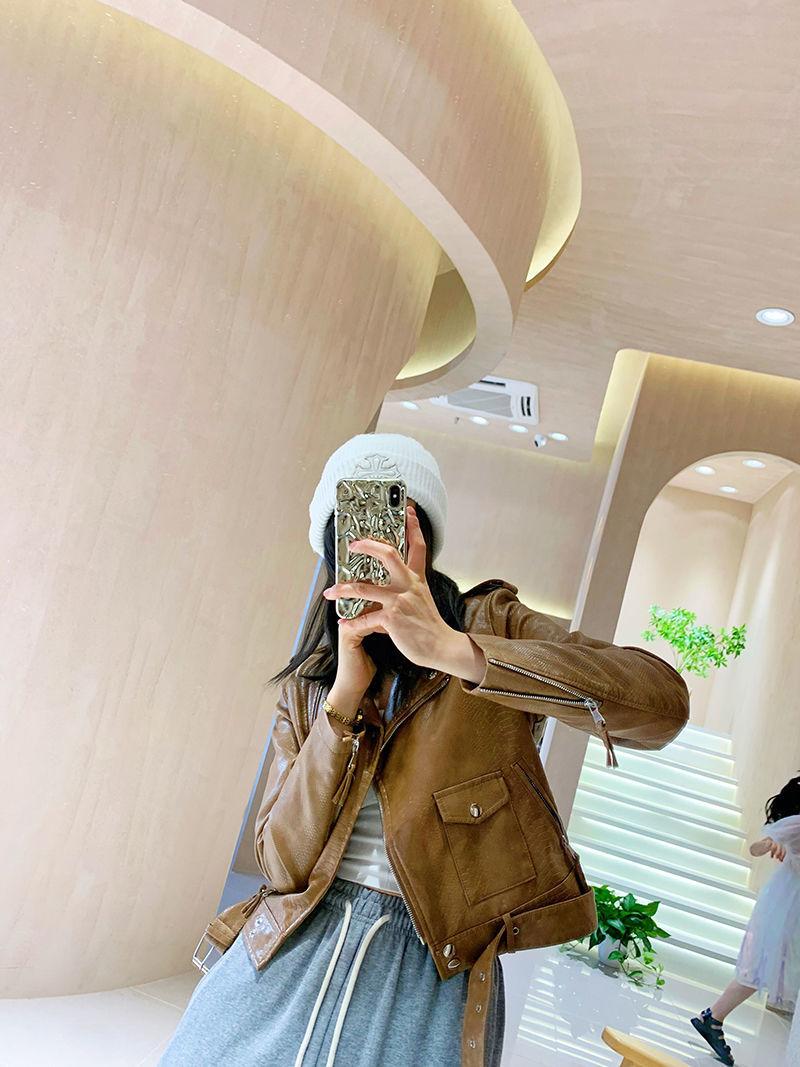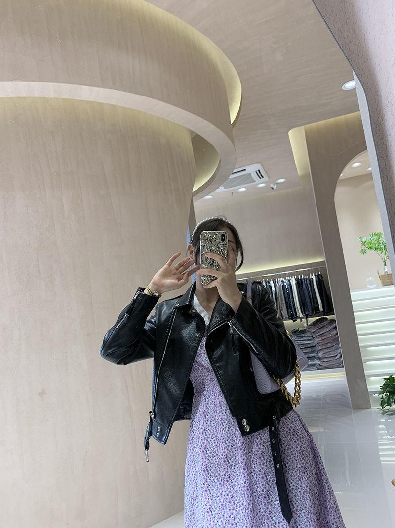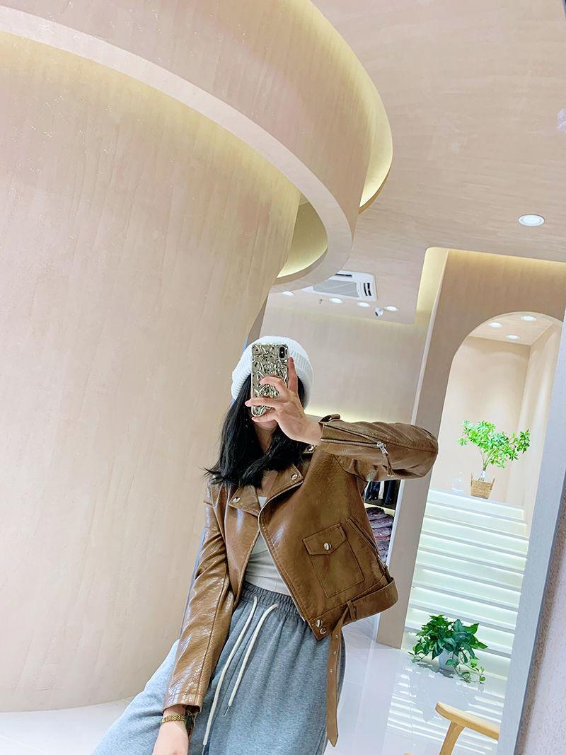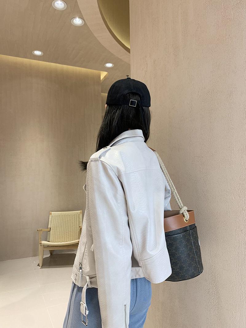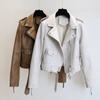 Chaqueta de cuero Simon Lerner para mujer, corta, primavera y otoño, nueva chaqueta marrón coreana con estampado de serpiente para bicicleta.